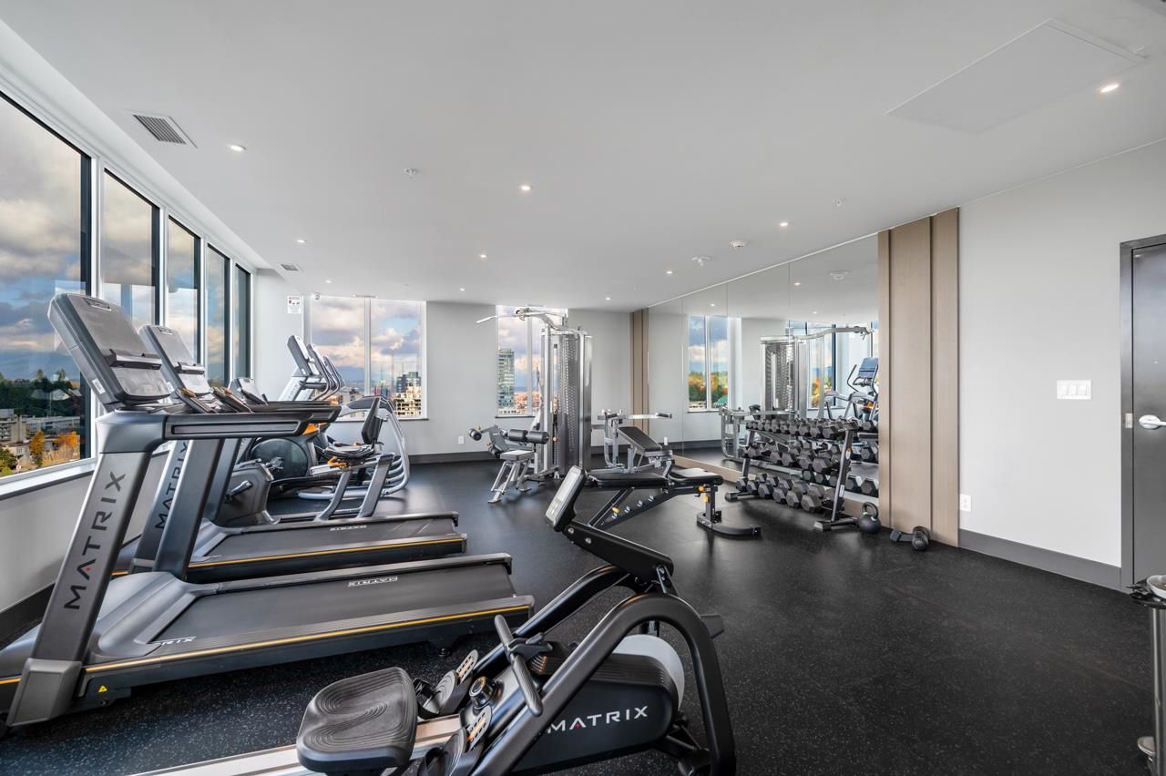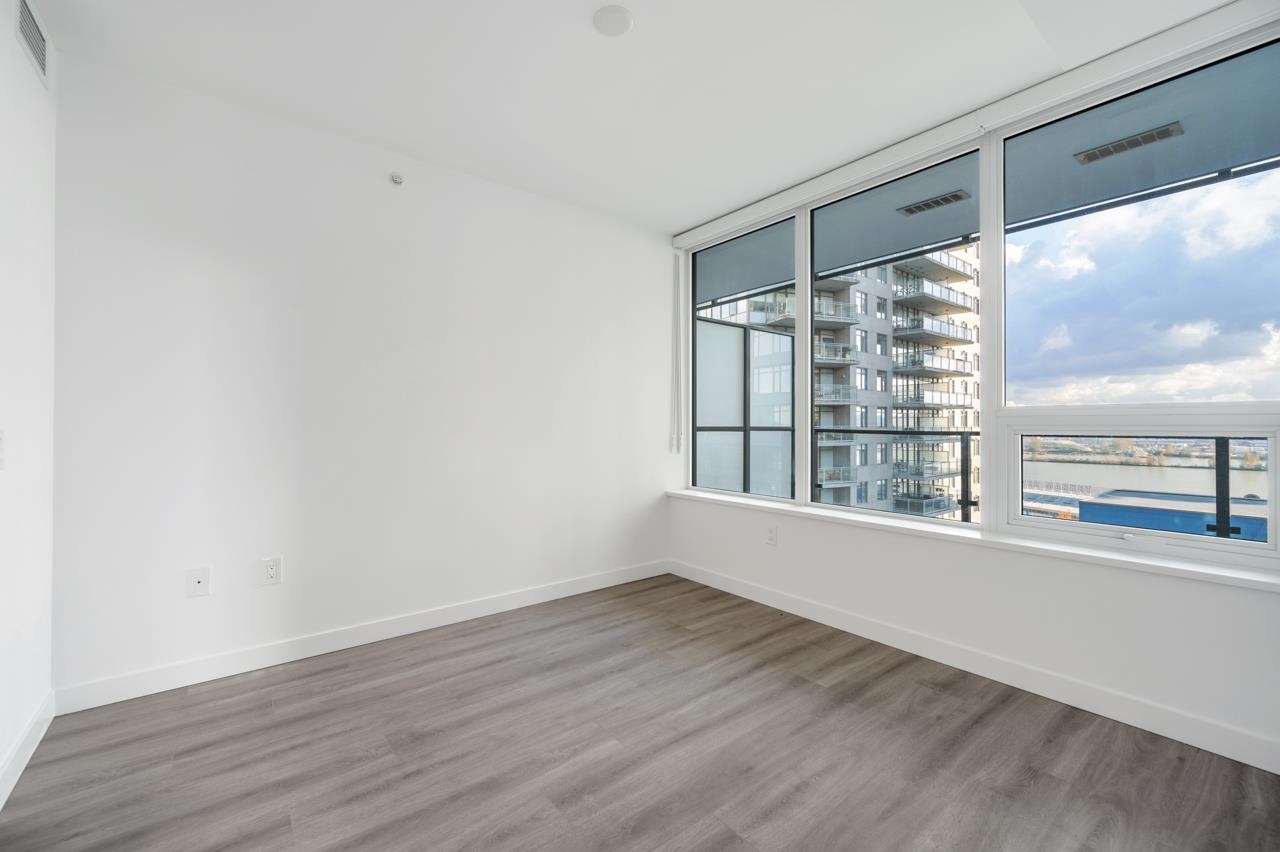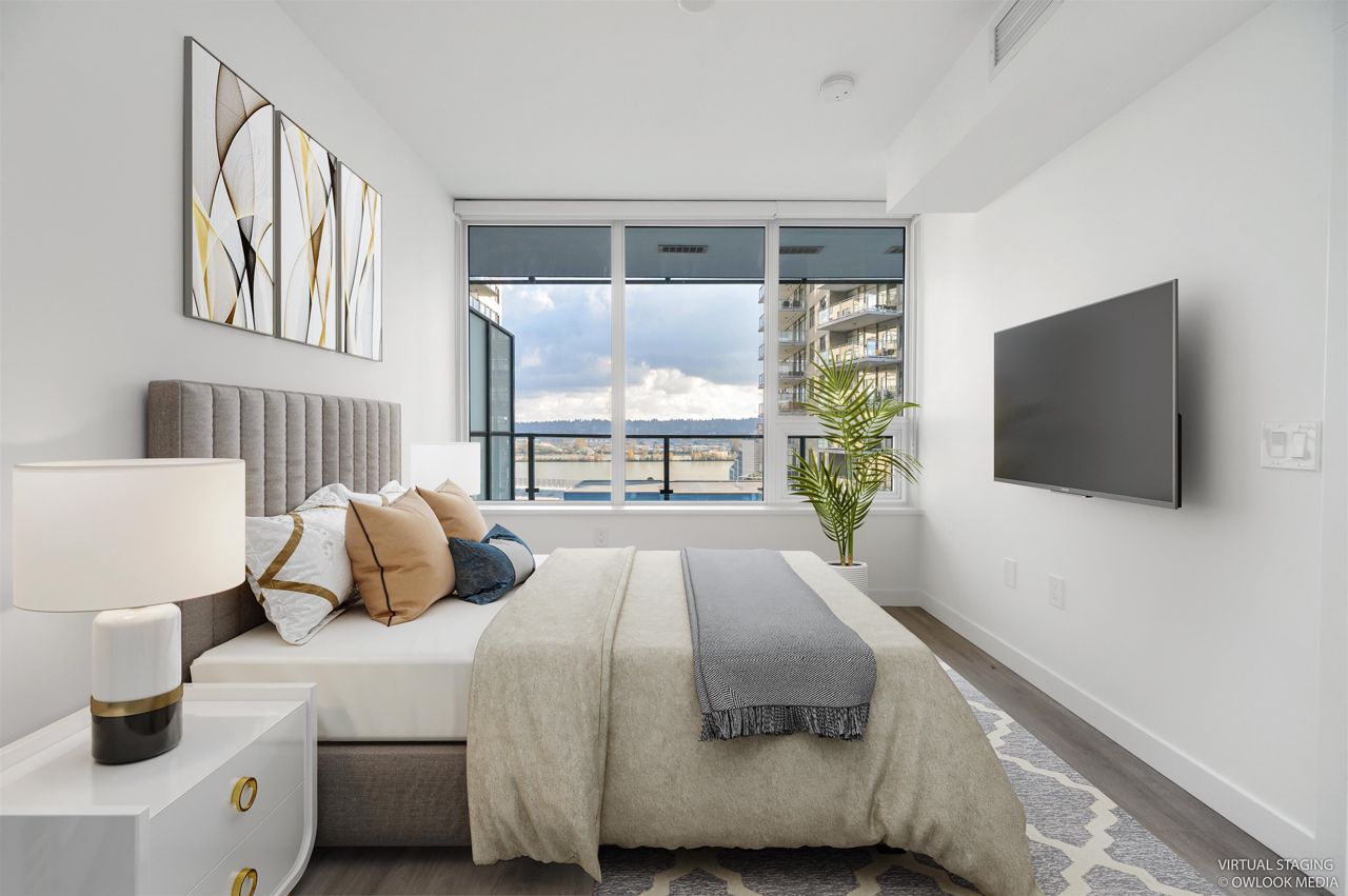 Welcome to Ovation, an urban luxury building nestled in the vibrant heart of Downtown New Westminster. South west corner unit with WATERVIEW from both your living and your bedroom! This meticulously crafted residence offers a great sun exposure, a very open layout featuring A/C, top-of-the-line Bosch appliances 1 parking, and 1 storage. Experience the epitome of modern living with unparalleled amenities, including mini-golf, a hot tub, and a private rooftop clubhouse offering panoramic views for unforgettable gatherings with family and friends. Walking distance to sky train station, Douglas college, Cinemas, Bars and all your living needs. Easy to show, Call us now!