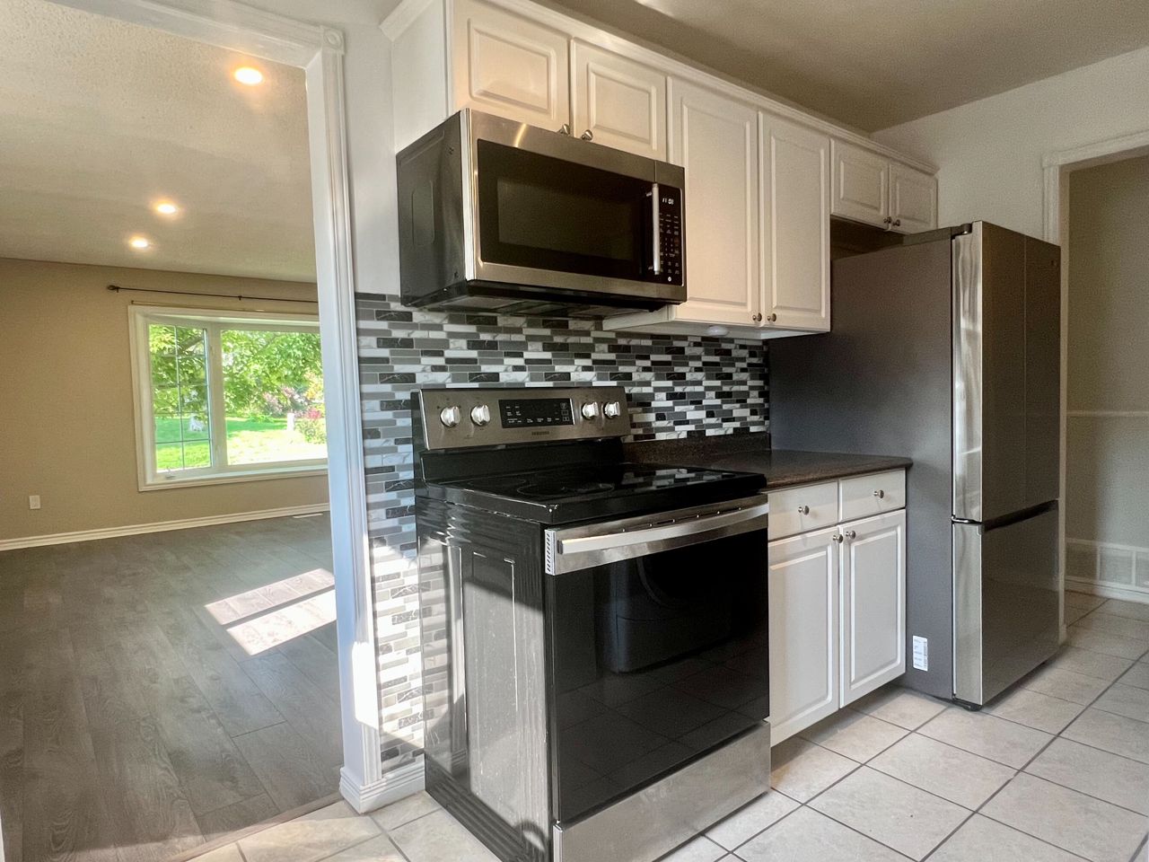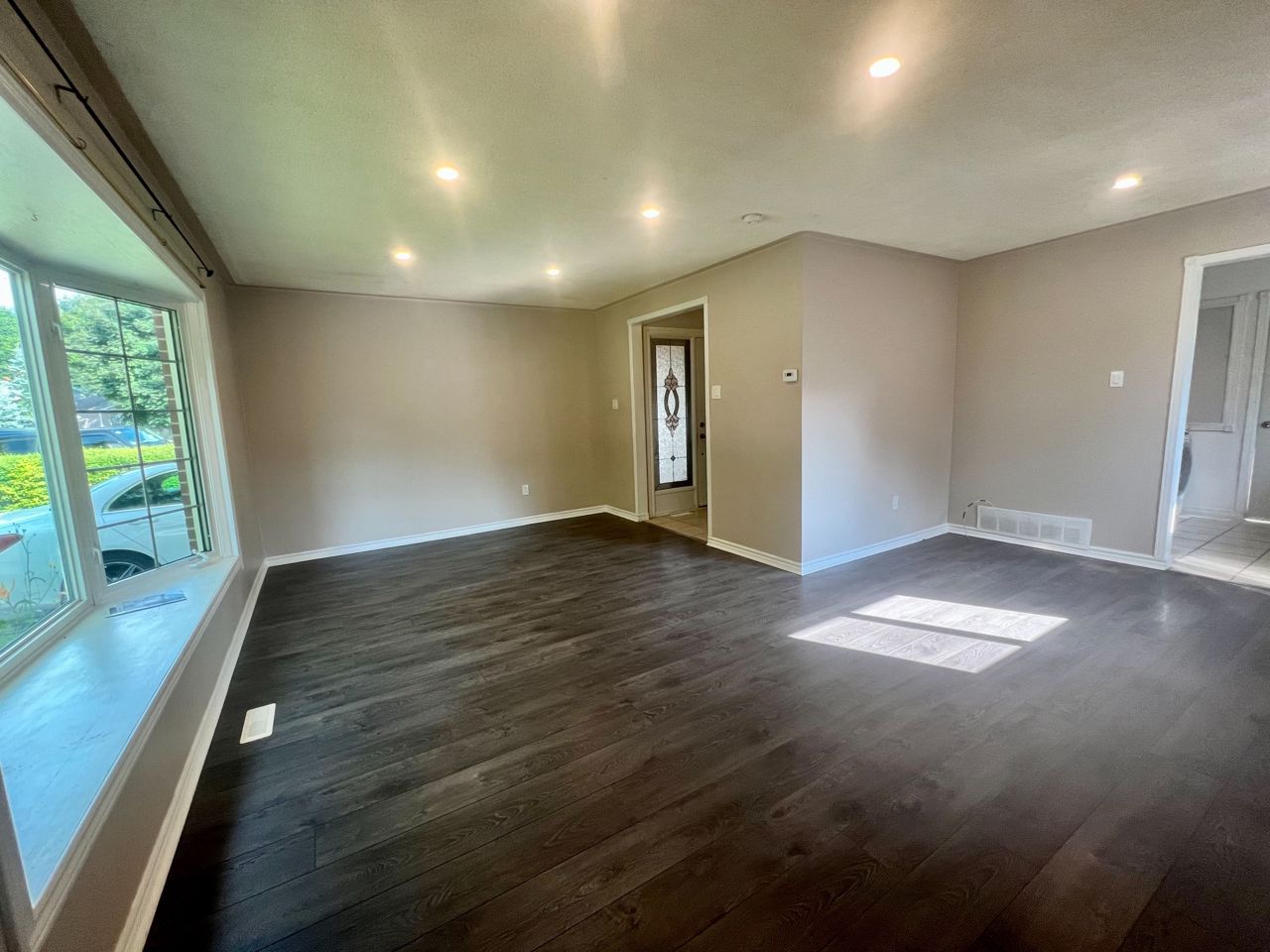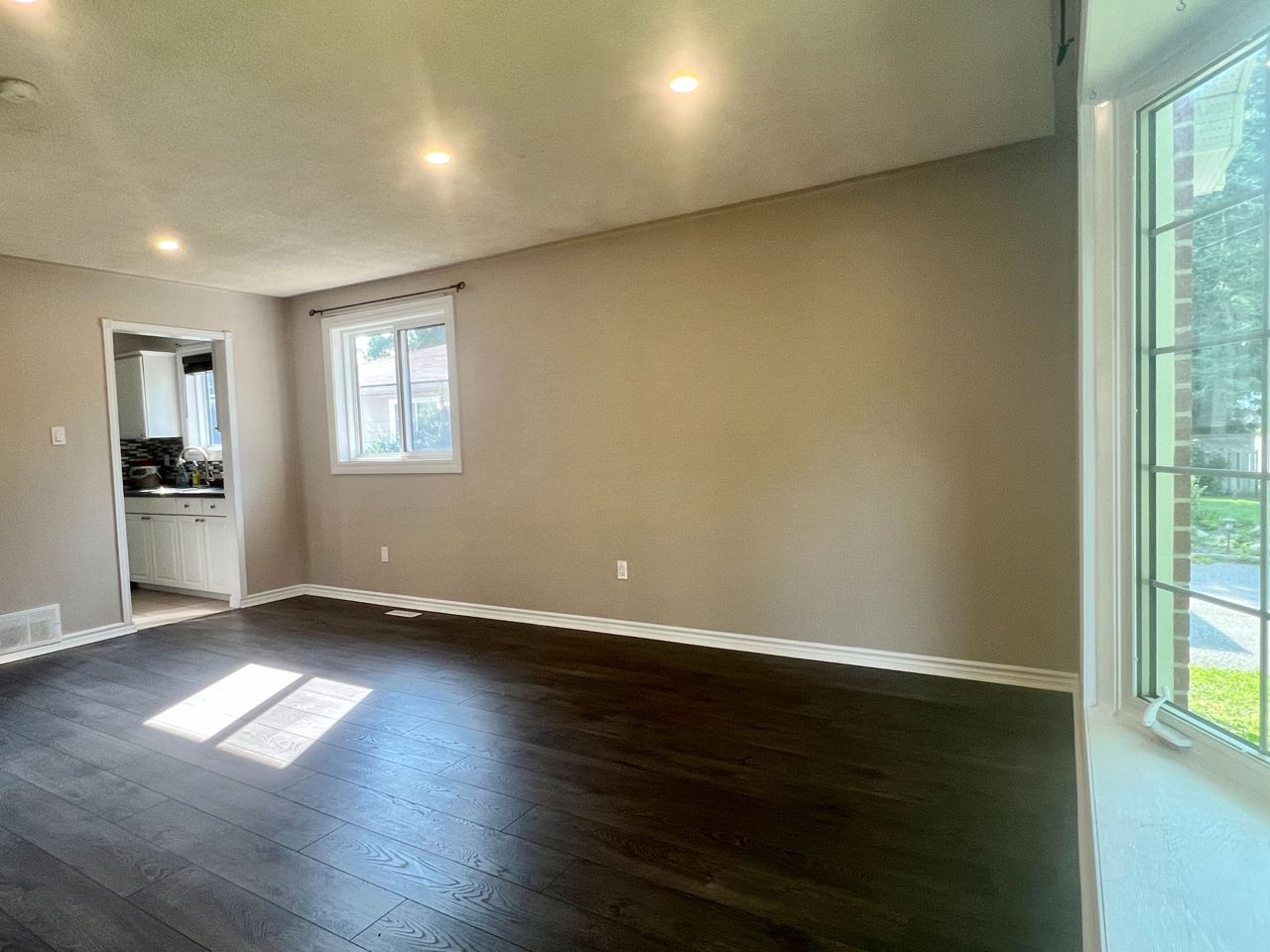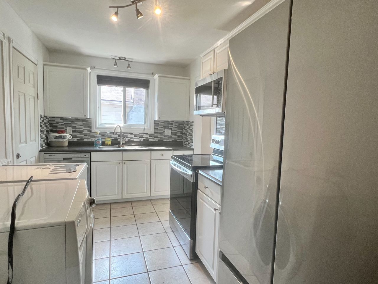 Fully Renovated bright 2 bedroom family home On a Quiet Street and Within Walking Distance To Schools, Parks, Transit, Hospital, Tennis, Walking Trails & Amenities and Quick Access to Hwy 404. Laminate floors throughout, Pot lights, Bright modern kitchen with Stainless Steel appliances and ceramic backsplash.S.S. fridge, Stove, Dishwasher, Microwave, washer and dryer, all existing ELFs and window coverings