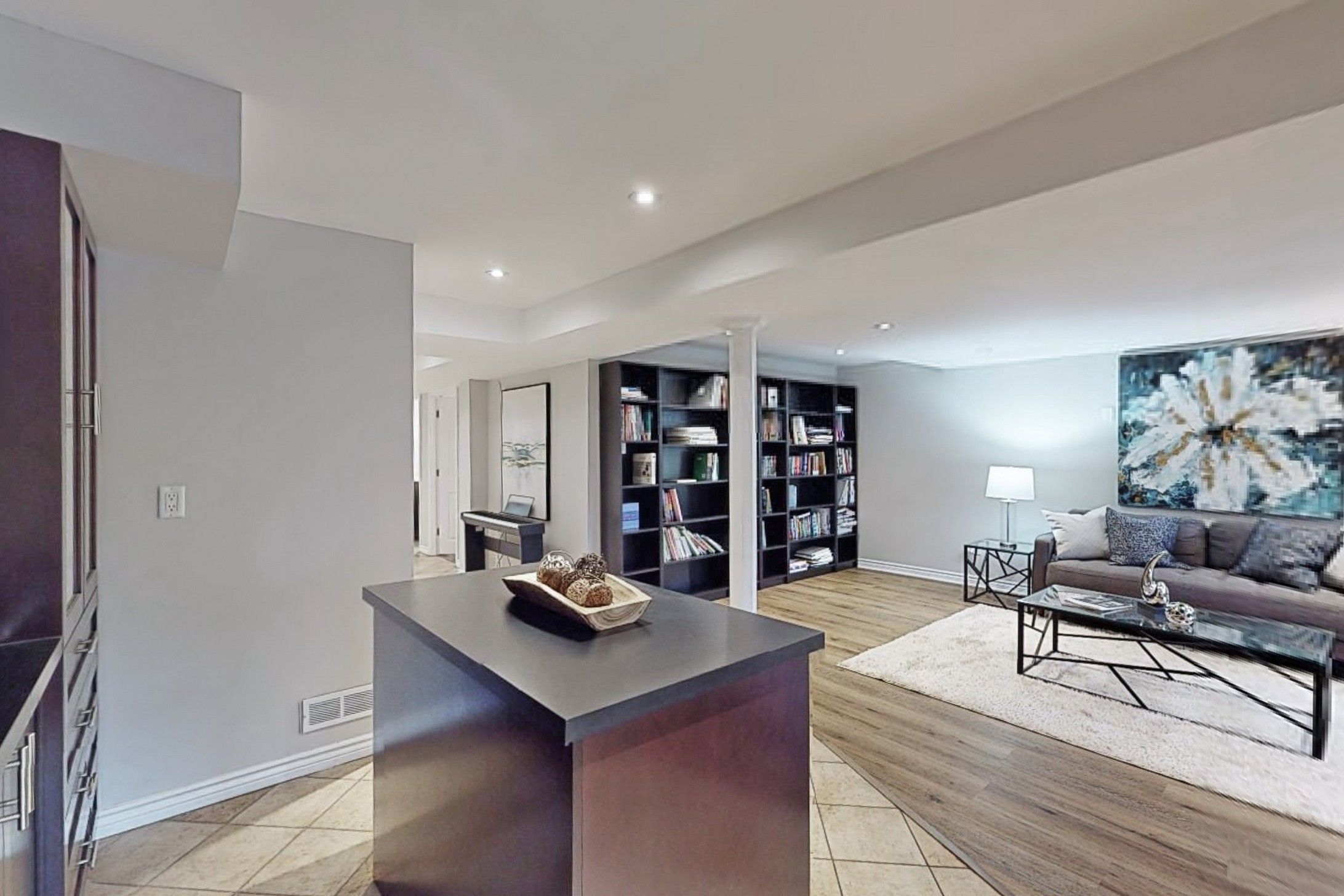 Hardwood Floor B/I Shelves Pot Lights