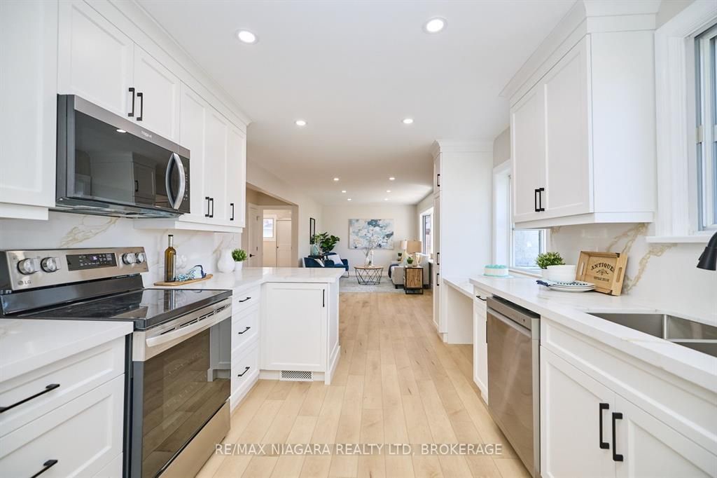 Stunning Fully Renovated Home with 2-Bedroom In-Law Suite. Welcome to this professionally renovated 3+2 bedroom, 3-bathroom home, offering over 2,100 sq. ft. of finished living space with 1,346 sq. ft. above grade. Located just minutes from the tourist district, schools, public transit, and the shopping hub of Lundy's Lane, this home is perfect for families, investors, or those seeking multi-generational living! The showstopper is an outstanding private primary bedroom retreat with walk-through closet and luxurious ensuite bathroom. Key Features & Upgrades (2025):2-bedroom basement in-law suite with full kitchen, laundry, and separate entrance, all 5 bedrooms renovated and 3 full bathrooms fully renovated, two brand new custom kitchens featuring quartz countertops, quartz backsplash with brand-new appliances, main floor kitchen workstation with built-in desk area, main floor and basement laundry , new patio doors leading to a new backyard deck, new 200 amp electrical panel, brand-new flooring, lighting, and professionally painted, proper egress windows in basement bedrooms for added safety and natural light. This move-in-ready gem is a rare find ! Don't miss out, schedule your private showing today!