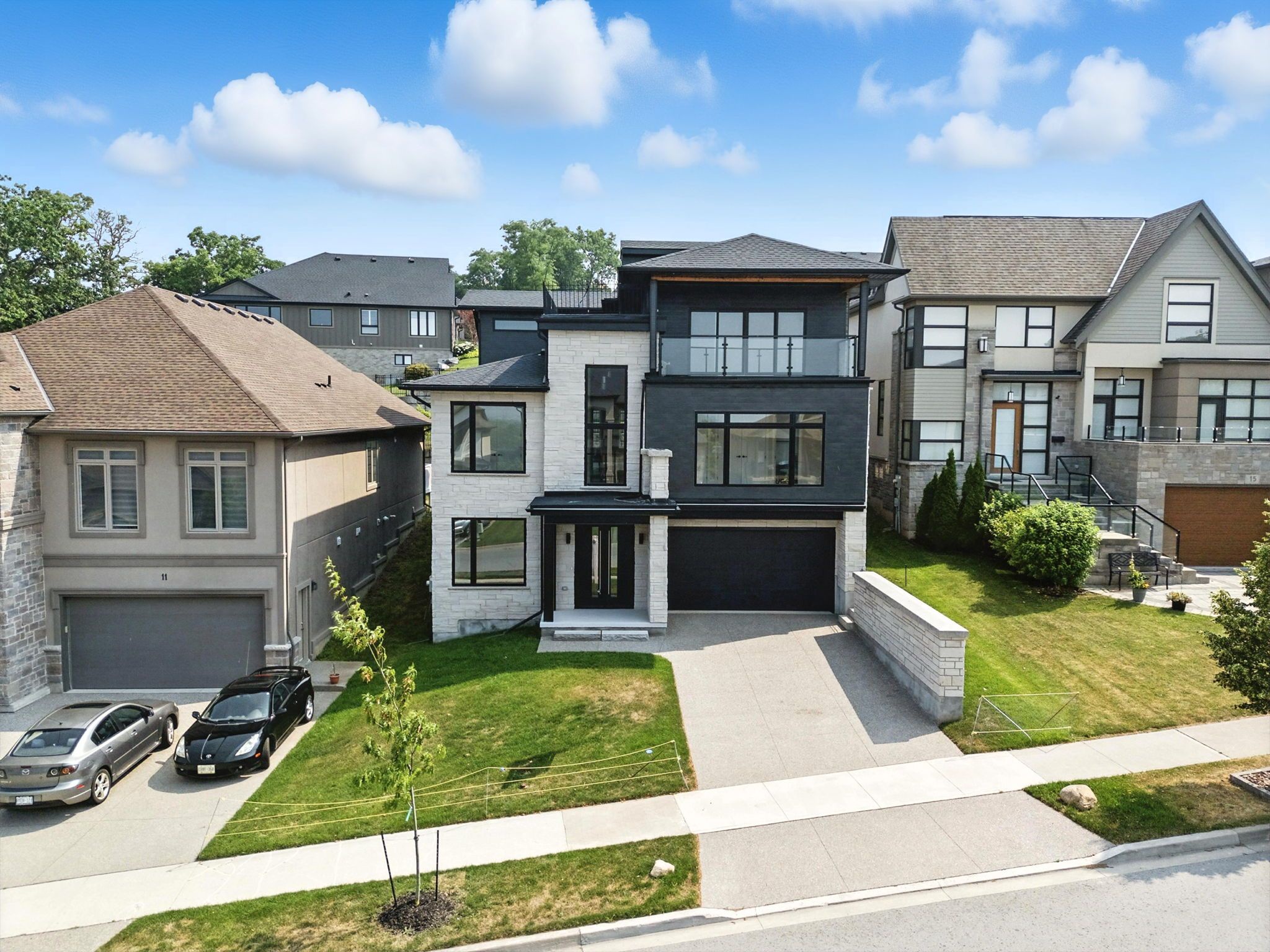 Experience luxury! 13 Kenmir Ave isn't just a place to live - it's a statement. Impeccable curb appeal, sweeping views of the Niagara Escarpment, Lake Ontario, and Toronto Skyline, this home offers an unparalleled lifestyle. Spanning over 4,433 finished sqft, it blends beauty with functionality, designed for those who appreciate the finest in craftsmanship and design. As you arrive, a striking concrete driveway with exposed aggregate leads you to a grand entrance, setting the tone for what lies beyond. Upon entry, the home welcomes you to your lower level with soaring ceilings and an open, airy feel. Offering a bright office, laundry area with a side door exit, full bathroom, and a spacious kitchen perfect for everyday living. Upstairs, a chefs kitchen awaits, accompanied by another laundry room, a spacious primary bedroom retreat and spa-like ensuite. Two additional bedrooms with a shared main bathroom complete the second floor. Patio doors lead from the kitchen to a covered deck, perfect for entertaining family and friends. The third level is an entertainer's dream, featuring a stunning great room, complete with a balcony to savour the spectacular views. An additional bedroom and full bathroom provide even more comfort and space. This home boasts a total of 4 bedrooms, plus an office, and 4 full bathrooms, ample space for your family's every need. With the added convenience of 2 kitchens and 2 laundry rooms, the perfect setup for multi-generational living. Enjoy the perfect balance of privacy and togetherness. Concerned about stairs? No problem! 13 Kenmir is equipped with a private elevator, providing access from the garage to all three floors, ensuring ease of movement throughout the home. Located in the beautiful village of St. Davids, this stunning residence is just steps from world-class wineries, local shops, and a short drive to Historic Old Town Niagara-on-the-Lake and the world-famous Niagara Falls.