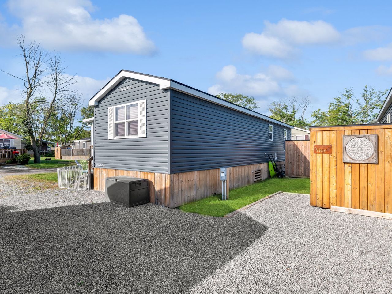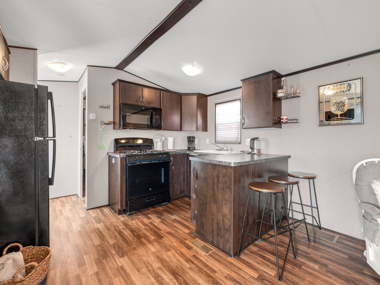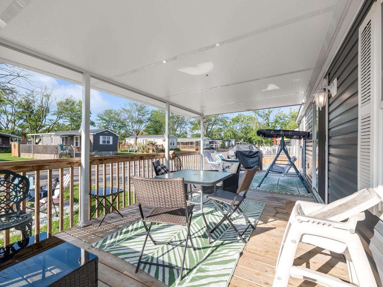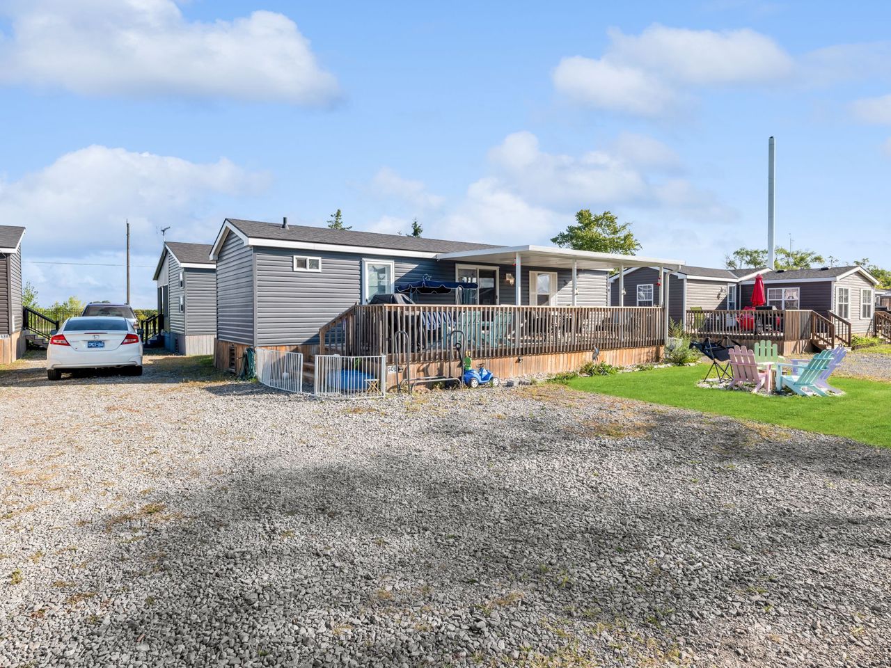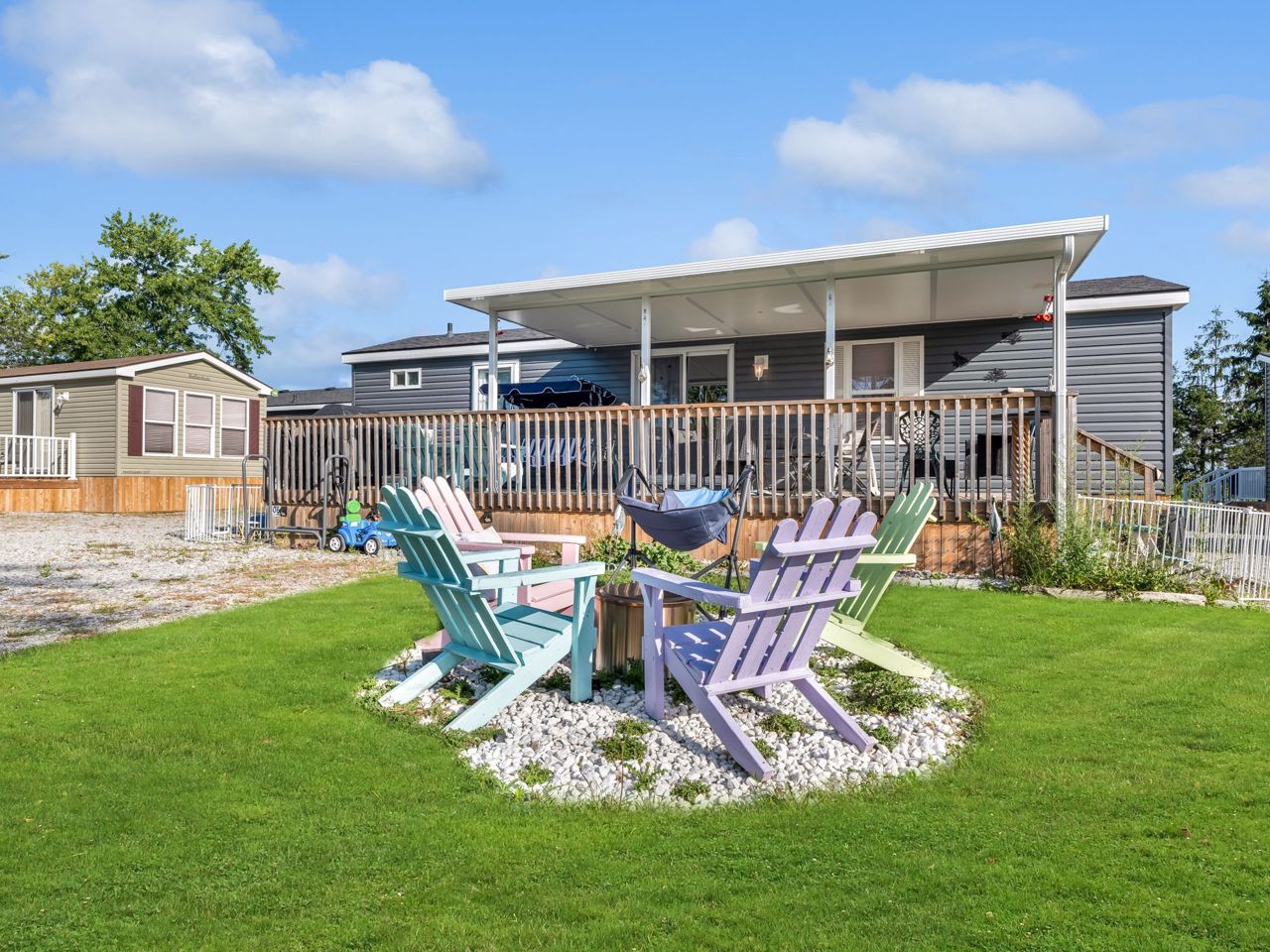 This REMARKABLE resort cottage has 2 bedrooms, 1 bathroom with 516 sqft of living space and comes fully furnished! Vine Ridge Resort is open from May 1st to October 31st and offers incredible amenities such as an inground pool, splash pad, multi sports courts, picnic areas, playground, Kids Club, onsite laundry and more!! Enjoy quality features throughout including natural lighting, radiant light fixtures, neutral paint colours & beautiful laminate flooring. Entertain in the open concept kitchen that boasts black appliances, a double farmhouse sink, laminate countertops, sleek cabinetry and a breakfast bar with seating for 3. Continue into the bright living room with vaulted ceilings and a walk-out to the gorgeous deck. Enjoy a 4-piece bathroom and 2 sizable bedrooms, the primary featuring a closet and built-in storage cabinets, and the 2nd bedroom offering brilliant spacing solutions with double bunks beds and a seating area.Relax and unwind on the oversized deck with impressive features including a hard cover awning, an outdoor dining table, chairs, freestanding porch swing, BBQ & fire pit! Incredible location nestled in the heart of Wine Country!