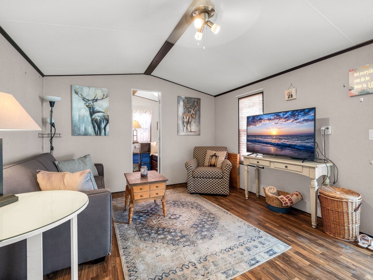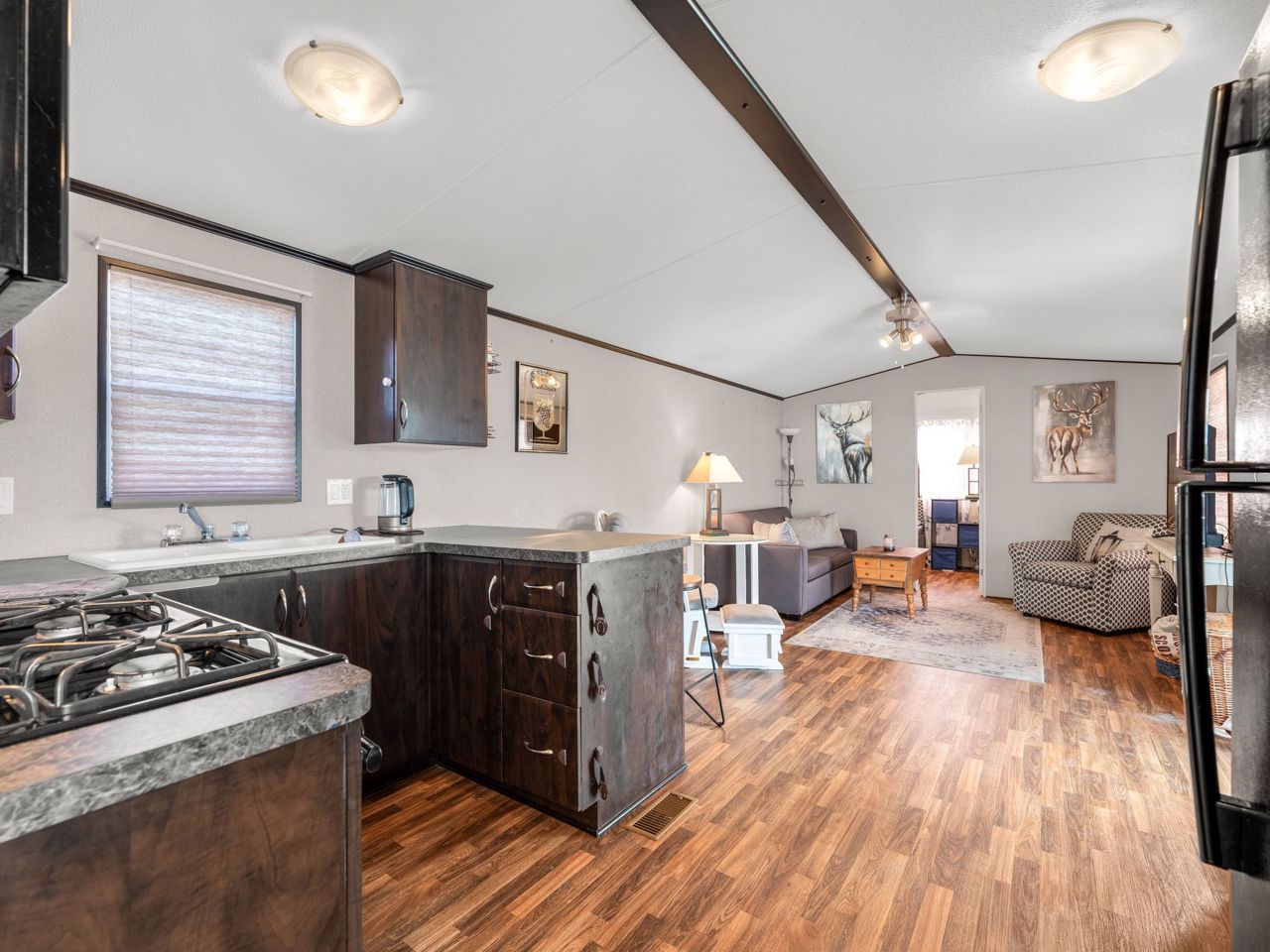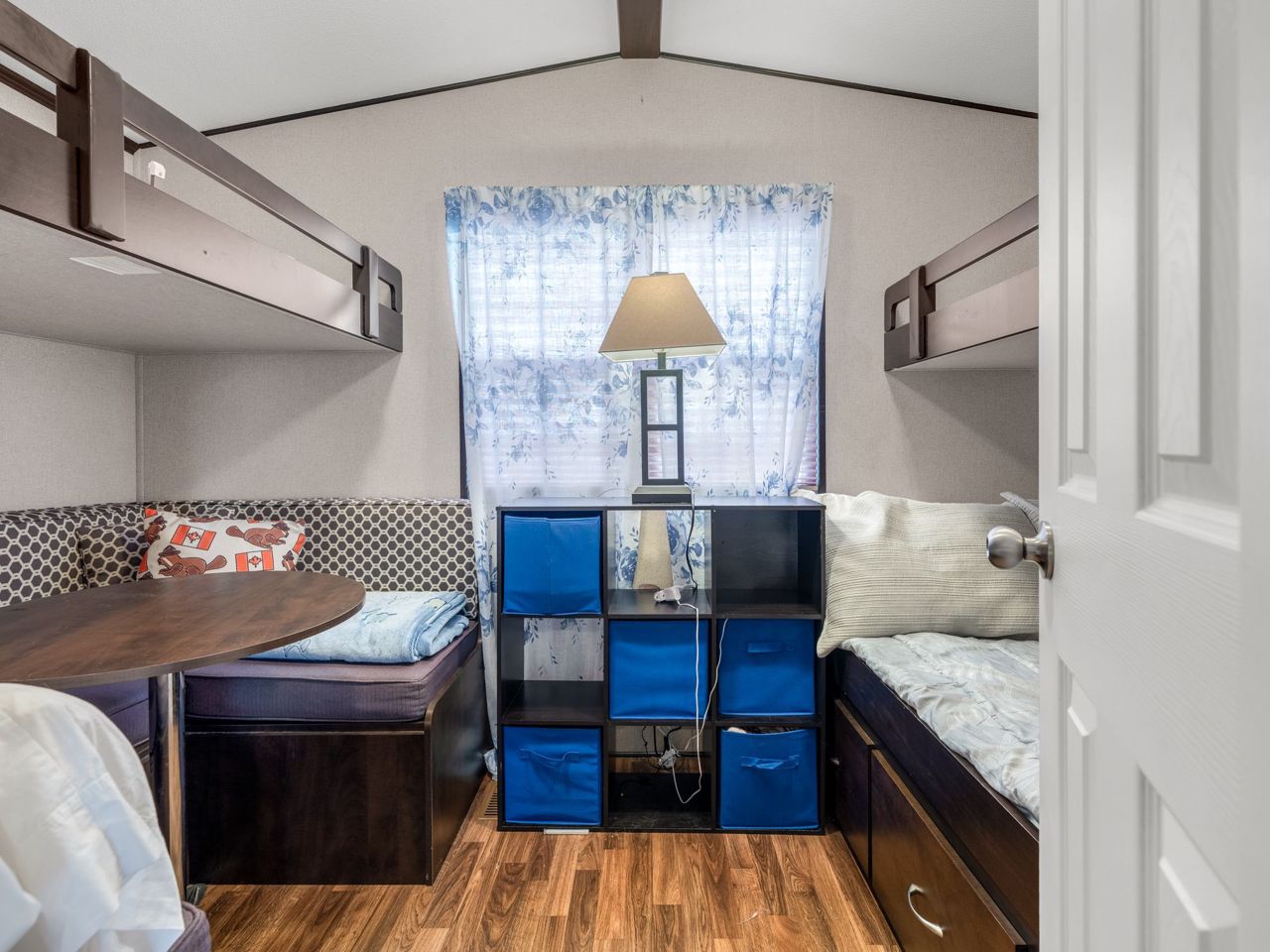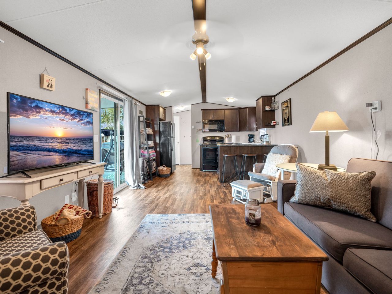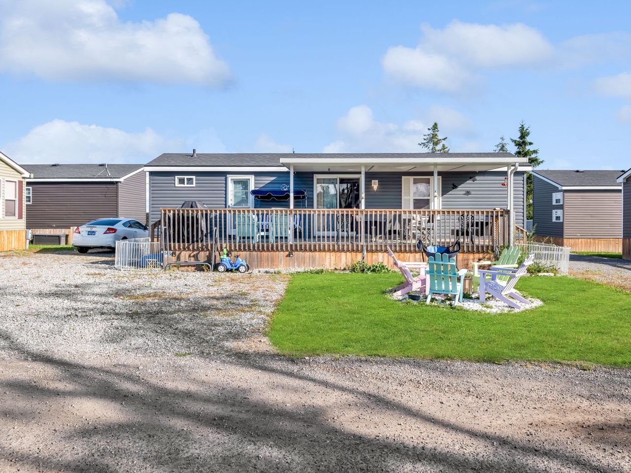 This REMARKABLE resort cottage has 2 bedrooms, 1 bathroom with 516 sqft of living space and comes fully furnished! Vine Ridge Resort is open from May 1st to October 31st and offers incredible amenities such as an inground pool, splash pad, multi sports courts, picnic areas, playground, Kids Club, onsite laundry and more!! Enjoy quality features throughout including natural lighting, radiant light fixtures, neutral paint colours & beautiful laminate flooring. Entertain in the open concept kitchen that boasts black appliances, a double farmhouse sink, laminate countertops, sleek cabinetry and a breakfast bar with seating for 3. Continue into the bright living room with vaulted ceilings and a walk-out to the gorgeous deck. Enjoy a 4-piece bathroom and 2 sizable bedrooms, the primary featuring a closet and built-in storage cabinets, and the 2nd bedroom offering brilliant spacing solutions with double bunks beds and a seating area.Relax and unwind on the oversized deck with impressive features including a hard cover awning, an outdoor dining table, chairs, freestanding porch swing, BBQ & fire pit! Incredible location nestled in the heart of Wine Country!