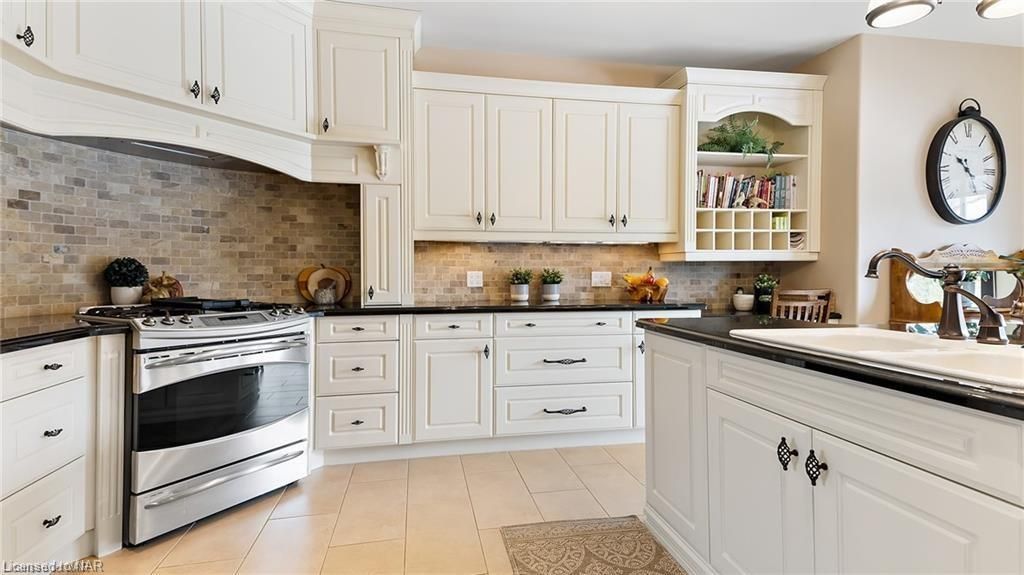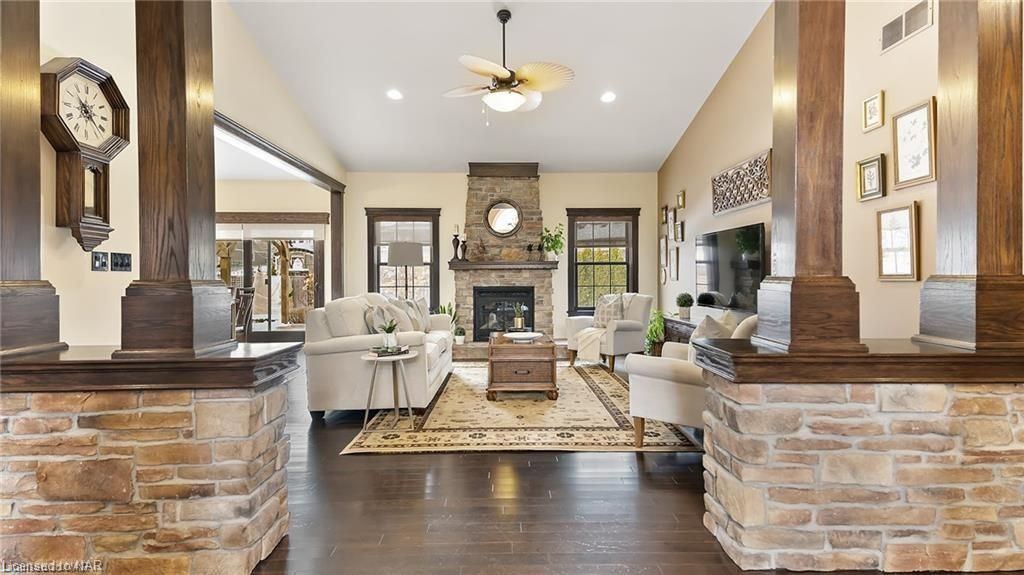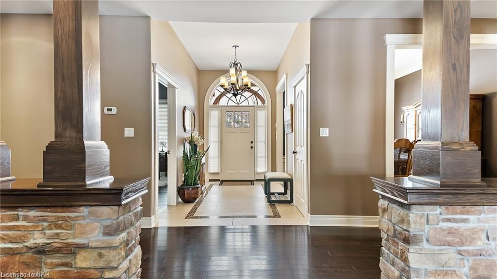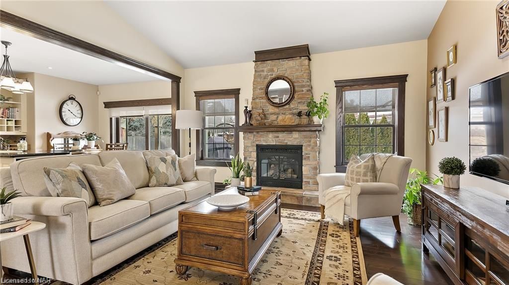 With Undeniable Curb Appeal And In The Prestigious Village Of St. David's Located In Niagara-On-The-Lake, You Don't Want To Miss Out On The Opportunity To Own This Home. Large Wooden Beams At This Home's Front Entrance Give You A Feeling Of Grandeur, Complementing Almost 4000 Sq/Ft Of Living Space. With 3+2 Bdrms, 3 Baths And An Open Concept Floor Plan, This Home Is Meticulously Crafted W/Warm Wood & Stone Accents As Well As Luxurious Finishes Throughout. The Kitchen Is Impressive And Beautifully Designed With Custom Cabinets, Stainless Appliances And A Large Island, Perfect For The Inspired Home Chef. The Vaulted Ceilings In The Living Room Open The Space Up While The Gas Fireplace Creates A Warm, Ambiance Perfect For Snuggling Up On A Chilly Winter Evening. The Main Floor Primary Suite Offers A W/I Closet W/Built-Ins And Features A Gorgeous 5 Pc Bath With Spa-Like Details, The Ideal Spot To Unwind And Relax. The Main Floor Has Two Well-Appointed Bdrms W/Spacious Closets & 4Pc BathLower Level Has Large, Finished Rec Room, 2 Bdrms W/3Pc Bath & Bonus Room. Fully Fenced Yard W/Room For Future Pool. Gas Line For Bbq & Firepit Gives The Feeling Of Camping.