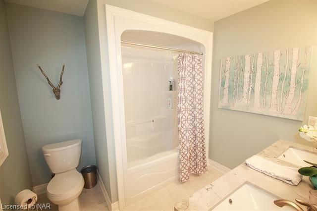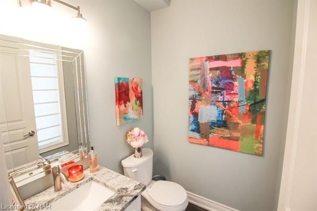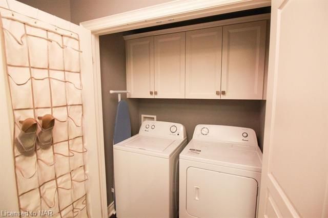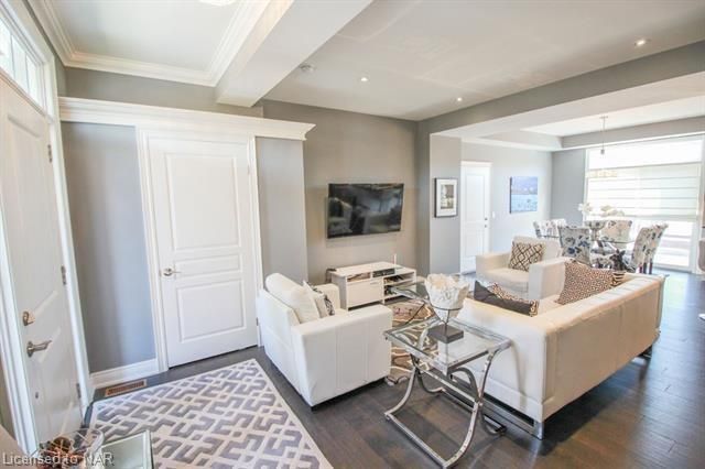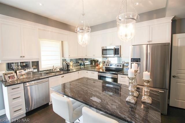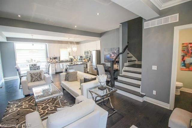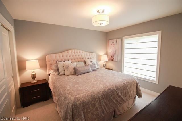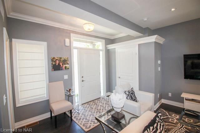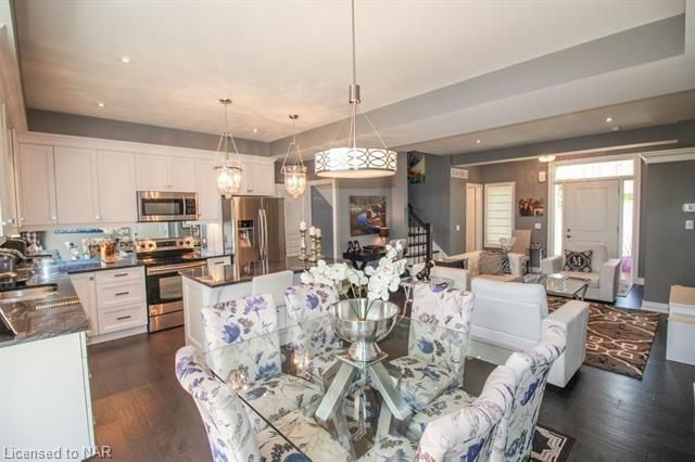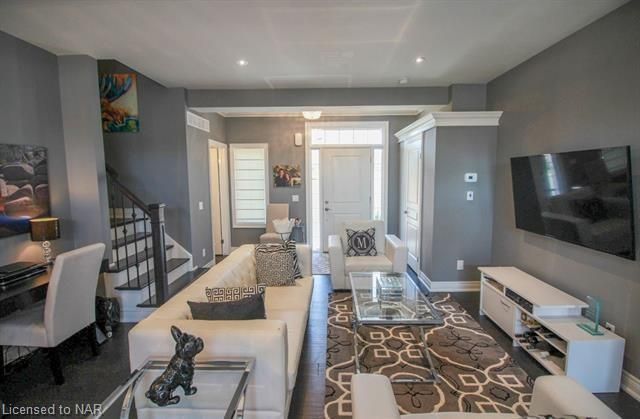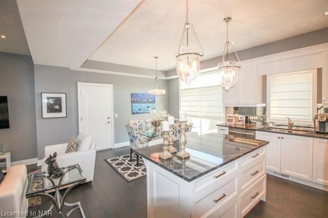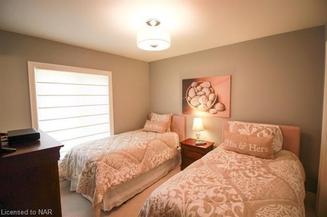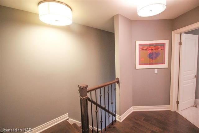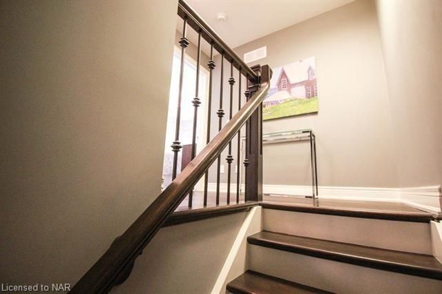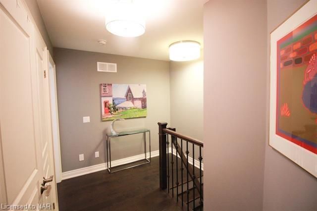 For lease $2950+utilities UNFURNISHED - 1 year lease minimum. Immaculate & stylish 2-storey townhouse with beautiful finishes top to bottom! 9-ft ceilings, engineered hrdwd floors, beautiful granite counters in custom kitchen, breakfast bar/island, gorgeous backsplash, extra lighting under cabinets, pot lights with dimmers & crown molding. Upstairs offers 2 spacious bdrms, the master boasting a beautiful 5pc bath with granite countertops & the second bdrm also comes with a 3pc bath & granite countertops. A laundry closet on the second floor with upper cabinets adds convenient storage. Finished basement with rec room means even more space for entertaining and relaxing by the cozy gas fireplace. Other basement features include a dramatic stone wall, pot lights, office space, extra storage & utility room. There’s another impressive 3pc bath with glass shower, beautiful tile, rain head shower and hand bar. This home is absolutely perfect for a busy professional couple or a single person.Concrete driveway, keypad entry to garage and access to a lovely deck and fenced backyard. Walking distance from old town Niagara-on-the-Lake, world-class wineries & restaurants, shopping and more.