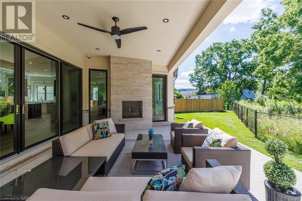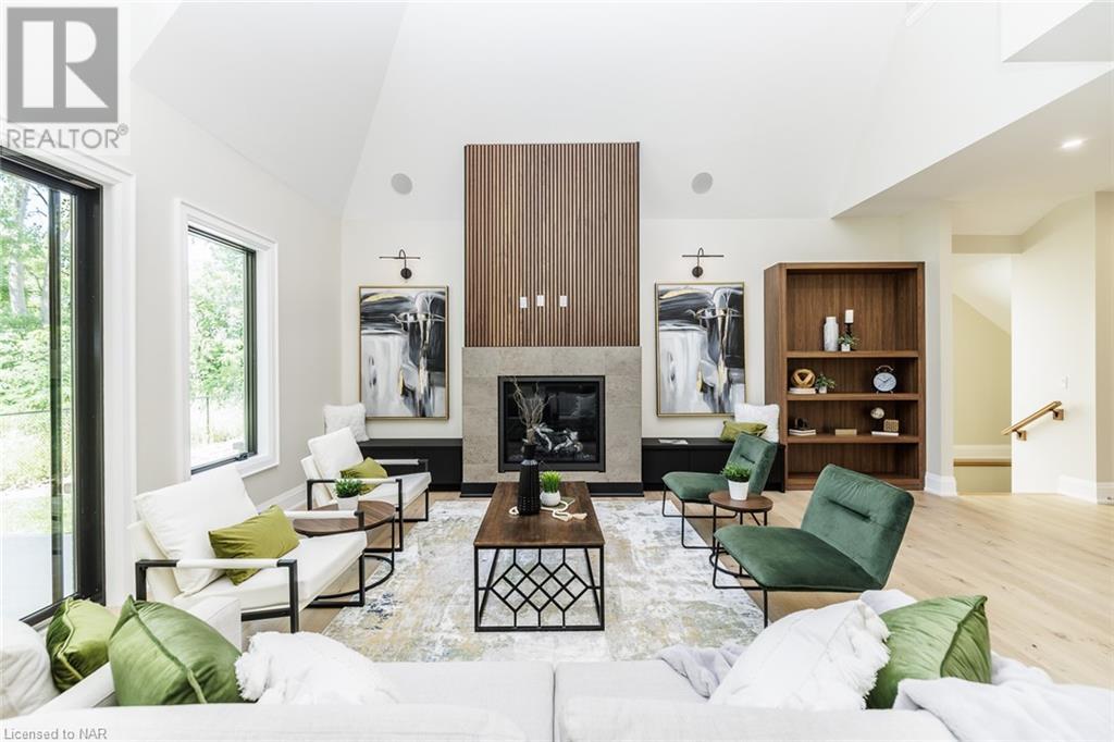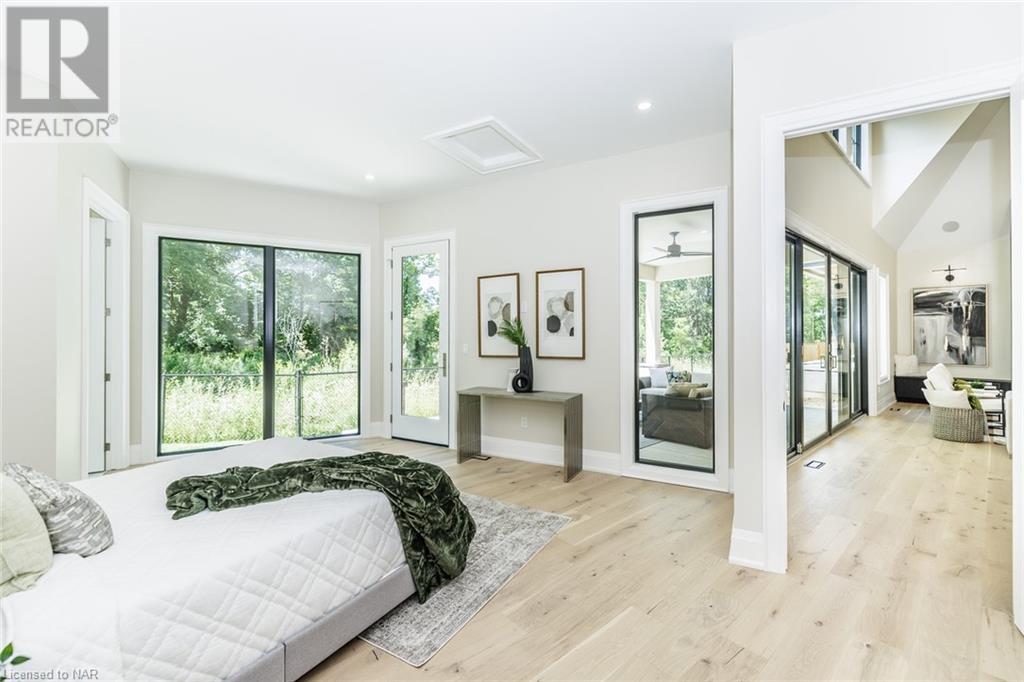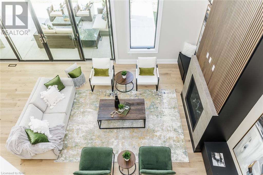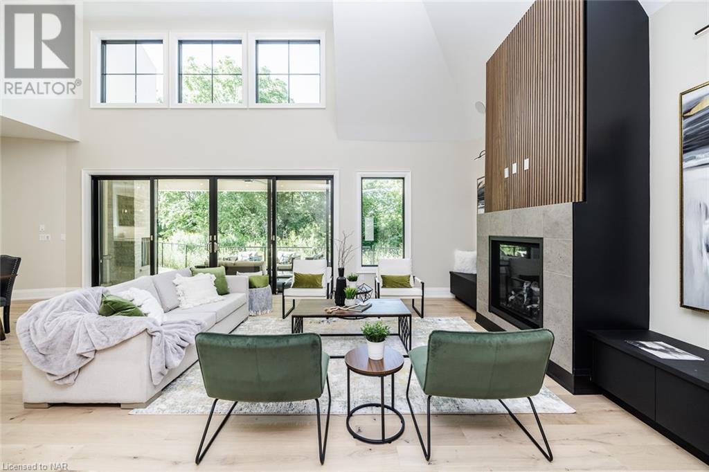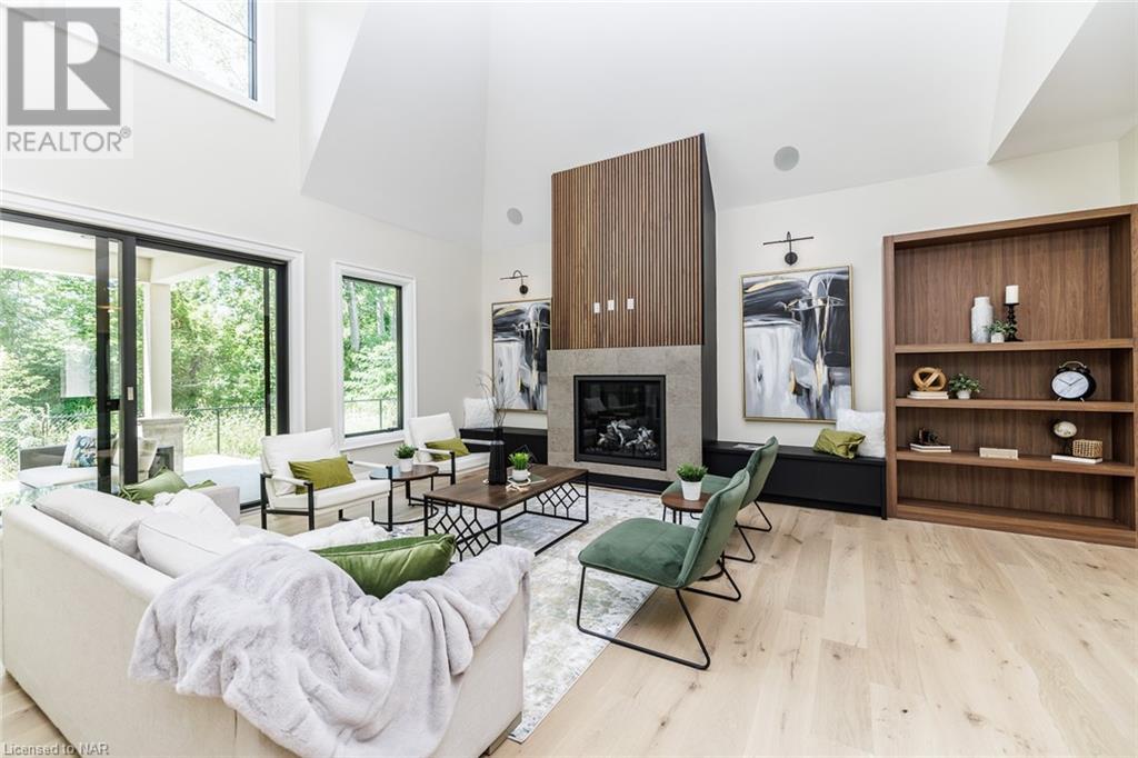 This 3-bedroom, 3-bathroom show-stopping *NEW* build has been masterfully custom-designed by ACK Architects. Positioned perfectly within the picturesque Four Mile Creek at the base of the escarpment in St Davids, this two-story gem spans an impressive 3300 sq.ft. It offers an unparalleled level of craftsmanship and attention to detail. As you step inside, you will be captivated by the stunning green space views. The custom-designed kitchen boasts exquisite finishes, carefully tailored to utilize the unique space, with high-end Bosch appliances included. It combines easy entertaining with function. There's additional storage space in the walk-in pantry for all your culinary needs, as well as a mudroom and laundry area. The beautiful main floor primary bedroom offers a spa-like 5-pc bath experience with double vanities, a soaker tub, heated floors, and a large walk-in closet. Step out onto the covered back deck with an outdoor gas fireplace, adding ambiance and sophistication. This private oasis is ideal for outdoor entertaining or simply relaxing while admiring the natural beauty that surrounds you. This thoughtful layout includes a second-floor office space designed to showcase the wide-open space and panoramic windows, allowing for ample natural light. It provides a serene and inspiring work environment. For your convenience, this home is equipped with a built-in surround sound system and security cameras. With its impeccable design, luxurious features, and idyllic setting, this property is a one-of-a-kind opportunity available for immediate possession!!! (id:22211)