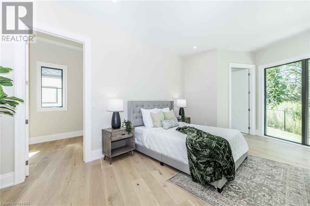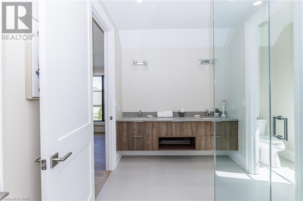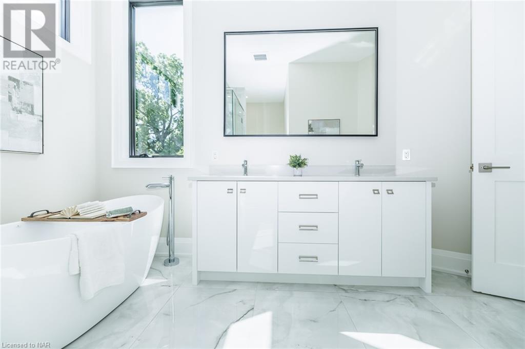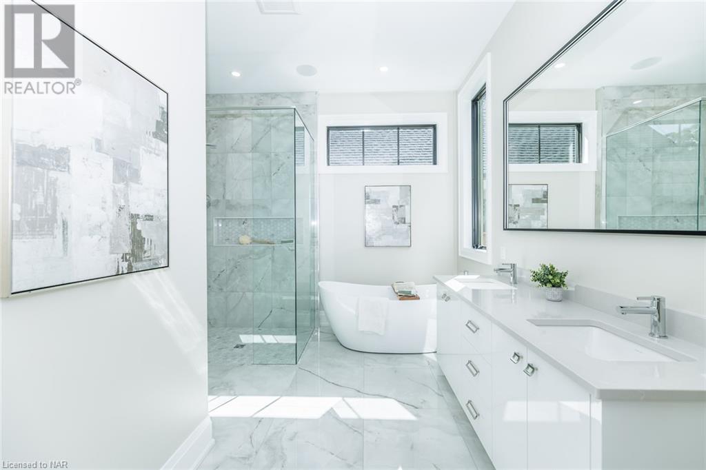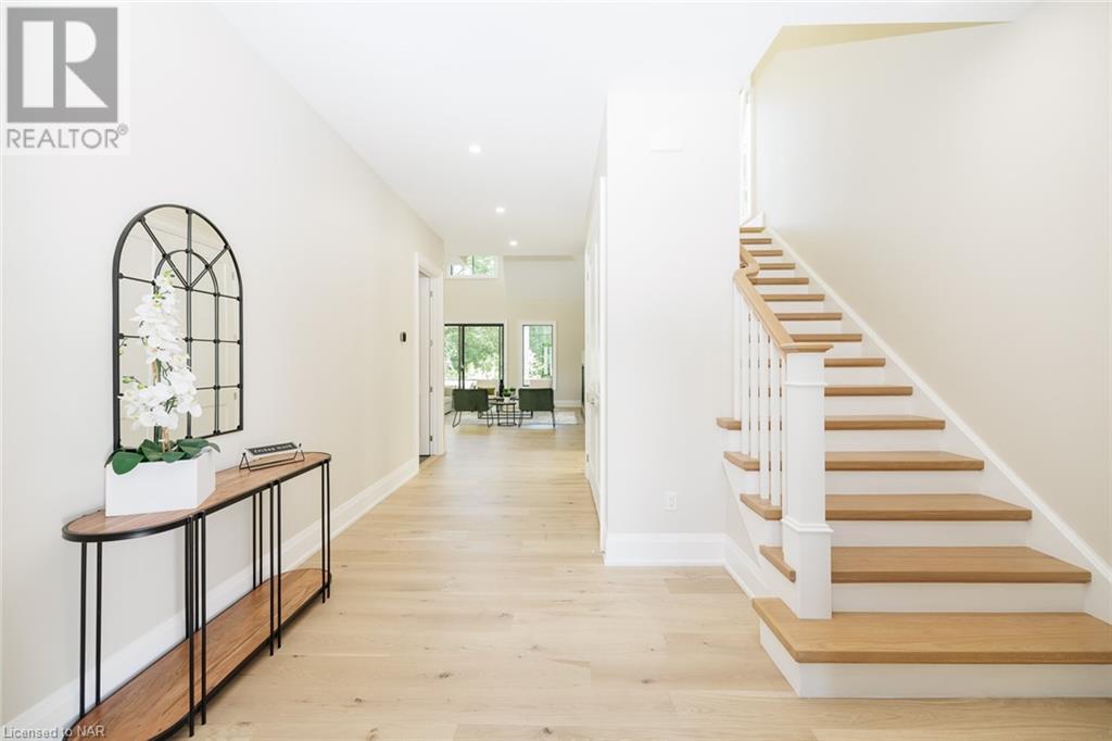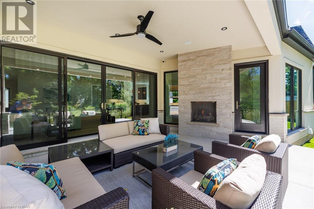 This 3-bedroom, 3-bathroom show-stopping *NEW* build has been masterfully custom-designed by ACK Architects. Positioned perfectly within the picturesque Four Mile Creek at the base of the escarpment in St Davids, this two-story gem spans an impressive 3300 sq.ft. It offers an unparalleled level of craftsmanship and attention to detail. As you step inside, you will be captivated by the stunning green space views. The custom-designed kitchen boasts exquisite finishes, carefully tailored to utilize the unique space, with high-end Bosch appliances included. It combines easy entertaining with function. There's additional storage space in the walk-in pantry for all your culinary needs, as well as a mudroom and laundry area. The beautiful main floor primary bedroom offers a spa-like 5-pc bath experience with double vanities, a soaker tub, heated floors, and a large walk-in closet. Step out onto the covered back deck with an outdoor gas fireplace, adding ambiance and sophistication. This private oasis is ideal for outdoor entertaining or simply relaxing while admiring the natural beauty that surrounds you. This thoughtful layout includes a second-floor office space designed to showcase the wide-open space and panoramic windows, allowing for ample natural light. It provides a serene and inspiring work environment. For your convenience, this home is equipped with a built-in surround sound system and security cameras. With its impeccable design, luxurious features, and idyllic setting, this property is a one-of-a-kind opportunity available for immediate possession!!! (id:22211)