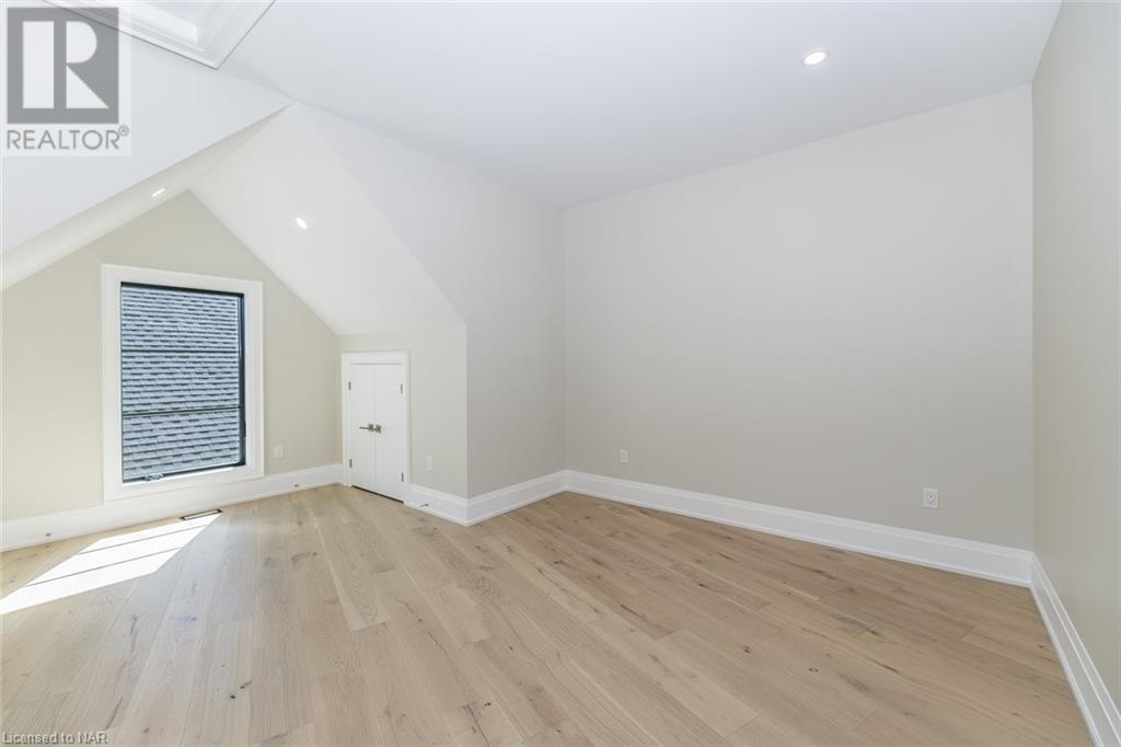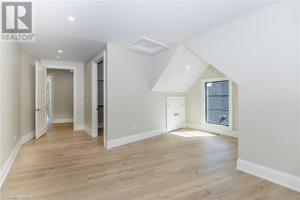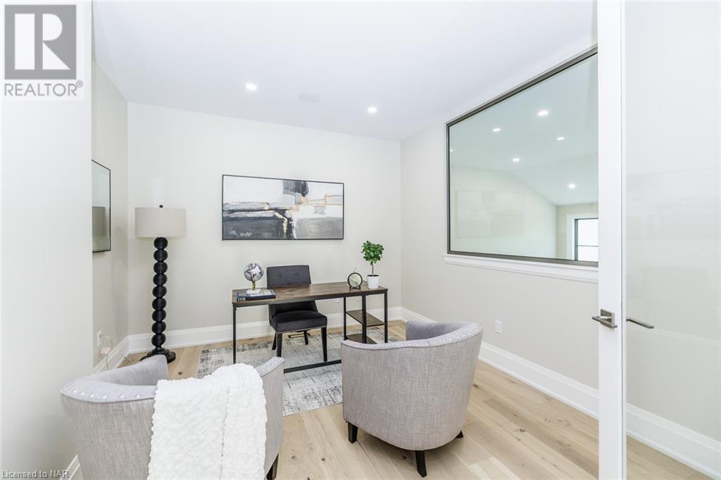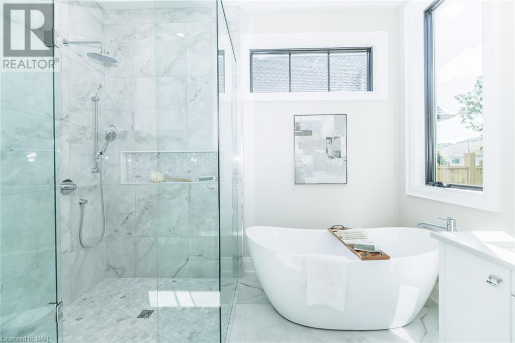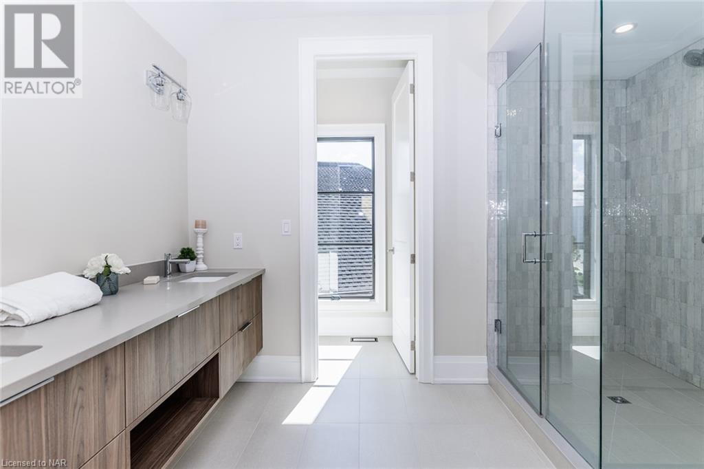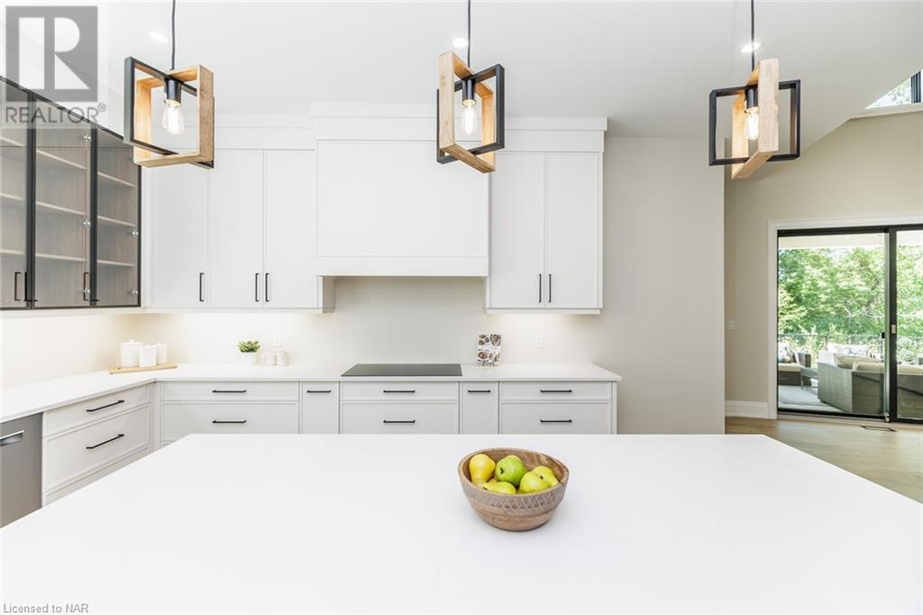 This 3-bedroom, 3-bathroom show-stopping *NEW* build has been masterfully custom-designed by ACK Architects. Positioned perfectly within the picturesque Four Mile Creek at the base of the escarpment in St Davids, this two-story gem spans an impressive 3300 sq.ft. It offers an unparalleled level of craftsmanship and attention to detail. As you step inside, you will be captivated by the stunning green space views. The custom-designed kitchen boasts exquisite finishes, carefully tailored to utilize the unique space, with high-end Bosch appliances included. It combines easy entertaining with function. There's additional storage space in the walk-in pantry for all your culinary needs, as well as a mudroom and laundry area. The beautiful main floor primary bedroom offers a spa-like 5-pc bath experience with double vanities, a soaker tub, heated floors, and a large walk-in closet. Step out onto the covered back deck with an outdoor gas fireplace, adding ambiance and sophistication. This private oasis is ideal for outdoor entertaining or simply relaxing while admiring the natural beauty that surrounds you. This thoughtful layout includes a second-floor office space designed to showcase the wide-open space and panoramic windows, allowing for ample natural light. It provides a serene and inspiring work environment. For your convenience, this home is equipped with a built-in surround sound system and security cameras. With its impeccable design, luxurious features, and idyllic setting, this property is a one-of-a-kind opportunity available for immediate possession!!! (id:22211)