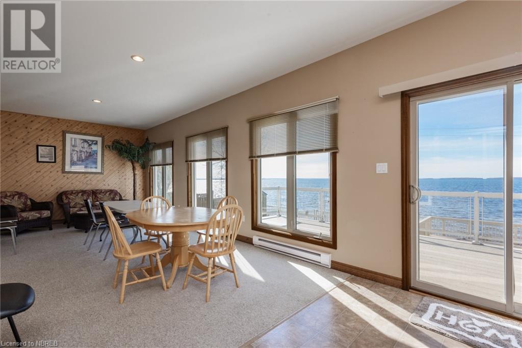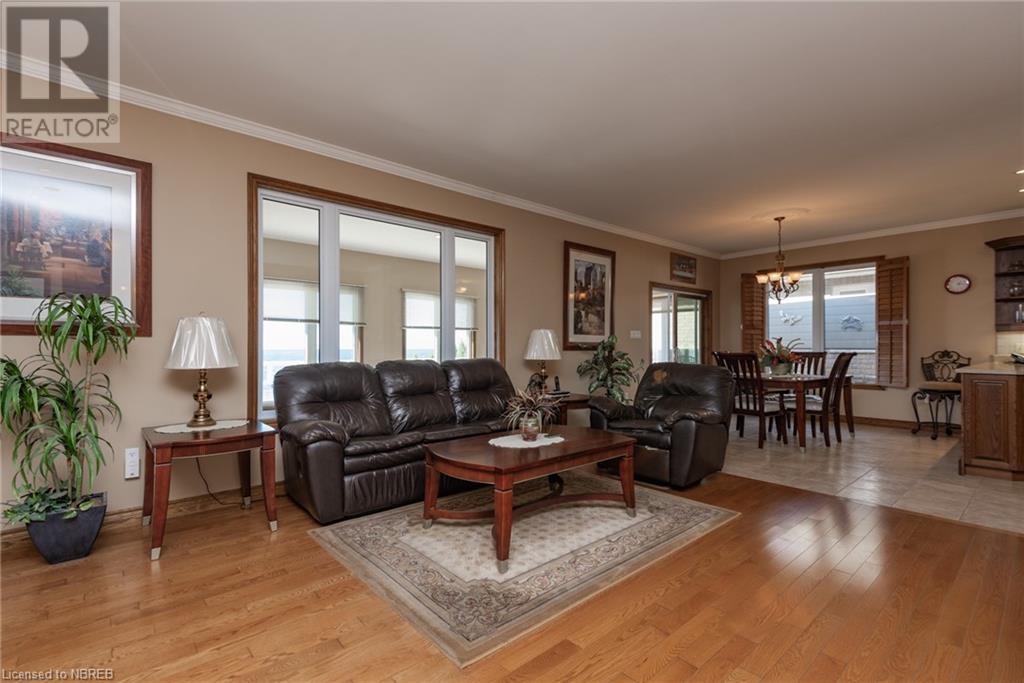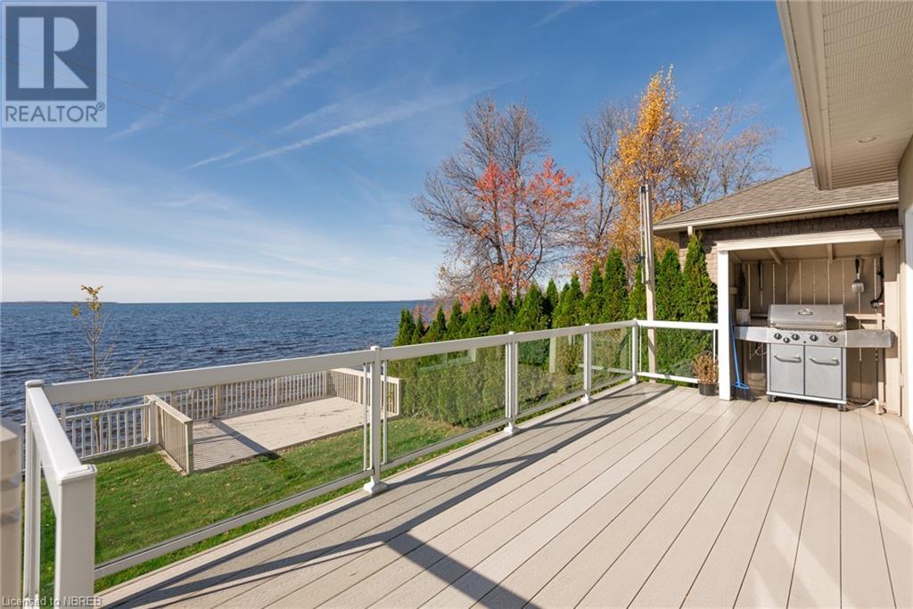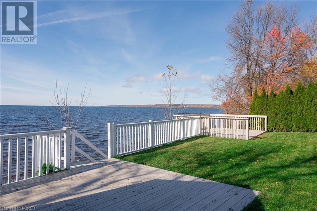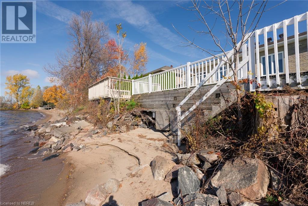 Welcome to 645 Memorial Dr. Waterfront living within city limits and on city services!! This executive home was built in 2005 and boasts a gorgeous entryway with access from your double car garage, and a huge closet. You'll notice the gleaming hardwood floors as you walk up the stairs to an open concept kitchen, dining and living room with a beautiful gas fireplace and access to an oversized all-season sunroom to enjoy daily sunrises and sunsets in the comfort of your home. The spacious master includes a 5-piece ensuite and huge walk-in closet. The second bedroom is just as spacious. To finish the main floor there is a beautiful 3pce bathroom. Downstairs you will find nothing but open space, a wet bar, laundry room, and 2 bedrooms! With 133' of water frontage, an attached and detached deck perfect for entertaining, enough room for the kids to play in the backyard plus a vegetable garden! This home is a must see and a rare find for North Bay. (id:22211)