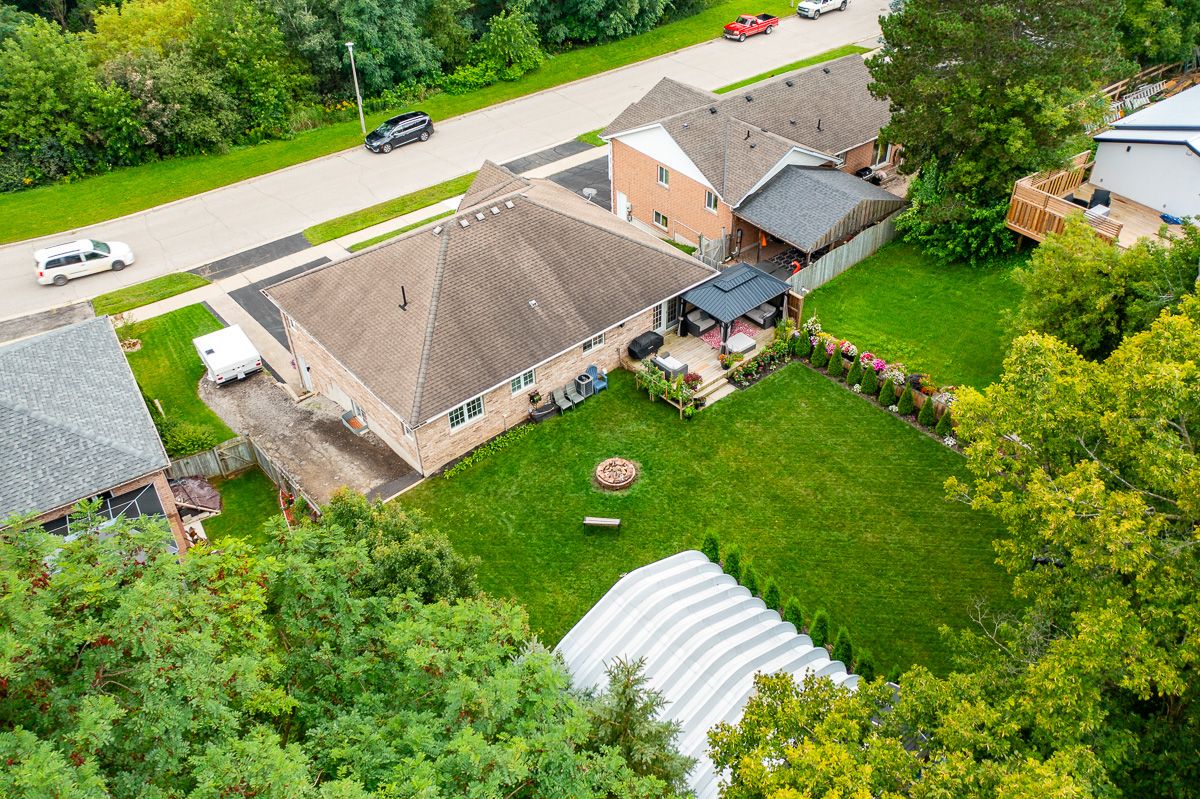 Stunning smart home renovation! Raised bungalow on a large lot in the charming town of Ayr. 233 Mitchell st, sits on a 72' x 144' lot in a tranquil setting overlooking a naturalized greenspace; the width of the lot provides vehicular access to the back yard. The beautiful curb appeal says 'pride of ownership' with meticulously manicured flower gardens and exposed aggregate wakway with glass rail leading to the front door.**INTERBOARD LISTING: WATERLOO ASSOCIATION OF REALTORS**