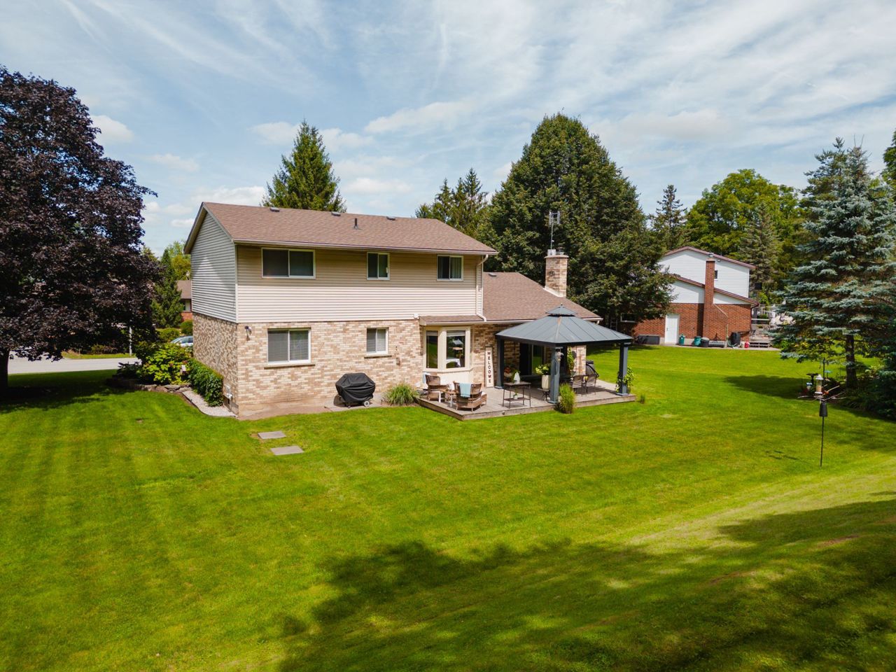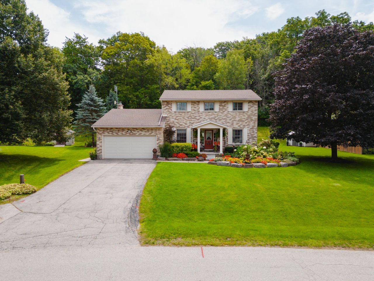 This spacious family home is located in the village of Branchton, in North Dumfries. W/ 4 bedrooms and 2.5 bathrooms spread across 1900 sq ft. The main floor offers a comfortable living room, a nicely designed kitchen with an eating area, a laundry room, dining room, family room, den, and a powder room. Upstairs, the primary bedroom impresses with double closets, an ensuite and overlooking backyard views. The 3 addtl bedrooms are served by a 4pc bathroom. The basement offers endless possibilities for additional living space. Step outside into the backyard oasis—a sprawling 0.5-acre retreat w/ forest views. Enjoy gatherings on the large deck, a tree fort for kids, a newly built shed for all of your storage needs, and mature landscaping. The front yard has charming flower beds enclosed by natural quarry stone (armour stone) and there is a covered porch perfect. This home, located in a welcoming rural community, is perfectly suited for families and retirees alike.Branchton’s charm lies in its community-oriented environment, w/ a park & w/ both Cambridge and Brantford just a short 15-minute drive away. With over 30 years of cherished and attentive ownership, this home is ready for its next chapter.