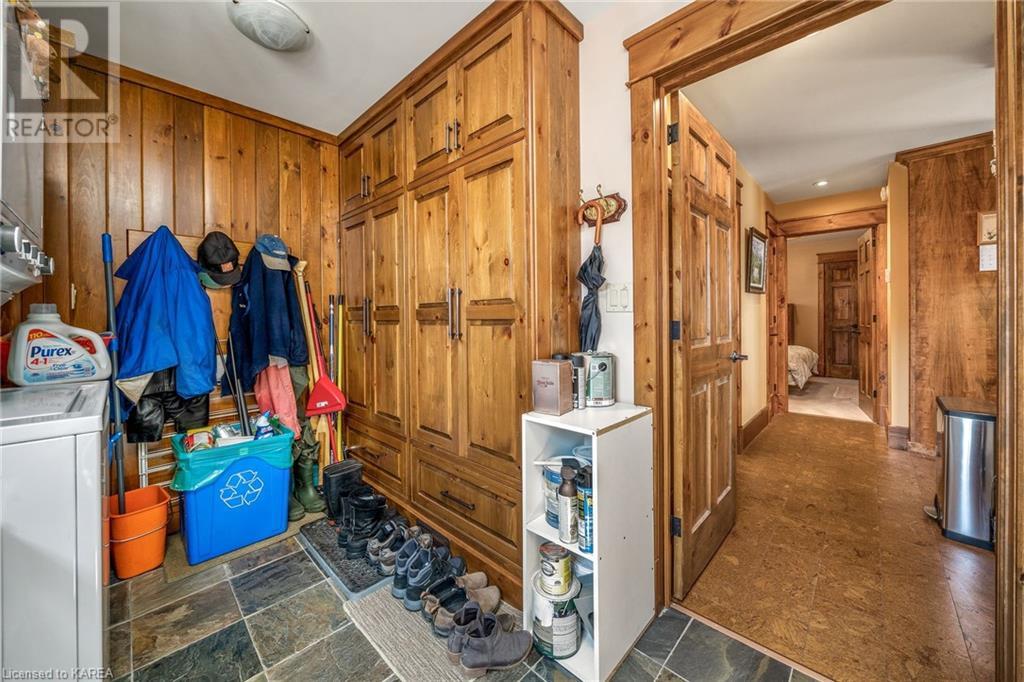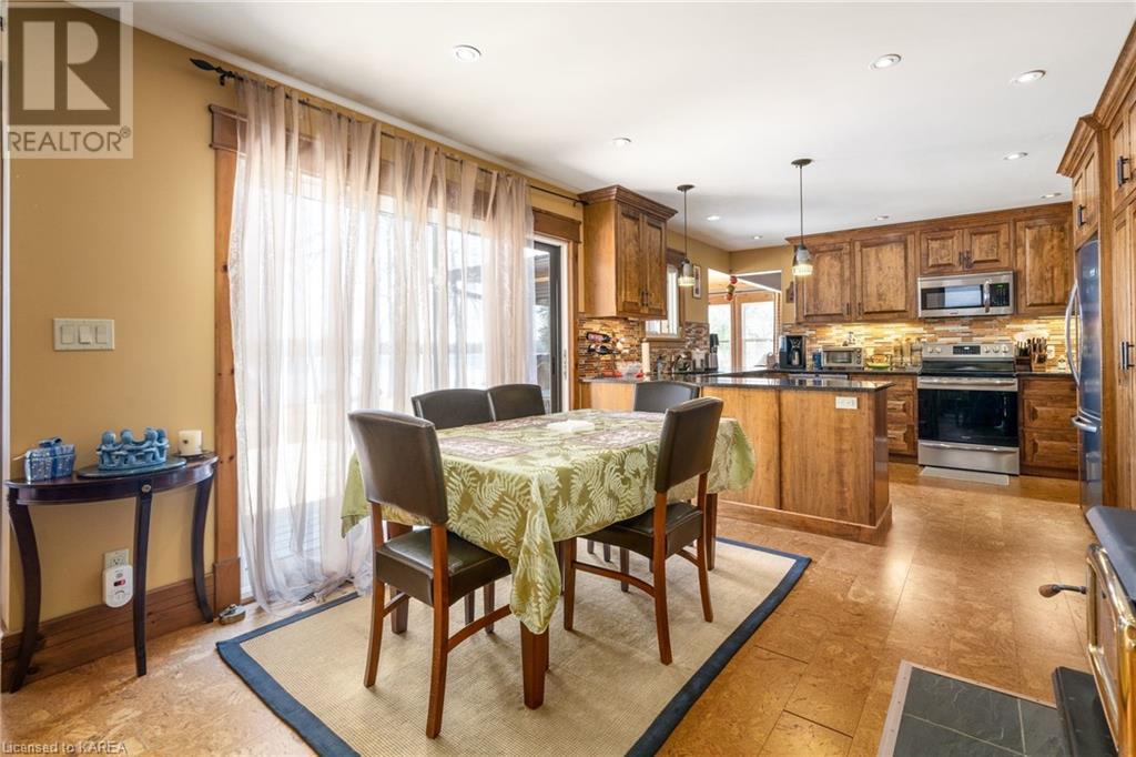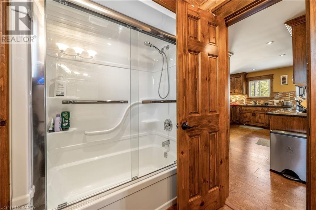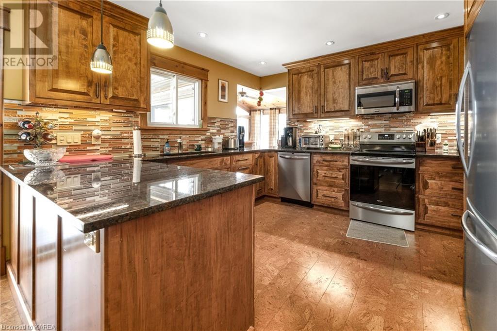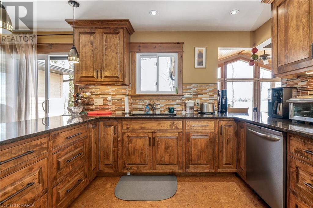 Welcome to this stunning 3 bedroom, 2 bathroom waterfront bungalow on beautiful Kashwakamak Lake. This home boasts an open concept layout, perfect for entertaining guests or enjoying a peaceful evening by the water. As you step inside, you'll notice the beautiful built-in cabinetry throughout the home, providing ample storage space and adding a touch of elegance to the space. The large windows throughout the living room and dining area allow for plenty of natural light to flood the space, providing a warm and welcoming atmosphere and amazing views of the lake. The kitchen features built-in appliances and granite countertops making meal prep and cooking a breeze. The home also features three generously sized bedrooms, and a large sunroom that could easily be another space for guests, providing plenty of space for you and your family to rest and relax. Outside, you'll find 2 sheds and a large detached garage/shop providing ample storage space for all of your outdoor gear and toys. The small sandy beach with your own private dock is the perfect spot for relaxing and taking in the stunning views of the lake and watching the kids swim. Whether you're looking for a peaceful retreat, year round home or a place to entertain friends and family for the summer, this waterfront bungalow on Kashwakamak Lake is the perfect choice. Don't miss your opportunity to make this stunning property your own! (id:22211)