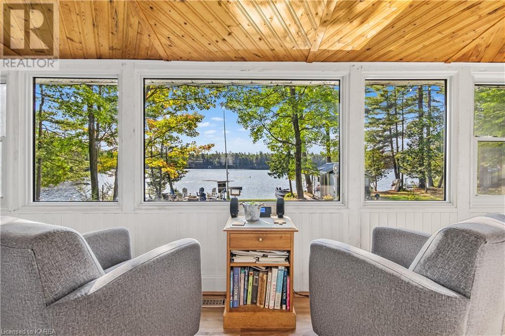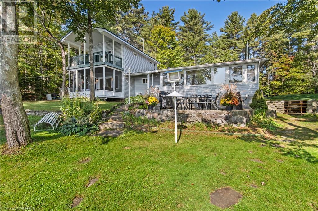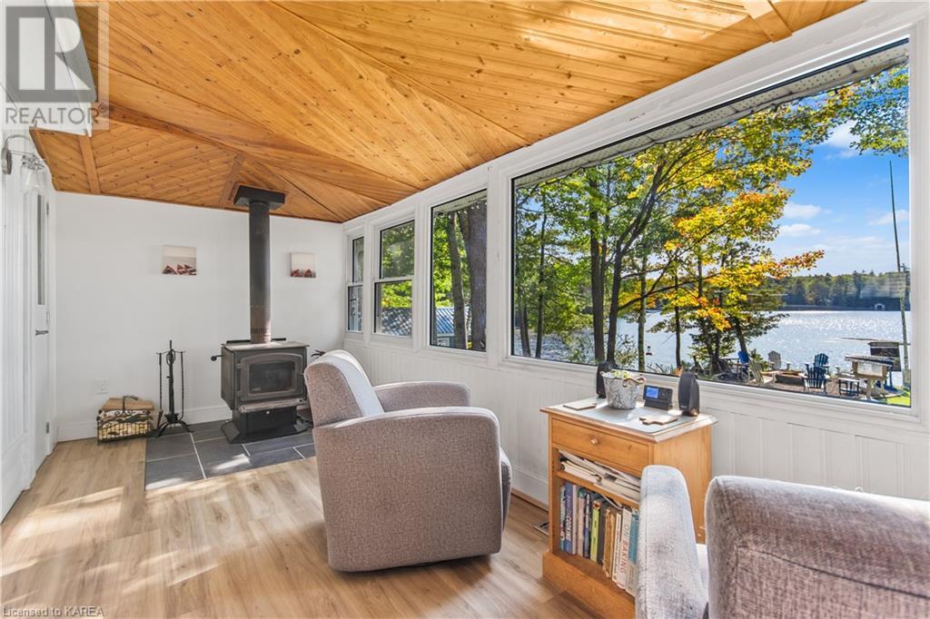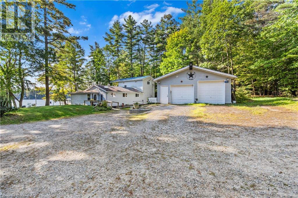 Are you ready for lakeside living? Sitting under the moonlit sky around the camp fire breathing in the fresh air and enjoying summer days swimming and boating Big Gull Lake! This home will not disappoint and you are sure to feel relaxed the moment you pull in the driveway. This home has been recently refreshed with a new kitchen and new flooring throughout the main level. The main level features a bright and cheery eat-in kitchen, a perfect space for friends and family to gather. Off the kitchen is a terrific sitting area with windows facing the lake, a wonderful space to enjoy your morning coffee. Down the hall you will find two refreshed bedrooms, bathroom, main floor laundry, and large living room with propane fireplace great for spending those chilly fall evenings! Bonus is the 3 season sunroom off the living area that will surely be one of your favorite spaces to relax and gives you a true indoor/outdoor feeling. On the second level is two additional bedrooms the primary has a large closet/built ins and fully renovated and modern 3 pc ensuite. Open the doors to your private deck to watch the sunrise in the mornings. Outside you’ll not only discover a level 155’ of waterfront great for swimming you’ll also discover a detached 20' x 40' 2 car garage with 12' x 12' storage space and a 12' x 12' exercise room. Down on the waterfront houses a boathouse, as well as a sauna and hot tub in their own 'spa house.' A gorgeous circular firepit over looking the lake and plenty of room for parking, including a designated 35' area to park an RV, with 30 amp hook up service. Bonus is the availability of Starlink high speed internet!! Some of the many updates include: New septic system '13, Steel Roof on Garage, Hot Tub, Boat House, Main House '17 thru '22, ensuite '20, sunroom picture and side windows, living room sliding doors & side windows '19, propane furnace '17, propane water heater '16. Kitchen and flooring and paint on main level ‘23. Don’t miss out on this one! (id:22211)