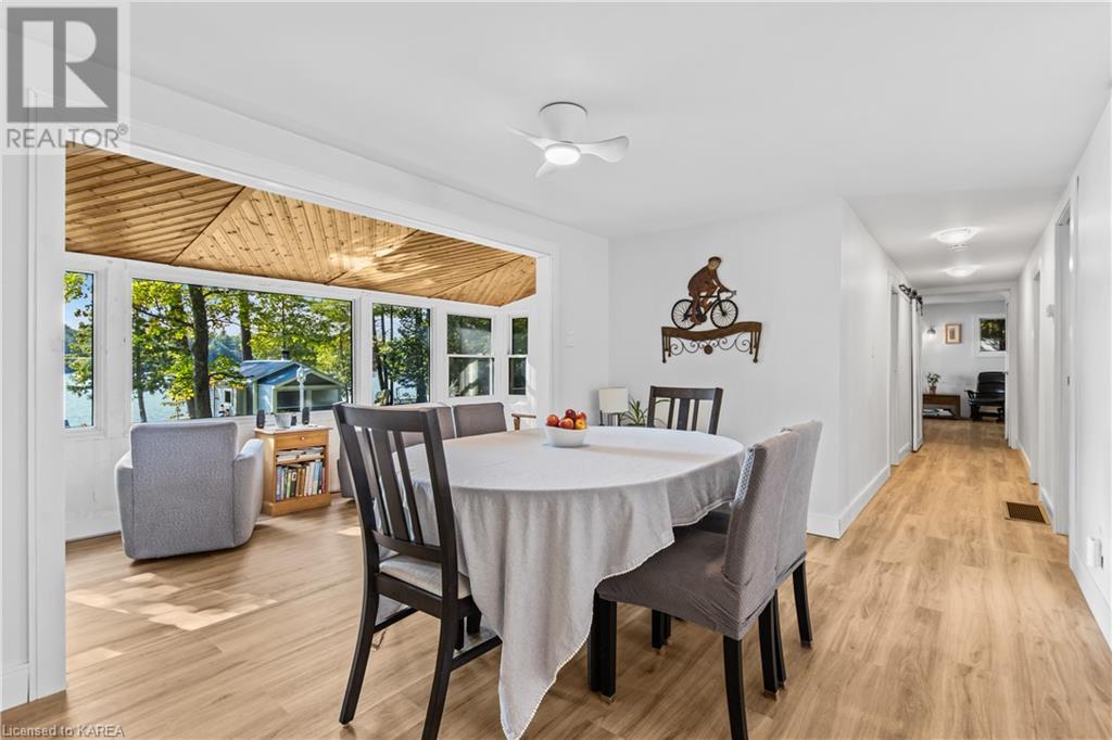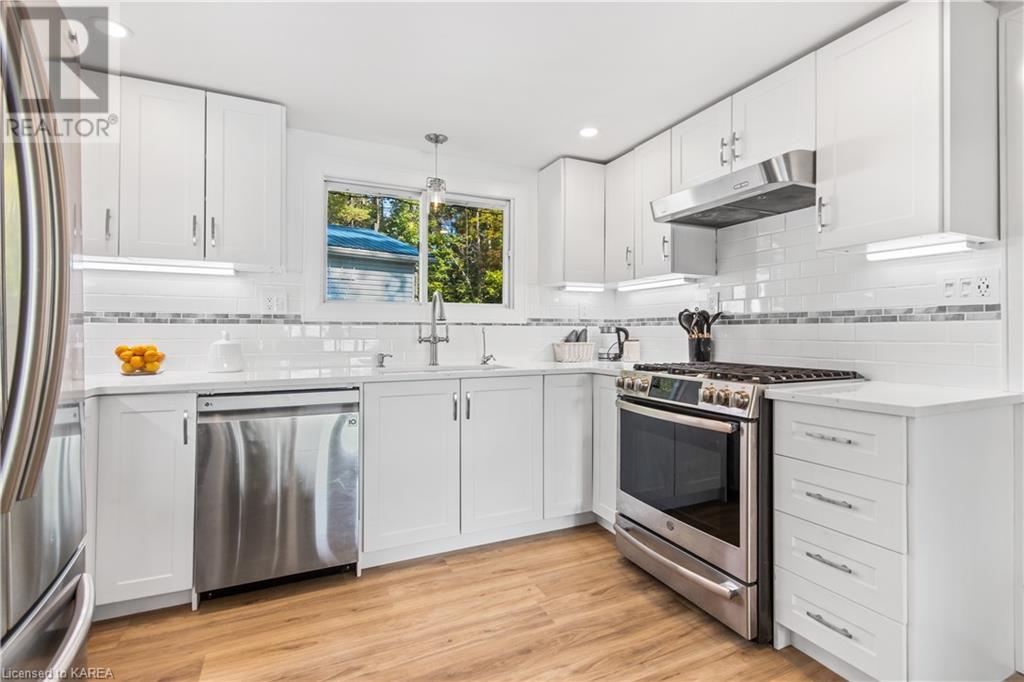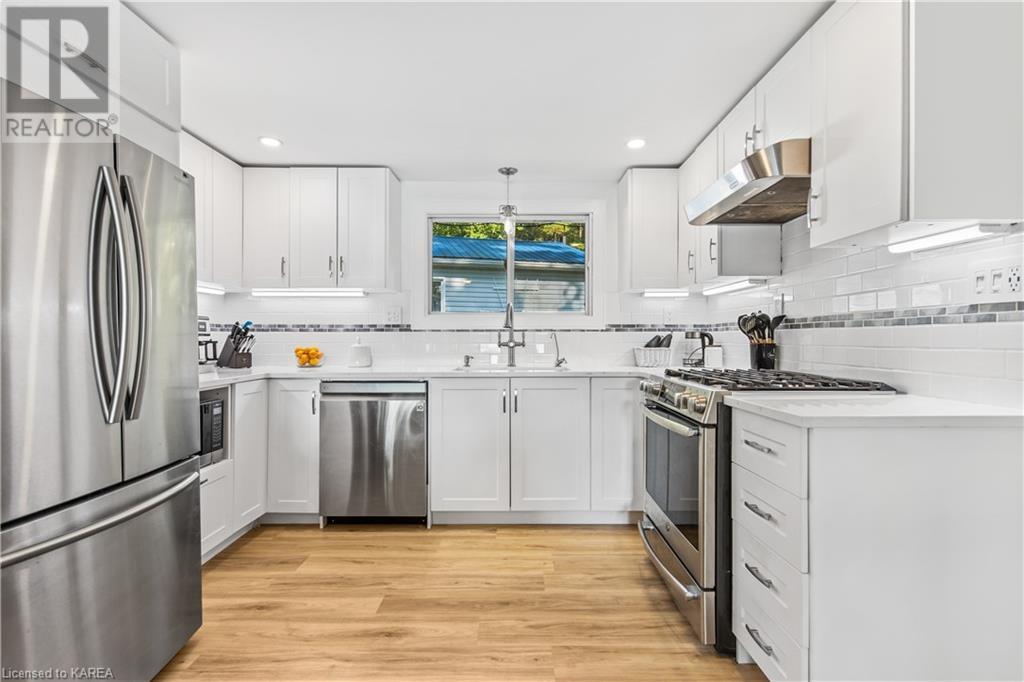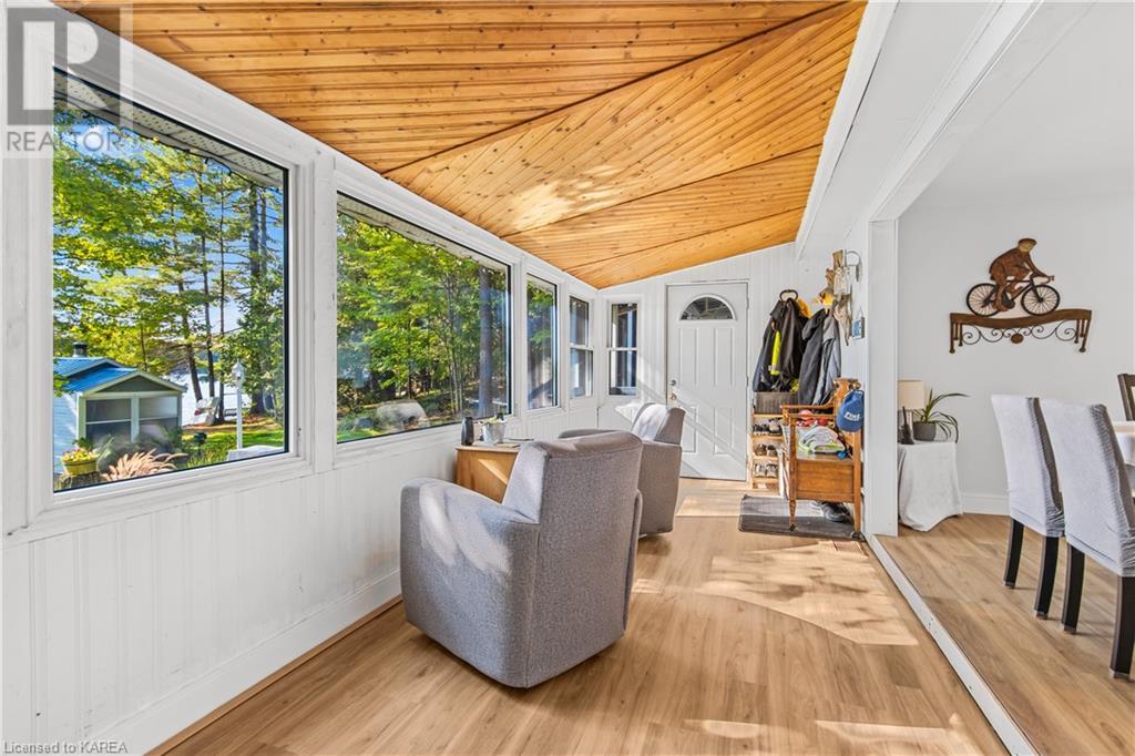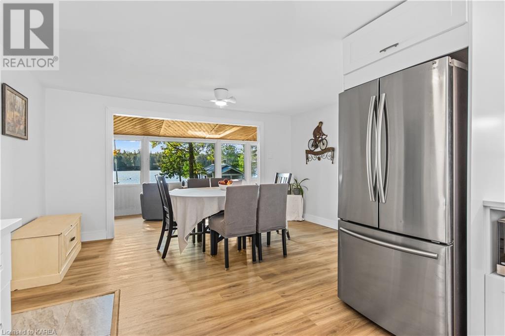Are you ready for lakeside living? Sitting under the moonlit sky around the camp fire breathing in the fresh air and enjoying summer days swimming and boating Big Gull Lake! This home will not disappoint and you are sure to feel relaxed the moment you pull in the driveway. This home has been recently refreshed with a new kitchen and new flooring throughout the main level. The main level features a bright and cheery eat-in kitchen, a perfect space for friends and family to gather. Off the kitchen is a terrific sitting area with windows facing the lake, a wonderful space to enjoy your morning coffee. Down the hall you will find two refreshed bedrooms, bathroom, main floor laundry, and large living room with propane fireplace great for spending those chilly fall evenings! Bonus is the 3 season sunroom off the living area that will surely be one of your favorite spaces to relax and gives you a true indoor/outdoor feeling. On the second level is two additional bedrooms the primary has a large closet/built ins and fully renovated and modern 3 pc ensuite. Open the doors to your private deck to watch the sunrise in the mornings. Outside you’ll not only discover a level 155’ of waterfront great for swimming you’ll also discover a detached 20' x 40' 2 car garage with 12' x 12' storage space and a 12' x 12' exercise room. Down on the waterfront houses a boathouse, as well as a sauna and hot tub in their own 'spa house.' A gorgeous circular firepit over looking the lake and plenty of room for parking, including a designated 35' area to park an RV, with 30 amp hook up service. Bonus is the availability of Starlink high speed internet!! Some of the many updates include: New septic system '13, Steel Roof on Garage, Hot Tub, Boat House, Main House '17 thru '22, ensuite '20, sunroom picture and side windows, living room sliding doors & side windows '19, propane furnace '17, propane water heater '16. Kitchen and flooring and paint on main level ‘23. Don’t miss out on this one! (id:22211)