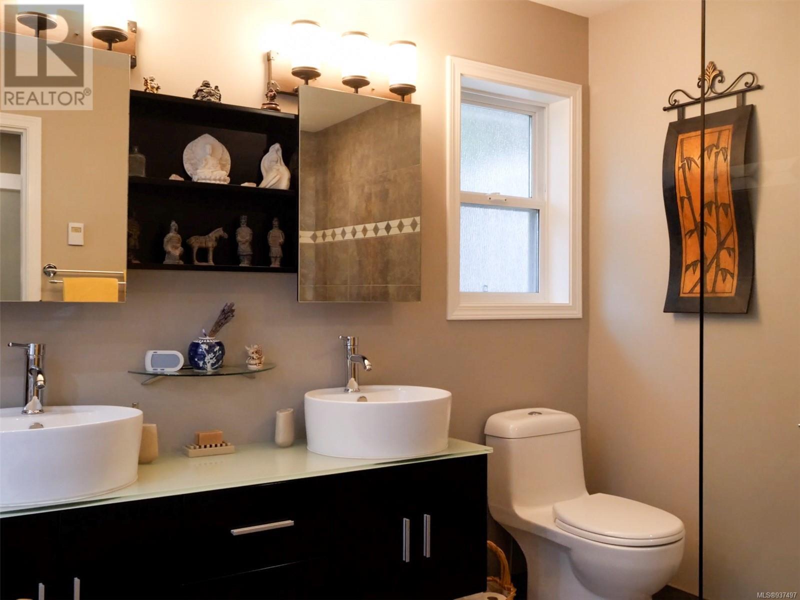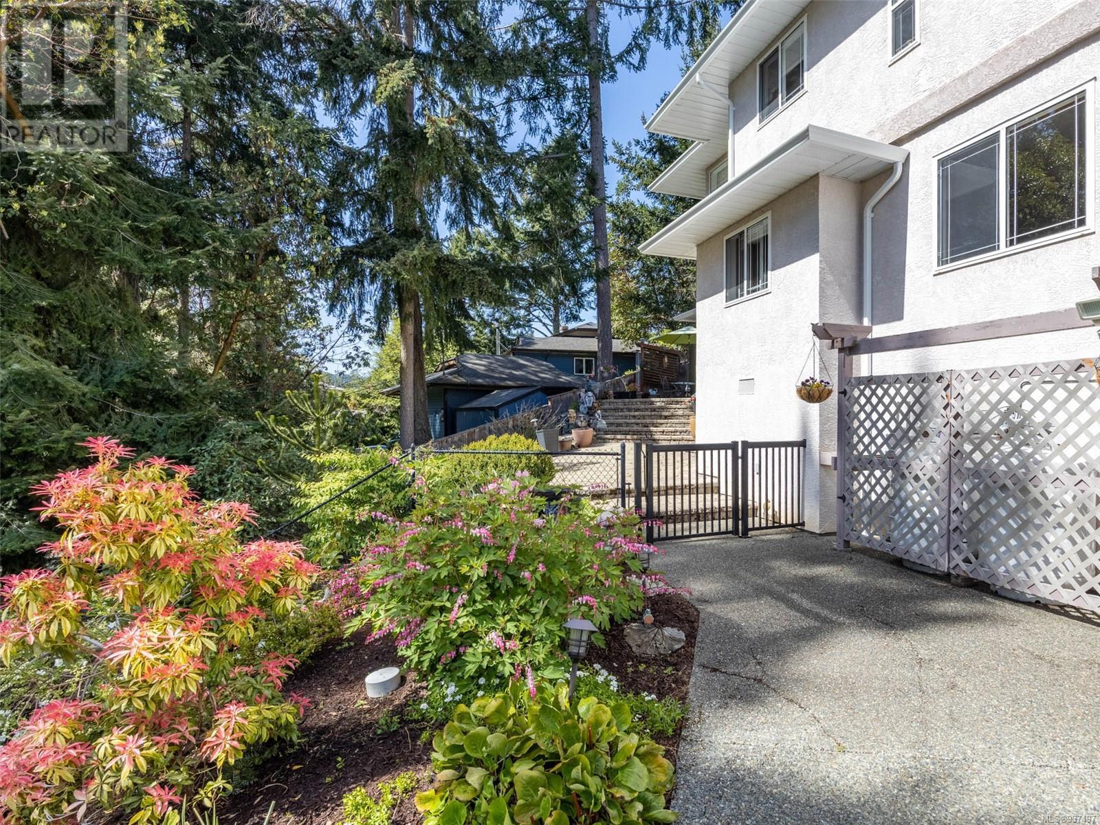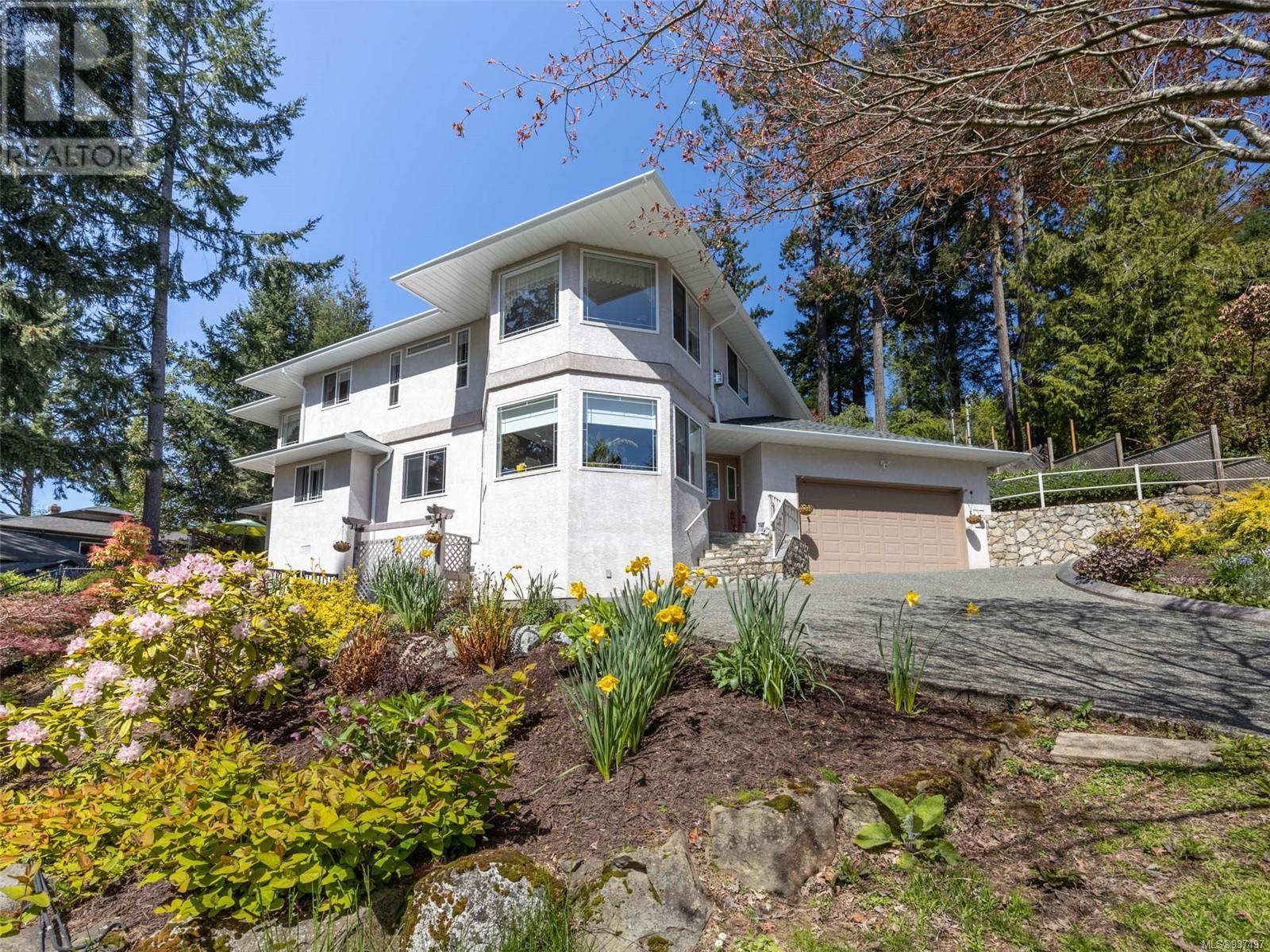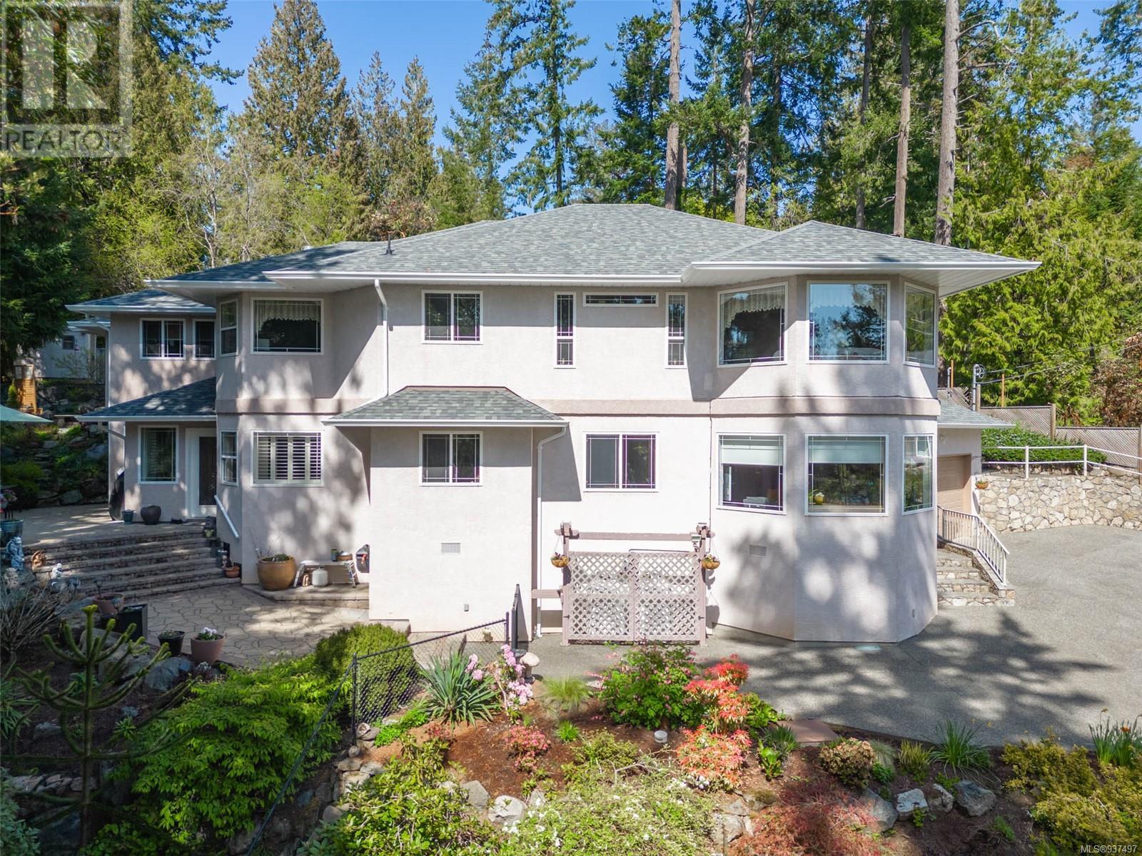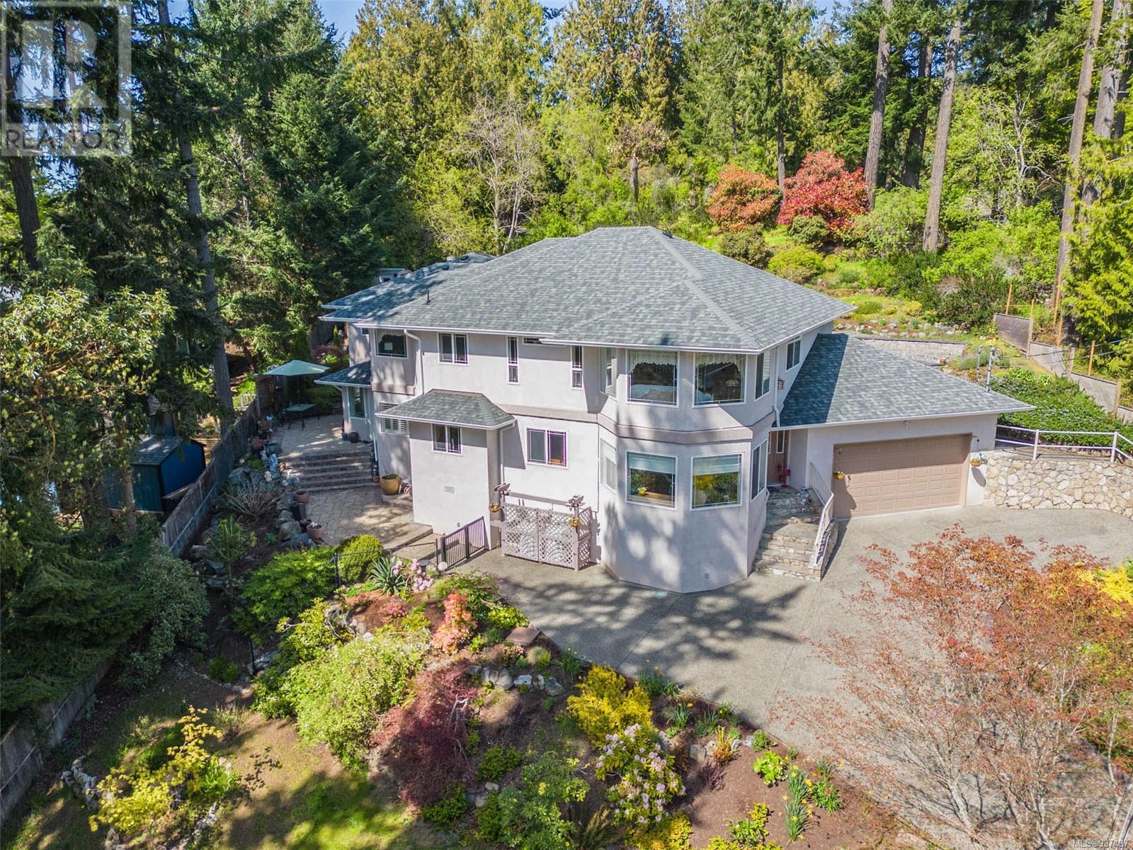 Welcome to 2250 Tryon Road. This unique executive home is perfectly designed to house two families while not compromising privacy. The upstairs features a tiled entry that leads up to a two-bed home w hardwood floors, open dining & living area w a propane FP to cozy up to on those chilly winter evenings. The kitchen/family room is open & bright w a cozy eating area. Primary is large w patio access & features an ensuite with double walk-in shower & soaker tub. Down is a gorgeous two bedroom that was added in 2010 & will satisfy the most discerning buyer. Chef’s kitchen w quartz countertops, tiled backsplash, SS appliances & eating bar. Separate spacious dining room, living room with double sided FP into spacious family room. Up is a great hobby room & primary featuring a beautiful ensuite with heated floor, double sinks, soaker tub & spacious walk-in closet. Beautifully landscaped for low maintenance living w many patios, rock walls & greenhouse. Minutes to downtown Sidney. (id:22211)