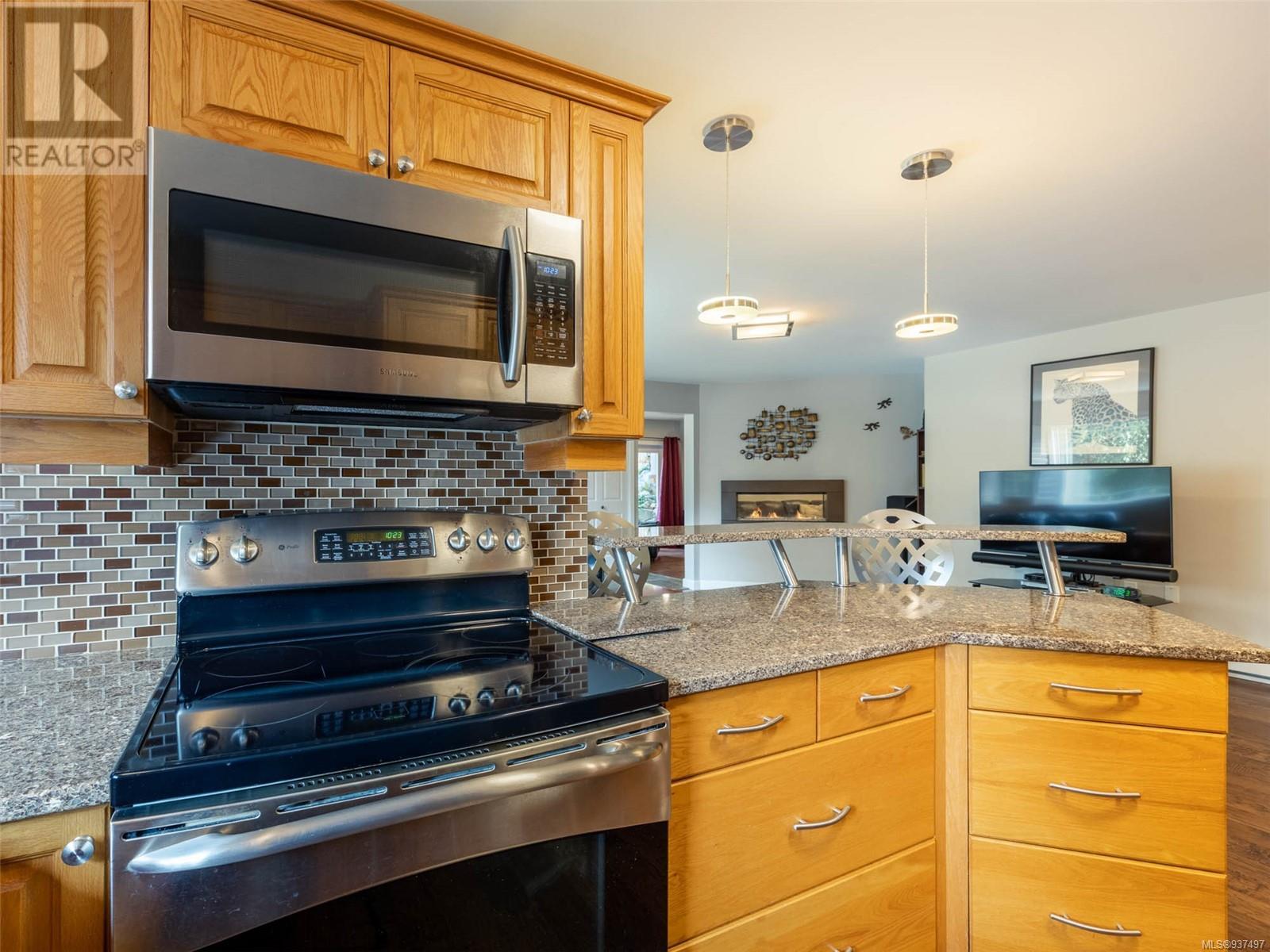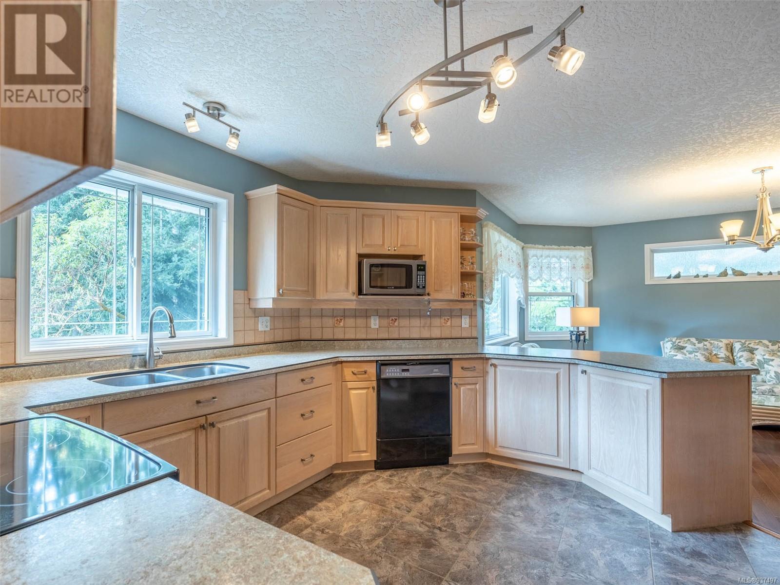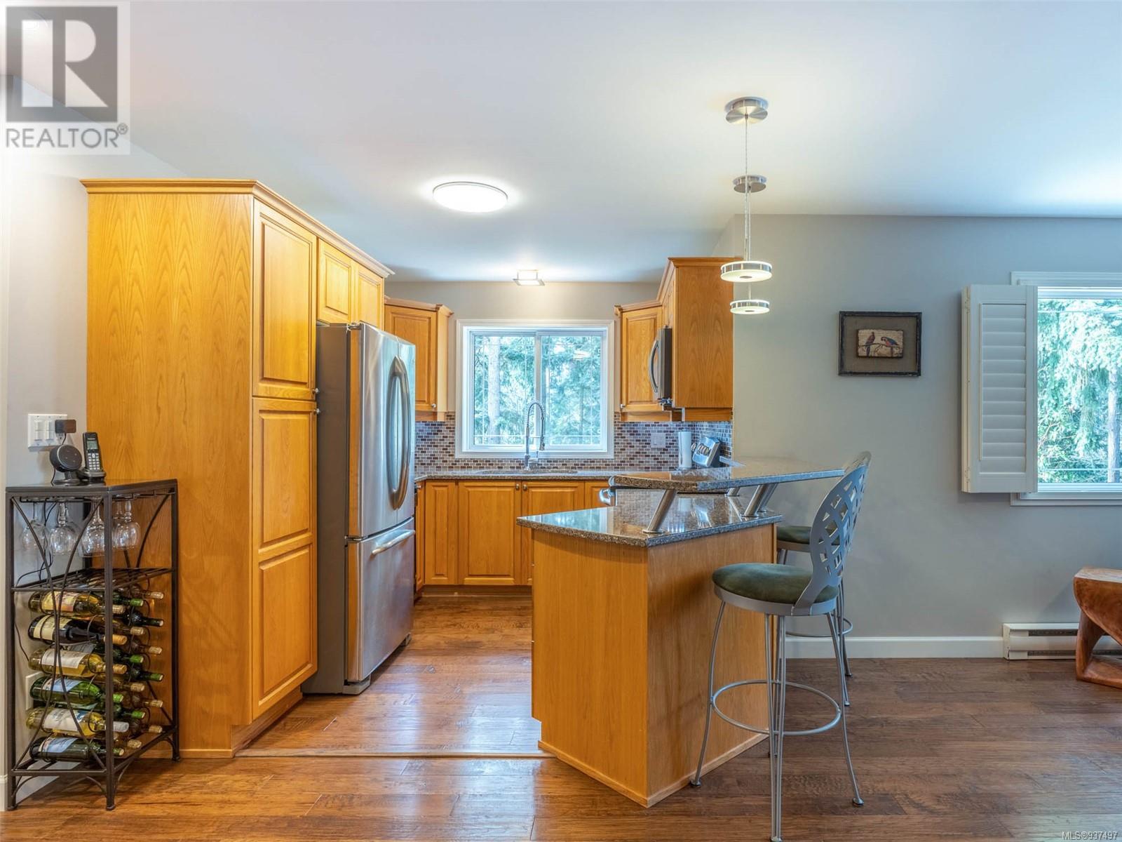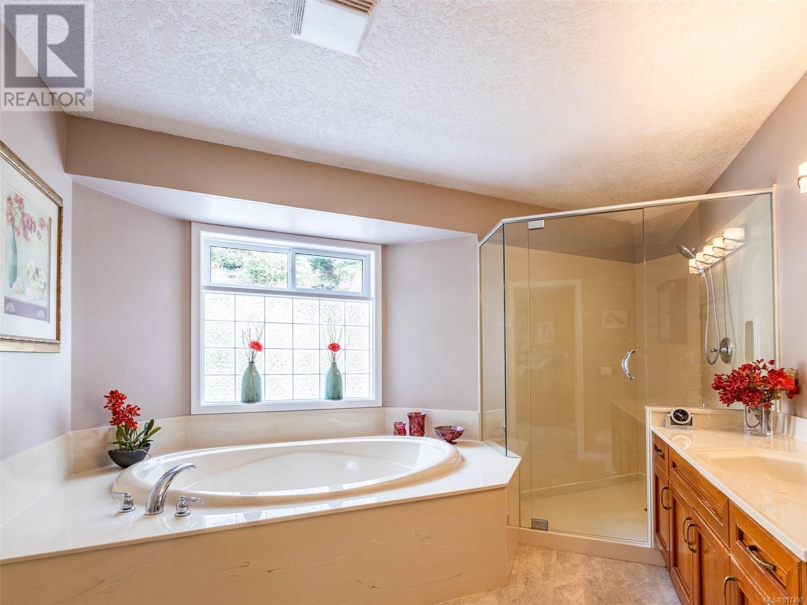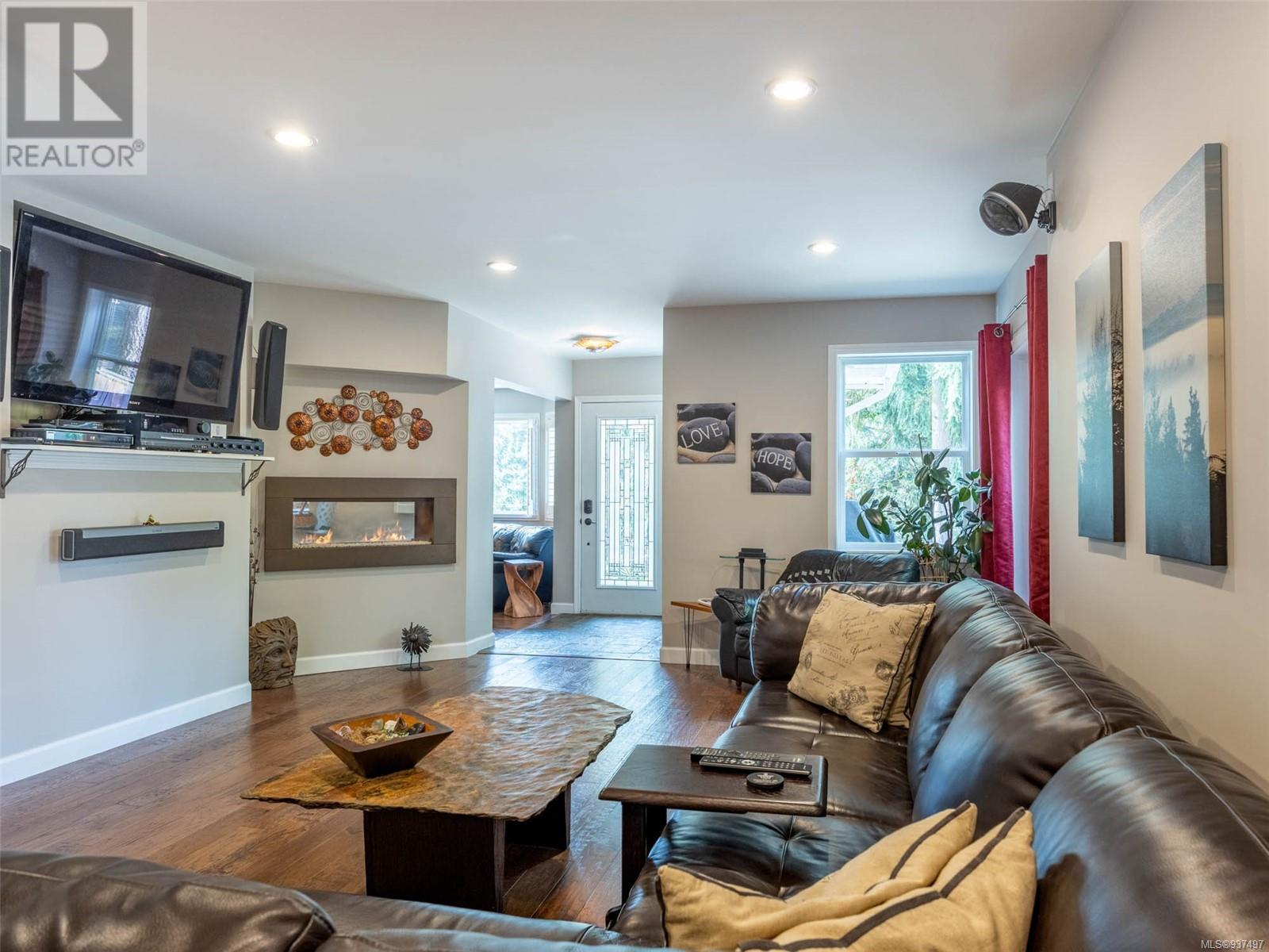 Welcome to 2250 Tryon Road. This unique executive home is perfectly designed to house two families while not compromising privacy. The upstairs features a tiled entry that leads up to a two-bed home w hardwood floors, open dining & living area w a propane FP to cozy up to on those chilly winter evenings. The kitchen/family room is open & bright w a cozy eating area. Primary is large w patio access & features an ensuite with double walk-in shower & soaker tub. Down is a gorgeous two bedroom that was added in 2010 & will satisfy the most discerning buyer. Chef’s kitchen w quartz countertops, tiled backsplash, SS appliances & eating bar. Separate spacious dining room, living room with double sided FP into spacious family room. Up is a great hobby room & primary featuring a beautiful ensuite with heated floor, double sinks, soaker tub & spacious walk-in closet. Beautifully landscaped for low maintenance living w many patios, rock walls & greenhouse. Minutes to downtown Sidney. (id:22211)