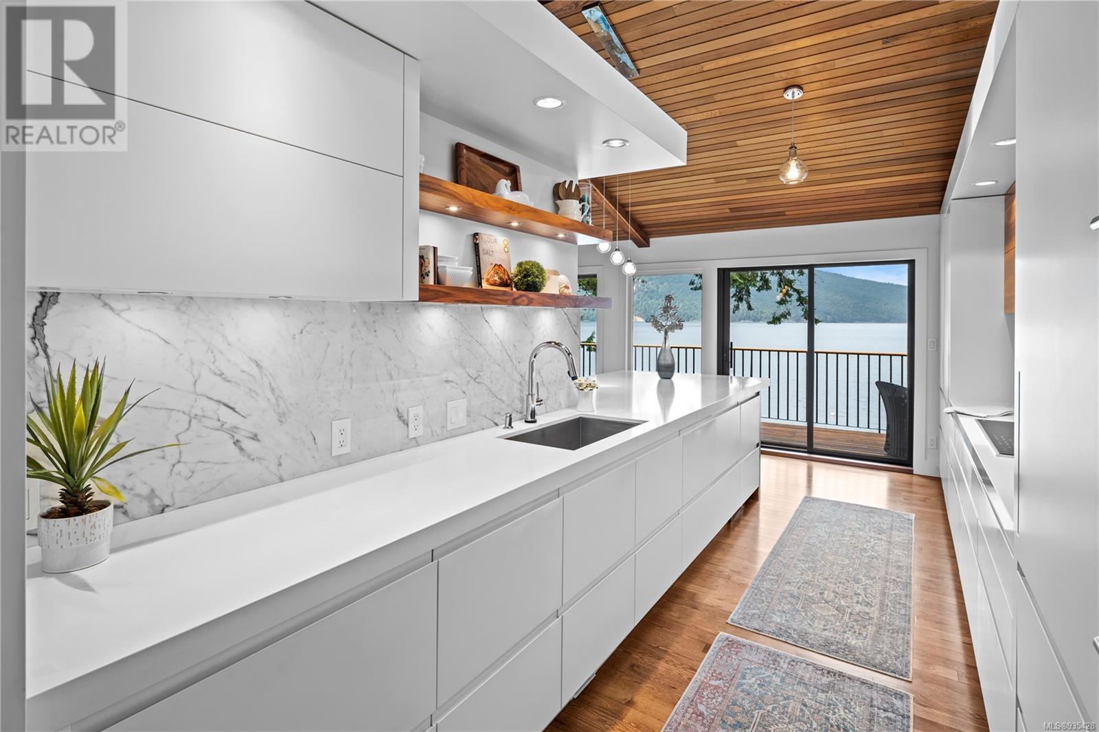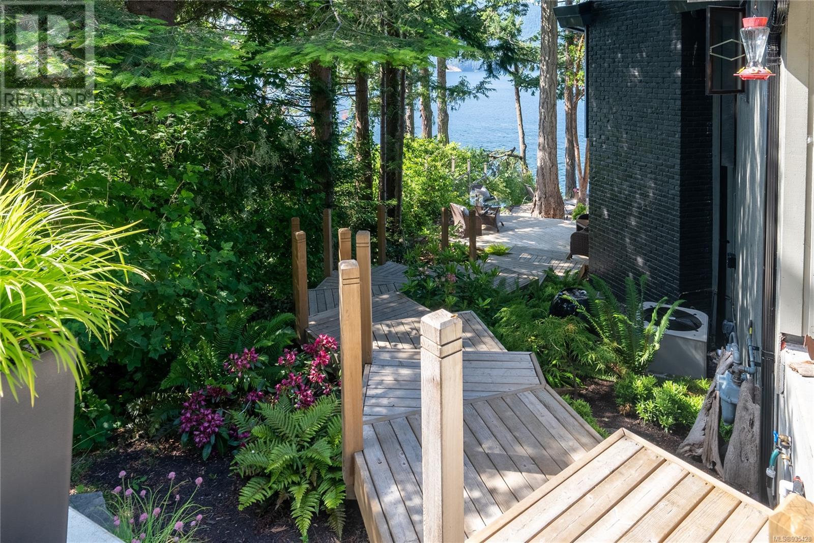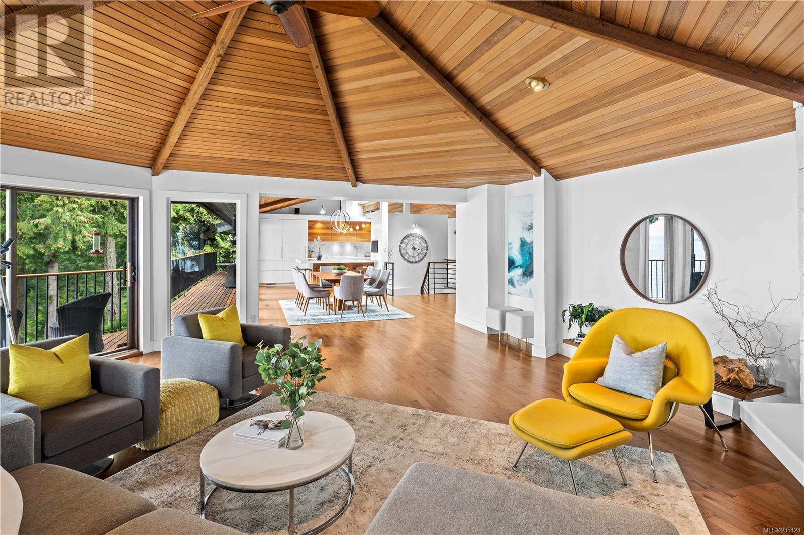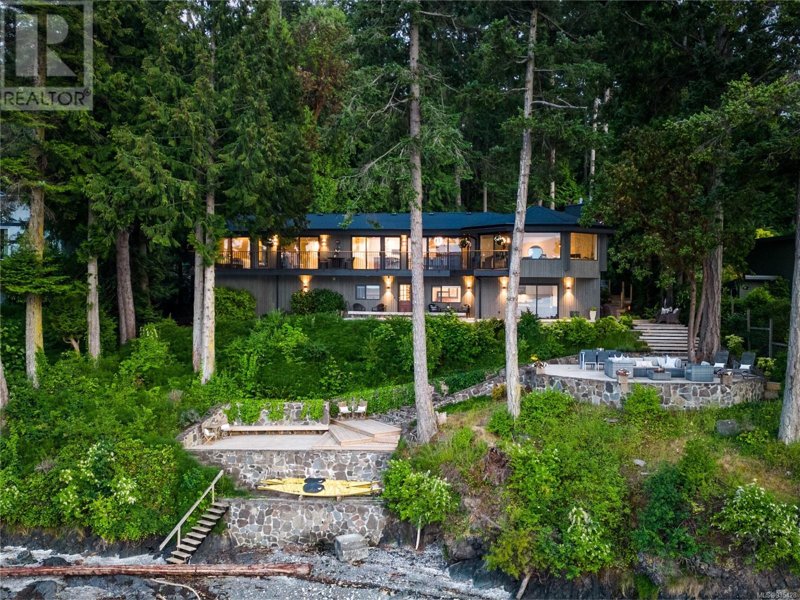 Among the prestigious addresses of Lands End Road, you’ll find a stunning oceanfront property, perfectly balancing modern minimalism with nature’s beauty. Meticulously renovated and designed to embrace its surroundings, this organic modern home offers a truly unmatched aesthetic. From the moment you step inside, it’s as if the boundaries between the interior and exterior dissolve; floor-to-ceiling windows and skylights seamlessly blend the indoor and outdoor. Clean lines, natural elements, and refined luxuries define the home throughout. A contemporary kitchen, designed and built by Jason Good, offers sleek cabinetry, marble slab splashes, and warm wood tones. Fit for a chef, the kitchen is equipped with Wolf and Sub Zero appliances, and includes an induction stove top and steam oven. And for the ultimate upgrade, heated quartz countertops. Unobstructed views surround the open concept kitchen, dining, and living areas, as well as the private office and primary suite. Floor-to-ceiling, wall-to-wall windows and expansive patio doors connect the primary to the outdoors and ocean views. A fireplace and custom walk-in closet and ensuite complete the space, with luxe touches such as a spa-like rain shower, with dual shower heads, body sprays, and heated floors. The main floor offers an additional bedroom and ensuite, along with a media room/bedroom, and additional living space on the lower level, all fully renovated for a cohesive finish, and with the same picturesque views. Enjoy a games room and wet bar, temperature controlled wine room, as well as an additional bedroom, bathroom, and laundry for a total of just over 3800 square feet. Stepping outside, you can immerse yourself in the views from any one of your 3-tiered patios, seamlessly integrated into the landscape, with natural stone, steps to the ocean, and your own private mooring buoy – A modern organic home that effortlessly aligns modern living with the beauty of nature. (id:22211)