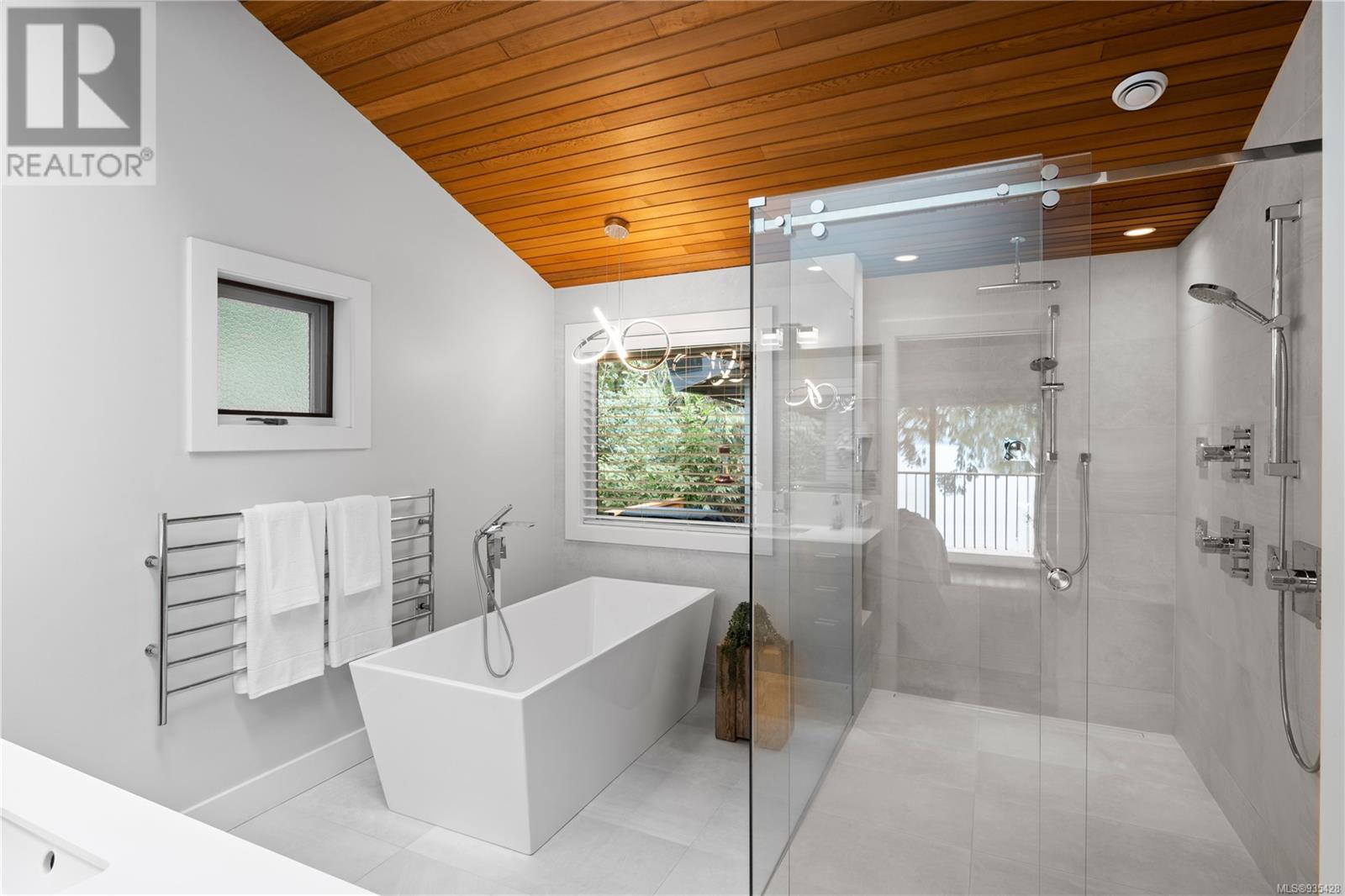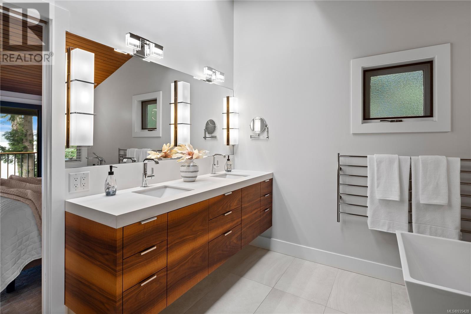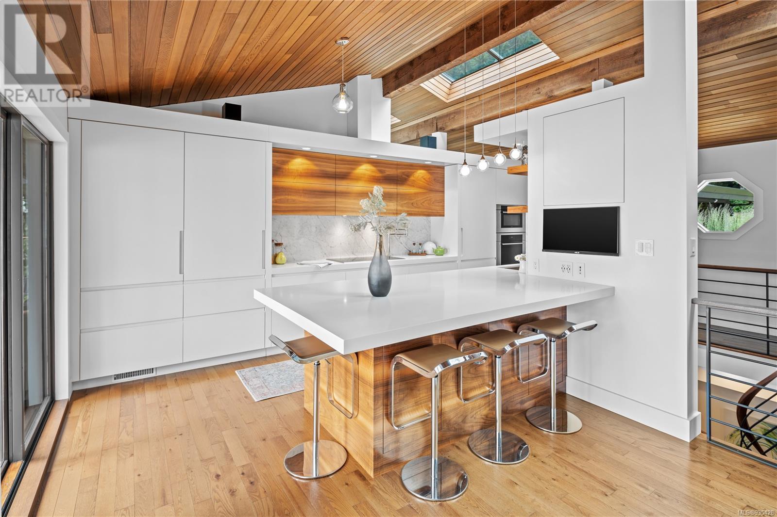 Among the prestigious addresses of Lands End Road, you’ll find a stunning oceanfront property, perfectly balancing modern minimalism with nature’s beauty. Meticulously renovated and designed to embrace its surroundings, this organic modern home offers a truly unmatched aesthetic. From the moment you step inside, it’s as if the boundaries between the interior and exterior dissolve; floor-to-ceiling windows and skylights seamlessly blend the indoor and outdoor. Clean lines, natural elements, and refined luxuries define the home throughout. A contemporary kitchen, designed and built by Jason Good, offers sleek cabinetry, marble slab splashes, and warm wood tones. Fit for a chef, the kitchen is equipped with Wolf and Sub Zero appliances, and includes an induction stove top and steam oven. And for the ultimate upgrade, heated quartz countertops. Unobstructed views surround the open concept kitchen, dining, and living areas, as well as the private office and primary suite. Floor-to-ceiling, wall-to-wall windows and expansive patio doors connect the primary to the outdoors and ocean views. A fireplace and custom walk-in closet and ensuite complete the space, with luxe touches such as a spa-like rain shower, with dual shower heads, body sprays, and heated floors. The main floor offers an additional bedroom and ensuite, along with a media room/bedroom, and additional living space on the lower level, all fully renovated for a cohesive finish, and with the same picturesque views. Enjoy a games room and wet bar, temperature controlled wine room, as well as an additional bedroom, bathroom, and laundry for a total of just over 3800 square feet. Stepping outside, you can immerse yourself in the views from any one of your 3-tiered patios, seamlessly integrated into the landscape, with natural stone, steps to the ocean, and your own private mooring buoy – A modern organic home that effortlessly aligns modern living with the beauty of nature. (id:22211)