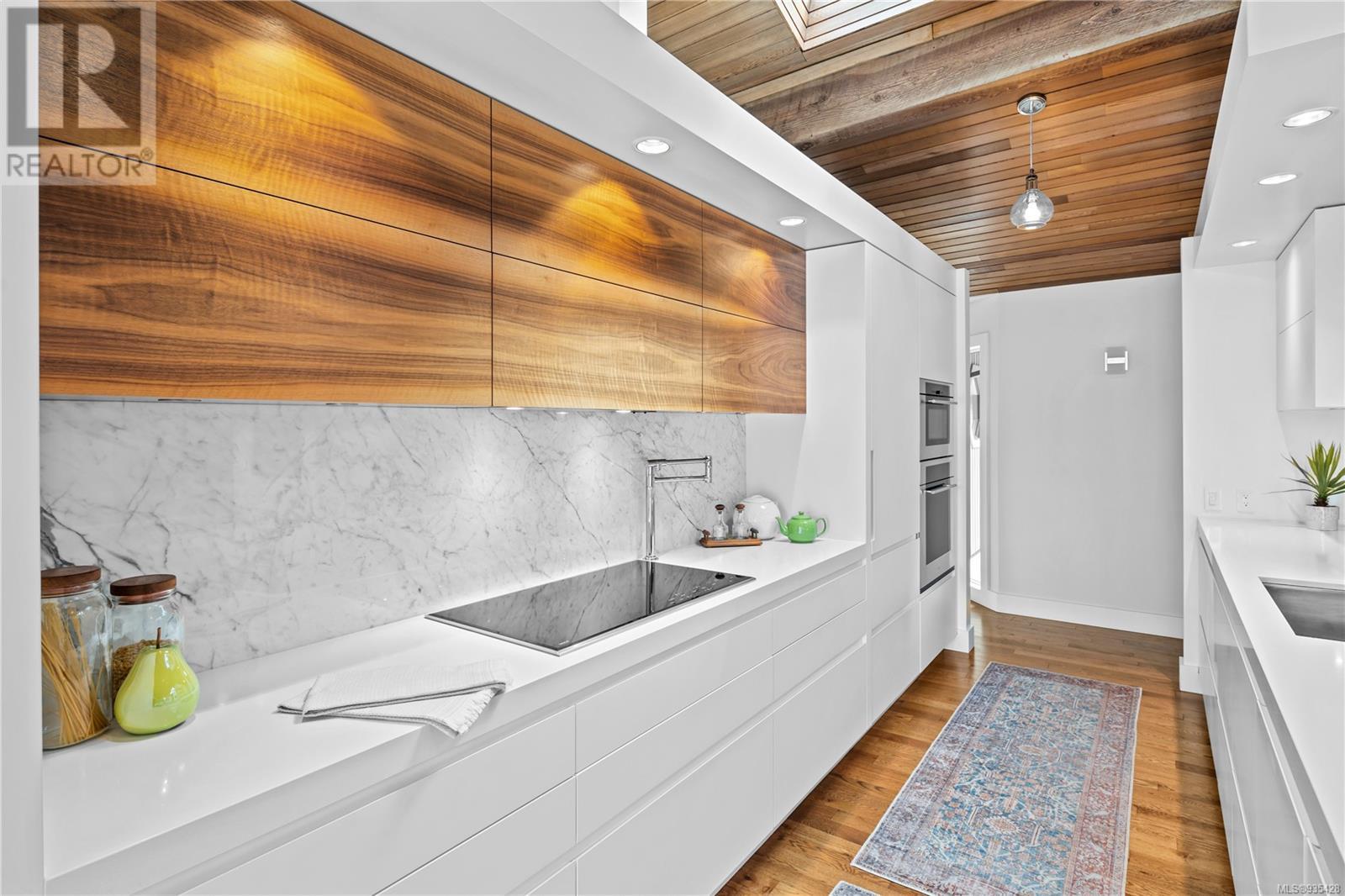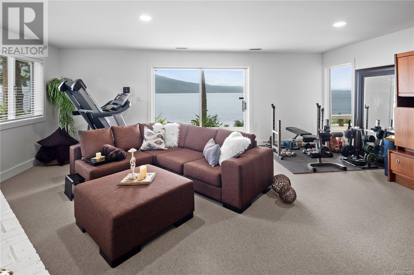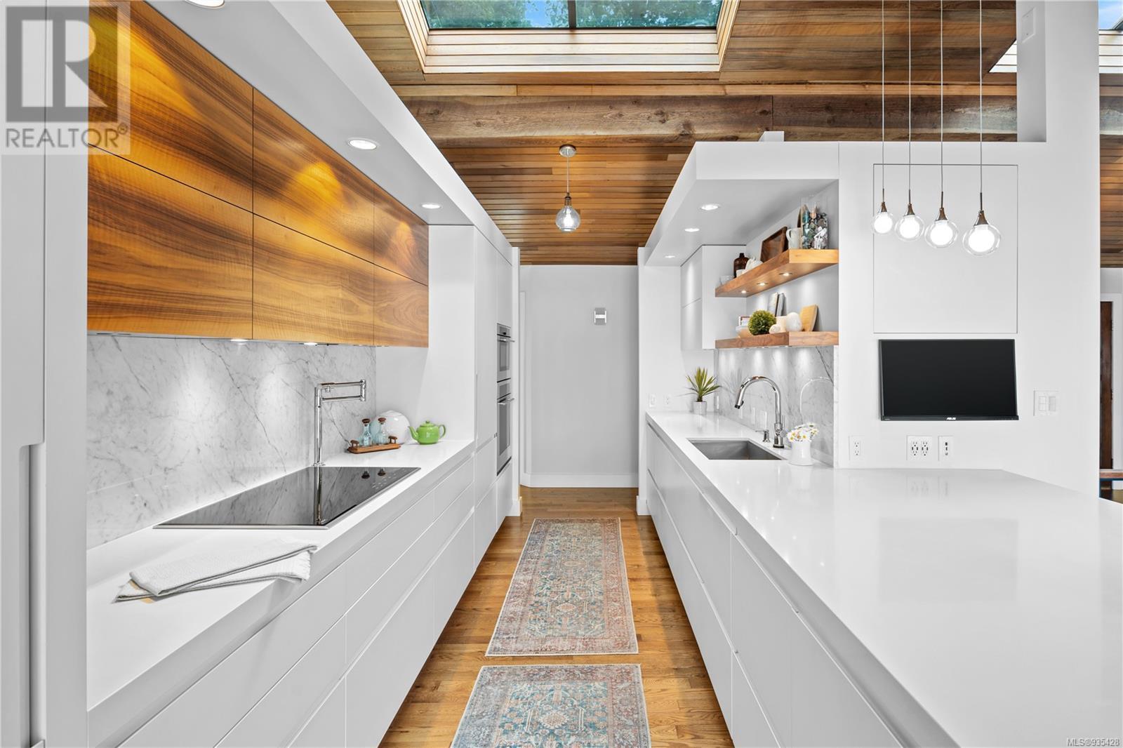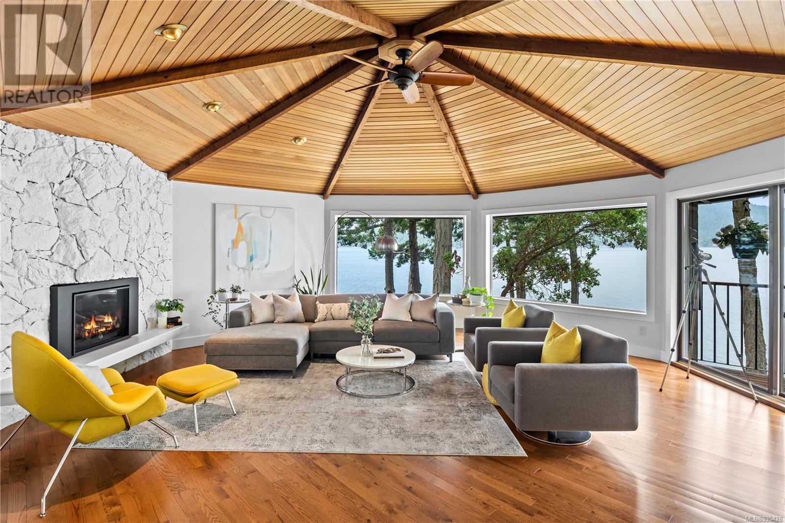 Among the prestigious addresses of Lands End Road, you’ll find a stunning oceanfront property, perfectly balancing modern minimalism with nature’s beauty. Meticulously renovated and designed to embrace its surroundings, this organic modern home offers a truly unmatched aesthetic. From the moment you step inside, it’s as if the boundaries between the interior and exterior dissolve; floor-to-ceiling windows and skylights seamlessly blend the indoor and outdoor. Clean lines, natural elements, and refined luxuries define the home throughout. A contemporary kitchen, designed and built by Jason Good, offers sleek cabinetry, marble slab splashes, and warm wood tones. Fit for a chef, the kitchen is equipped with Wolf and Sub Zero appliances, and includes an induction stove top and steam oven. And for the ultimate upgrade, heated quartz countertops. Unobstructed views surround the open concept kitchen, dining, and living areas, as well as the private office and primary suite. Floor-to-ceiling, wall-to-wall windows and expansive patio doors connect the primary to the outdoors and ocean views. A fireplace and custom walk-in closet and ensuite complete the space, with luxe touches such as a spa-like rain shower, with dual shower heads, body sprays, and heated floors. The main floor offers an additional bedroom and ensuite, along with a media room/bedroom, and additional living space on the lower level, all fully renovated for a cohesive finish, and with the same picturesque views. Enjoy a games room and wet bar, temperature controlled wine room, as well as an additional bedroom, bathroom, and laundry for a total of just over 3800 square feet. Stepping outside, you can immerse yourself in the views from any one of your 3-tiered patios, seamlessly integrated into the landscape, with natural stone, steps to the ocean, and your own private mooring buoy – A modern organic home that effortlessly aligns modern living with the beauty of nature. (id:22211)