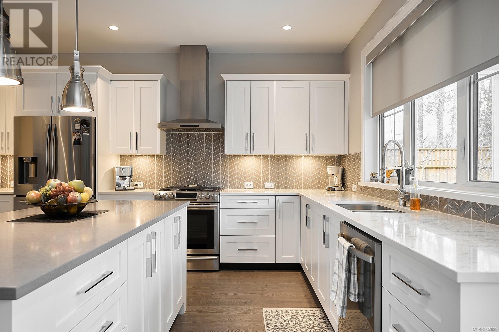 Listed well below assessed value! Stunning single-level rancher with double-car garage. This 1,813 sqft, 3 bed 2 bath home designed by Ryan Hoyt and built by Citta Construction boasts an open concept layout with vaulted ceilings that create a bright and airy feel throughout the home. The modern kitchen includes quartz countertops, detailed custom tiling, and a premium stainless steel appliances package, and it flows seamlessly into the living room, providing the perfect space for entertaining. The primary bedroom features a spa-like ensuite with heated bathroom floors and a spacious walk-in closet. The remaining two bedrooms offer plenty of space for storage. Step outside to a private, fully fenced 1/4 lot with a large covered patio and picturesque landscaping with irrigation. Ideally located in a private cul-de-sac steps away from the ocean and within proximity to the airport, BC ferries, restaurants, shopping, and community events the town of Sidney has to offer. MUST BE SEEN! (id:22211)
