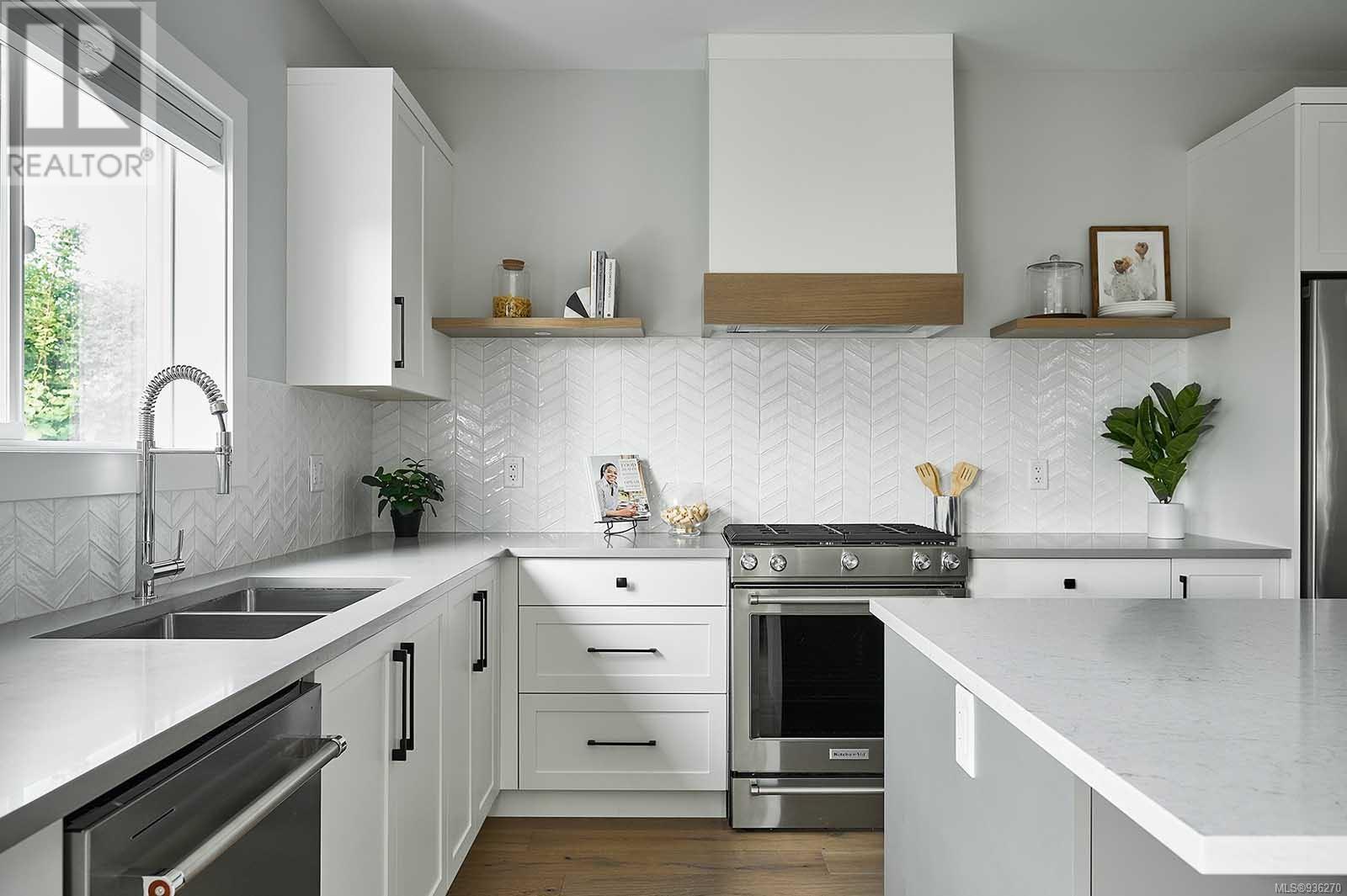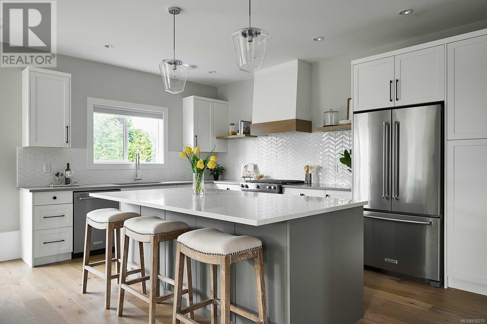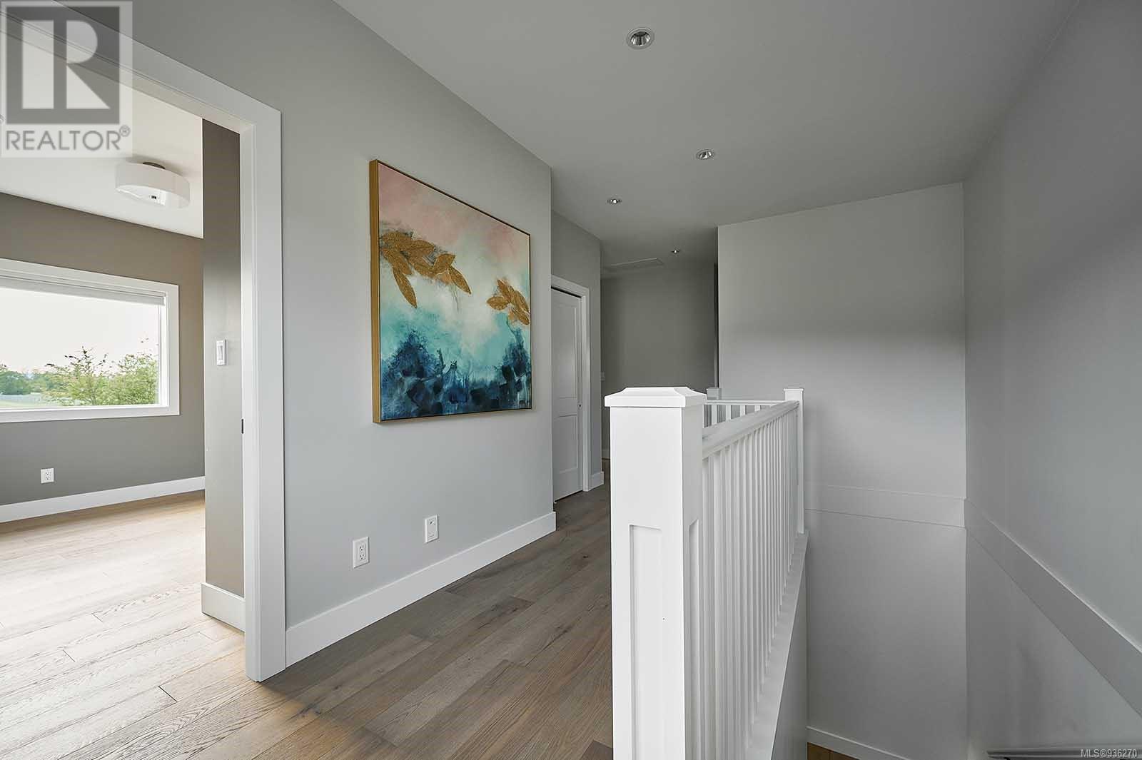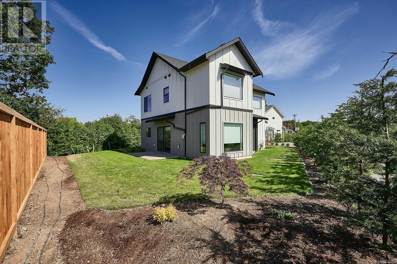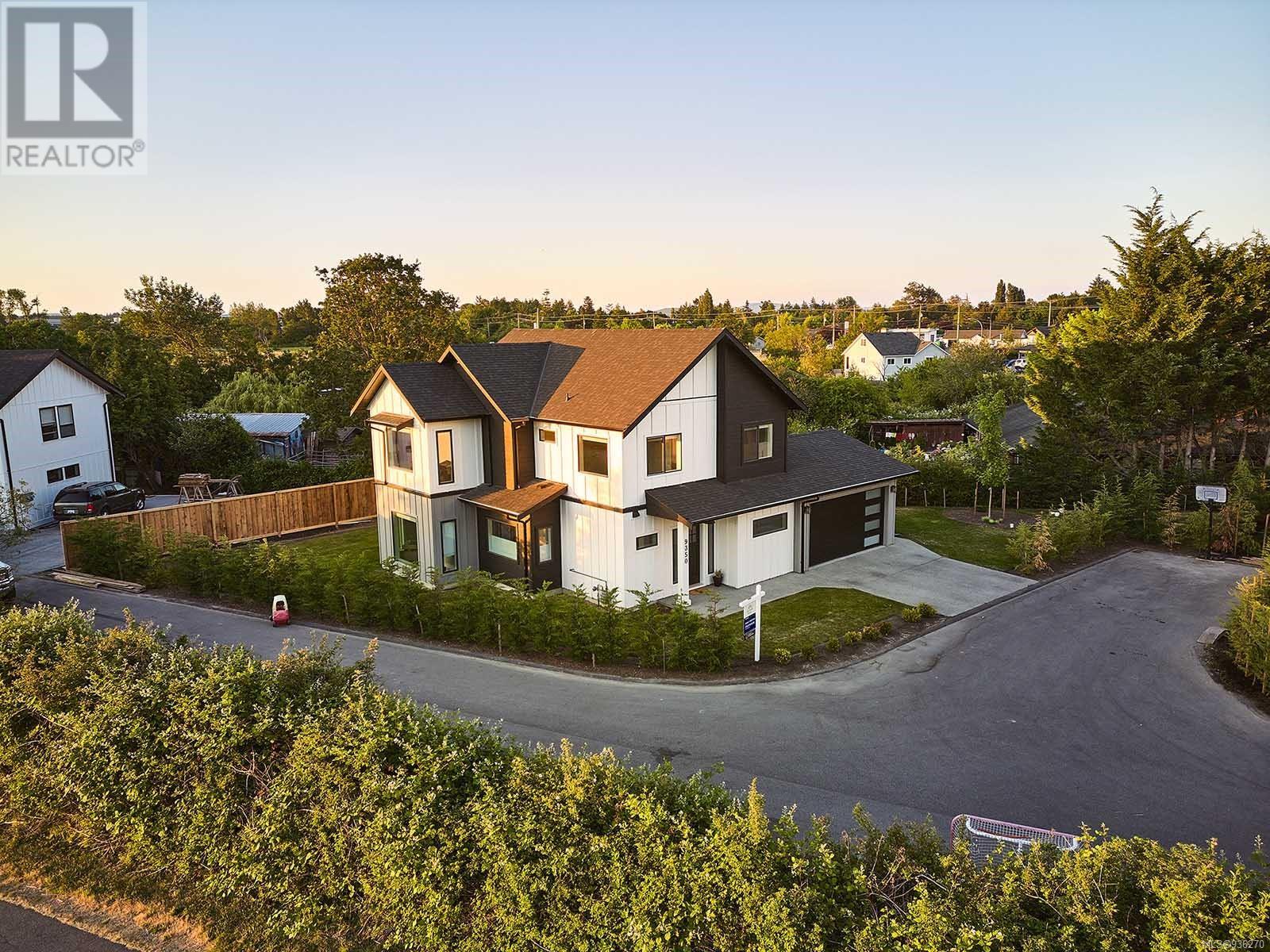Newly constructed 4 bed/3 bath + den home featuring a stunning transitional style & quality finishes throughout. This well-designed home features a timeless aesthetic w/ modern accents that make you feel at home from the moment you enter. Highlights include a functional floor plan w/ a spacious open concept living area, a gorgeous kitchen w/ soft-close shaker cabinetry, quartz counters w/ large island, & sleek appliances, & 3 beds on the upper including a spacious primary w/ walk-in closet & 5-pc ensuite. Step outside to an easy-care yard w/ elegant landscaping, U/G irrigation, & private patio that’s perfect for entertaining. Other highlights include a gas fireplace, heat pump w/ A/C, & double-car garage. Situated on a flat & sunny lot within walking distance to the Roost Farm Bakery, easy access to the airport bike & walk trail, & a short drive to Sidney. This is an excellent opportunity to enjoy the comforts of a new construction home in a highly sought-after community. (id:22211)