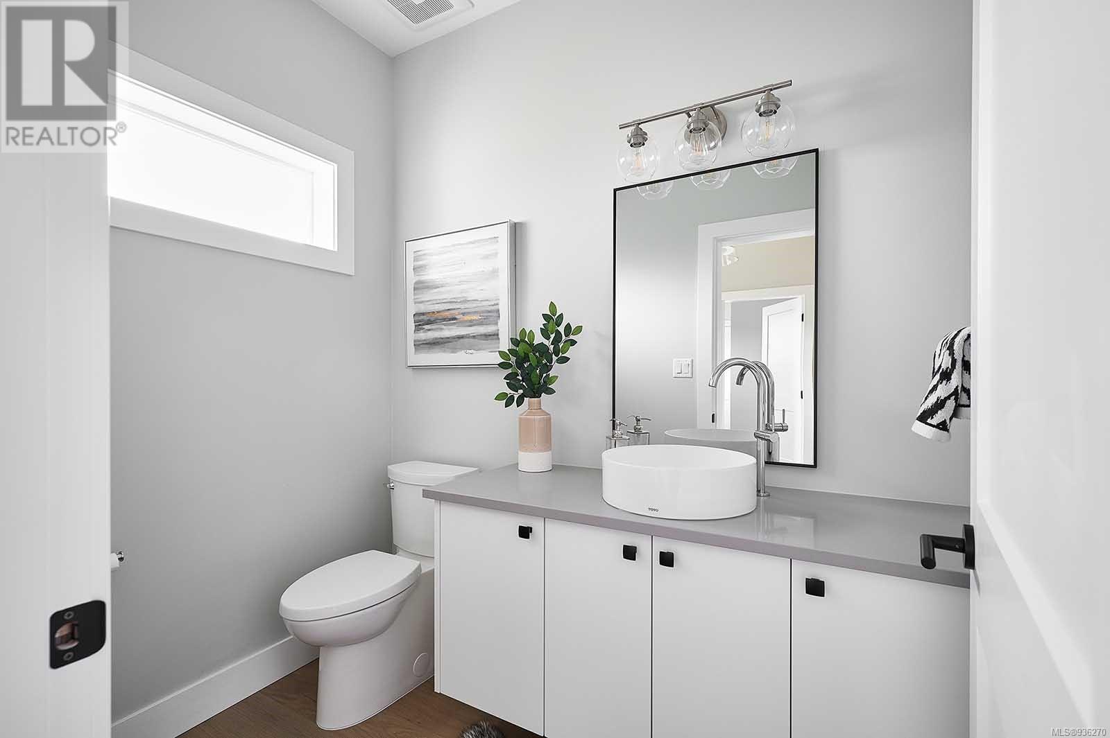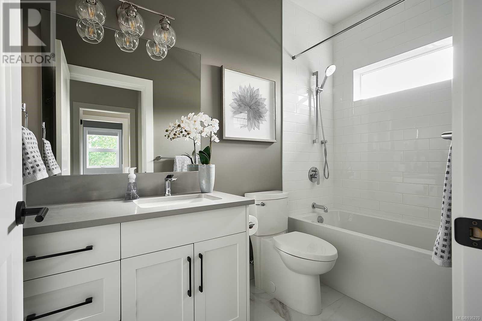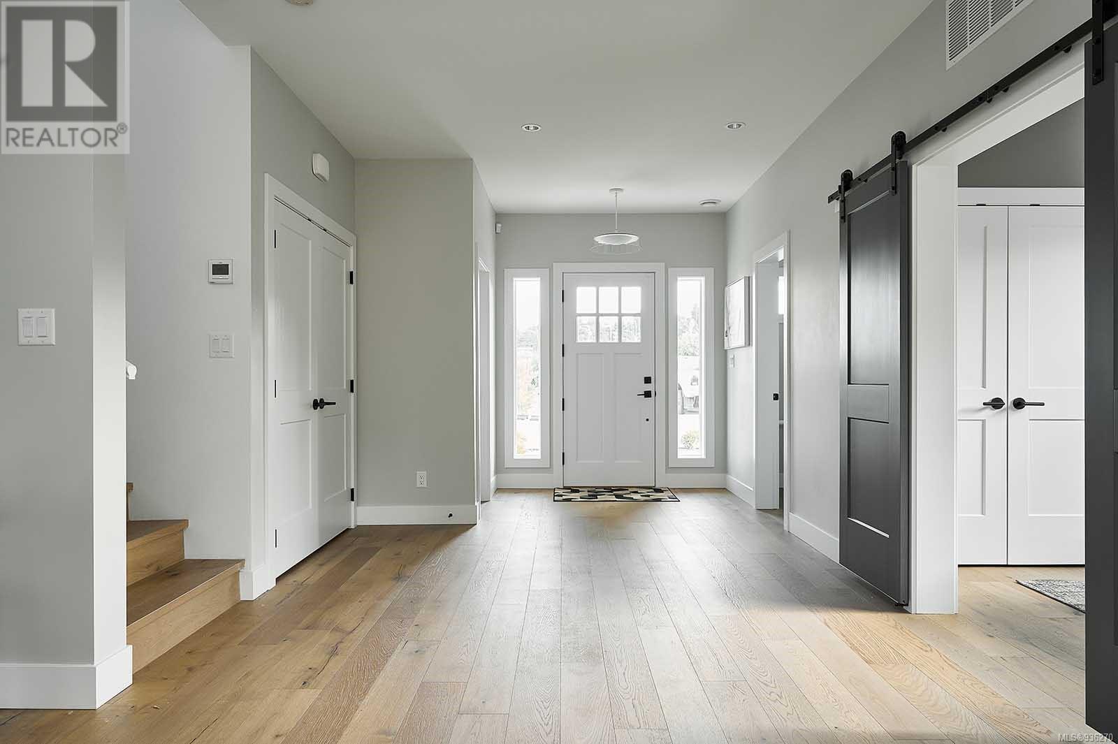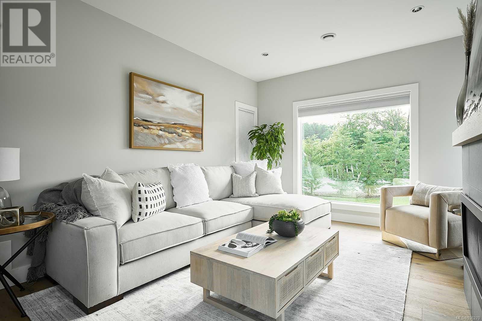 Newly constructed 4 bed/3 bath + den home featuring a stunning transitional style & quality finishes throughout. This well-designed home features a timeless aesthetic w/ modern accents that make you feel at home from the moment you enter. Highlights include a functional floor plan w/ a spacious open concept living area, a gorgeous kitchen w/ soft-close shaker cabinetry, quartz counters w/ large island, & sleek appliances, & 3 beds on the upper including a spacious primary w/ walk-in closet & 5-pc ensuite. Step outside to an easy-care yard w/ elegant landscaping, U/G irrigation, & private patio that’s perfect for entertaining. Other highlights include a gas fireplace, heat pump w/ A/C, & double-car garage. Situated on a flat & sunny lot within walking distance to the Roost Farm Bakery, easy access to the airport bike & walk trail, & a short drive to Sidney. This is an excellent opportunity to enjoy the comforts of a new construction home in a highly sought-after community. (id:22211)