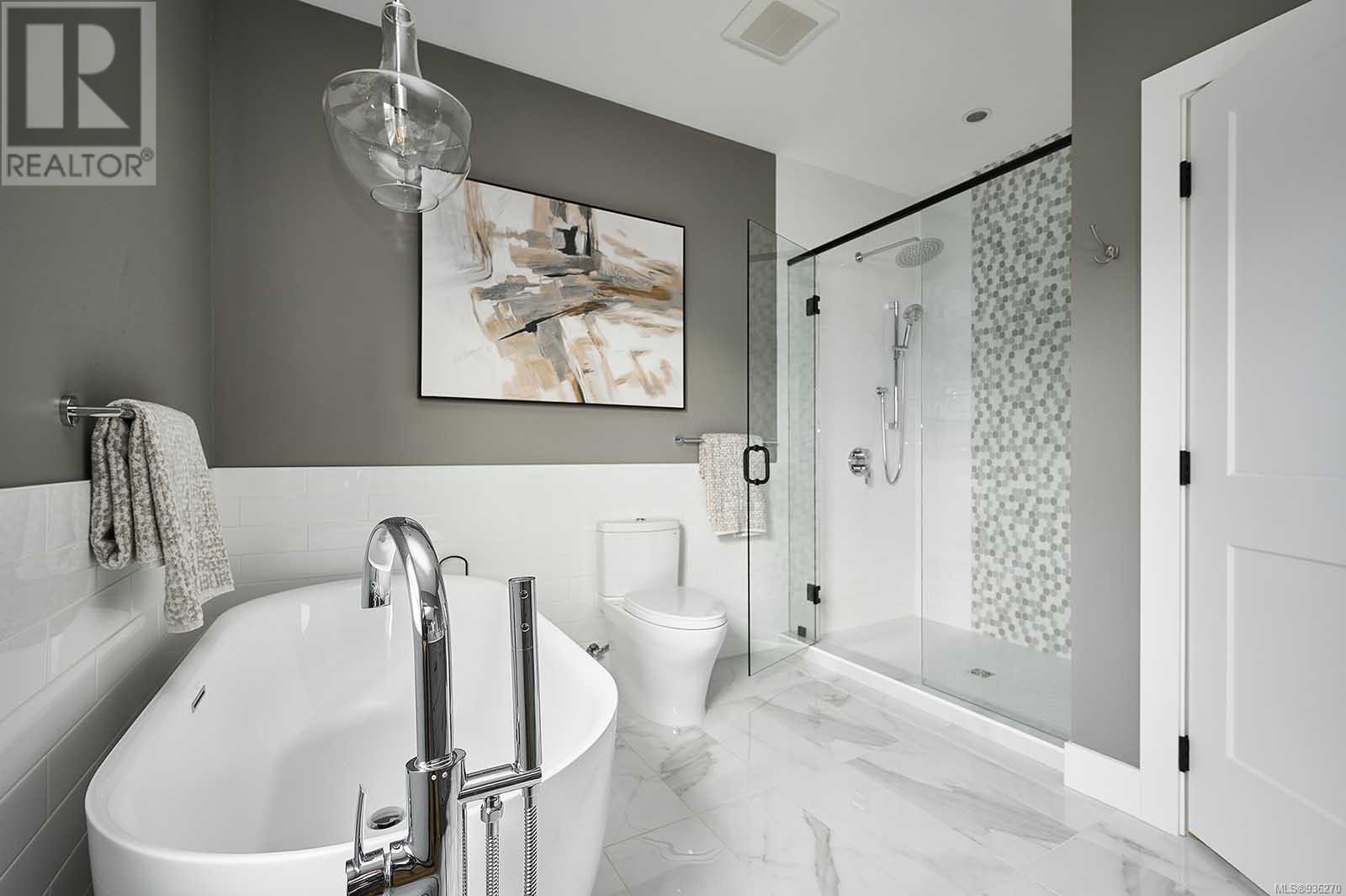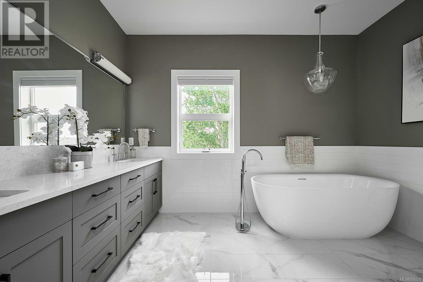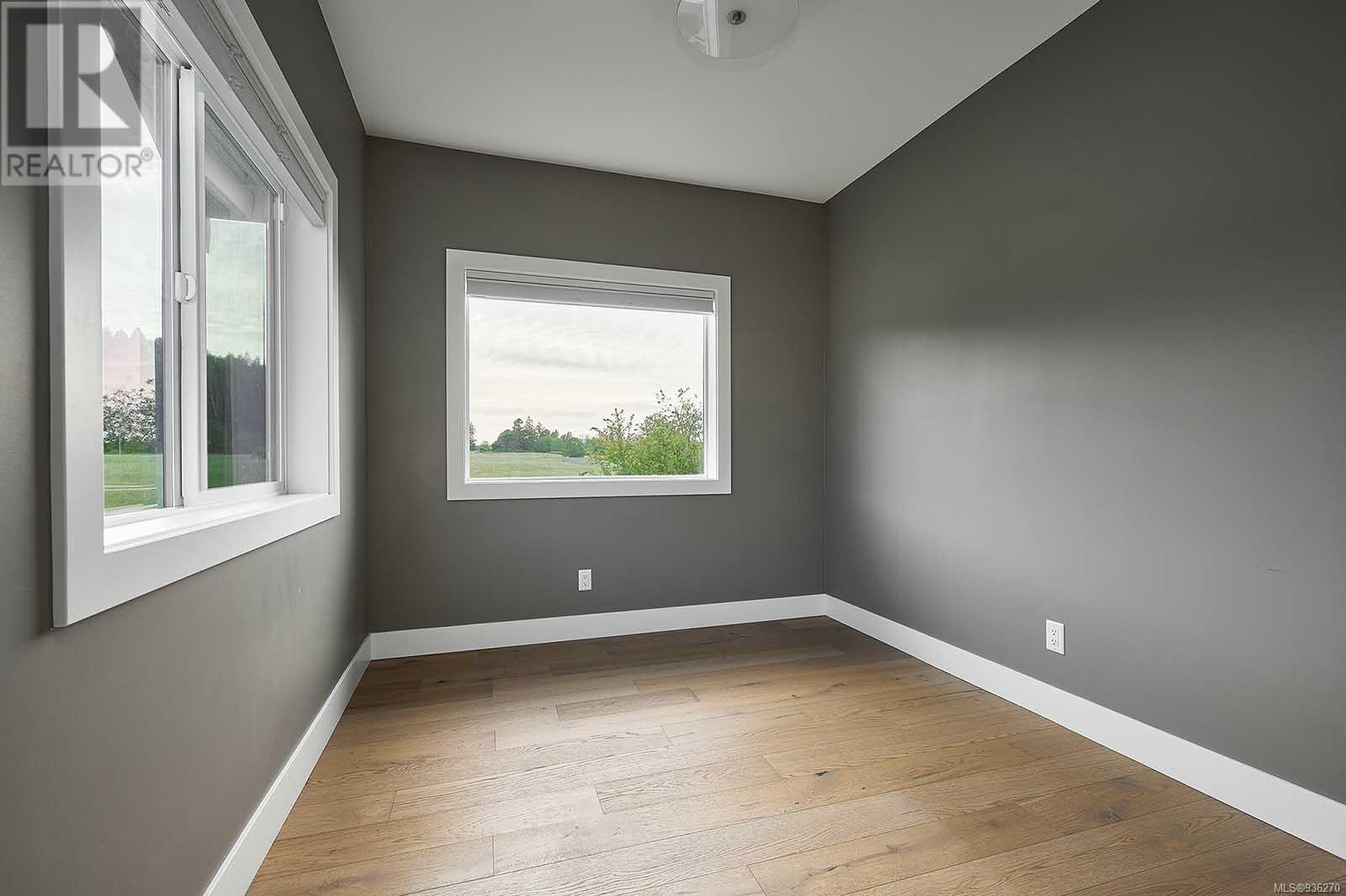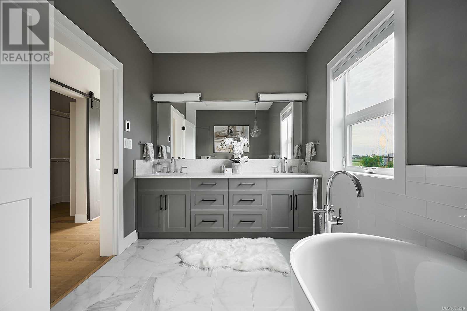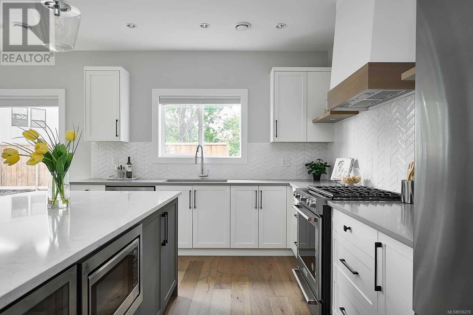 Newly constructed 4 bed/3 bath + den home featuring a stunning transitional style & quality finishes throughout. This well-designed home features a timeless aesthetic w/ modern accents that make you feel at home from the moment you enter. Highlights include a functional floor plan w/ a spacious open concept living area, a gorgeous kitchen w/ soft-close shaker cabinetry, quartz counters w/ large island, & sleek appliances, & 3 beds on the upper including a spacious primary w/ walk-in closet & 5-pc ensuite. Step outside to an easy-care yard w/ elegant landscaping, U/G irrigation, & private patio that’s perfect for entertaining. Other highlights include a gas fireplace, heat pump w/ A/C, & double-car garage. Situated on a flat & sunny lot within walking distance to the Roost Farm Bakery, easy access to the airport bike & walk trail, & a short drive to Sidney. This is an excellent opportunity to enjoy the comforts of a new construction home in a highly sought-after community. (id:22211)