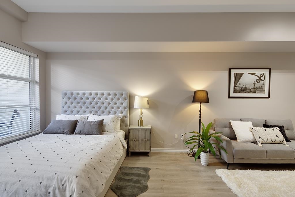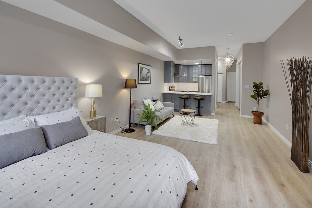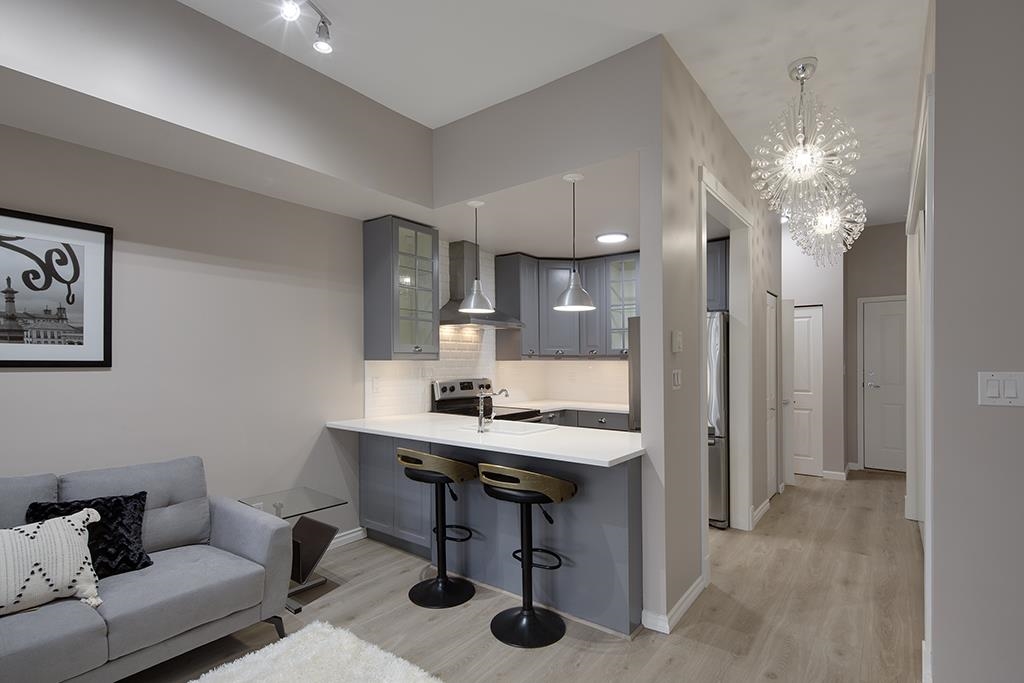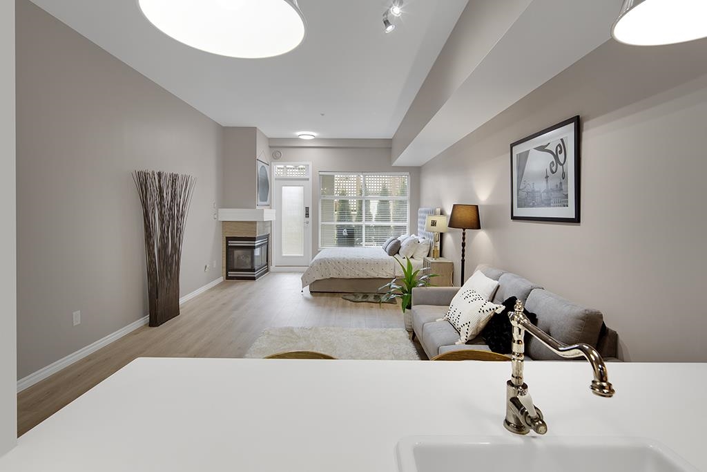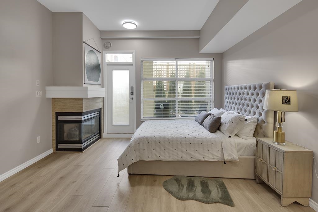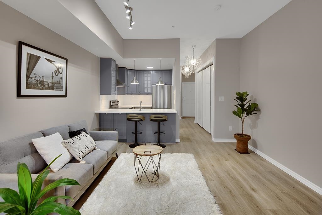 Welcome to this beautifully renovated & painted Lower Lonsdale studio featuring a private and secure West garden patio. This exceptional live/work loft offers 10' ceilings, a modern kitchen, and a cozy gas fireplace. New range oven, dishwasher & washer/dryer. Located on the quiet side of Esplanade and Lonsdale, the unit also includes a super-sized underground parking stall with lane access and a storage locker. The Tradewinds Building provides additional amenities such as a private gym and a charming courtyard. Enjoy easy walking access to the New Tap & Barrel, The Quay Markets, and the vibrant waterfront hub of Lower Lonsdale. Commuting to Downtown is convenient with the nearby Seabus, and transportation across North Van is easily accessible.