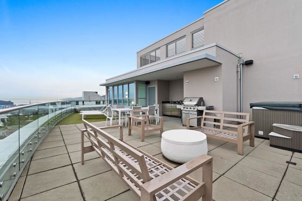 LUXURY PENTHOUSE like you’ve never seen before. Imagine living above it all with unobstructed panoramic city, ocean and mountain views out your 10FT floor to ceiling windows! This spectacular home offers 1,621sf PLUS over 1,400sf of patio and private rooftop terrace (TOTAL 3,021 SF) which includes hot tub, outdoor kitchen w/ BBQ, fireplace & grass area. Top of the line features include gourmet kitchen w/Wolf appliances & Sub Zero fridge, wine fridge, premium wide-plank flooring, stone countertops, A/C, home entertainment system & floating staircase, . Spacious Master bedroom offers a 5-piece ensuite & walk-in-closet and black out blinds. Private 3 car garage & storage included. This will take your breath away! Book your private appointment today. OPEN HOUSE - Sunday, March 24th, 2-4pm