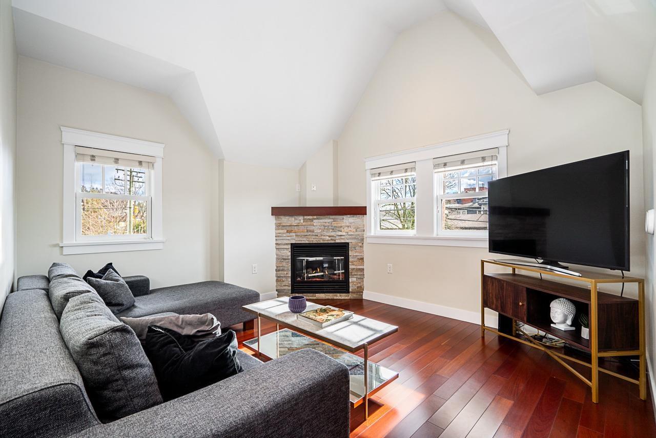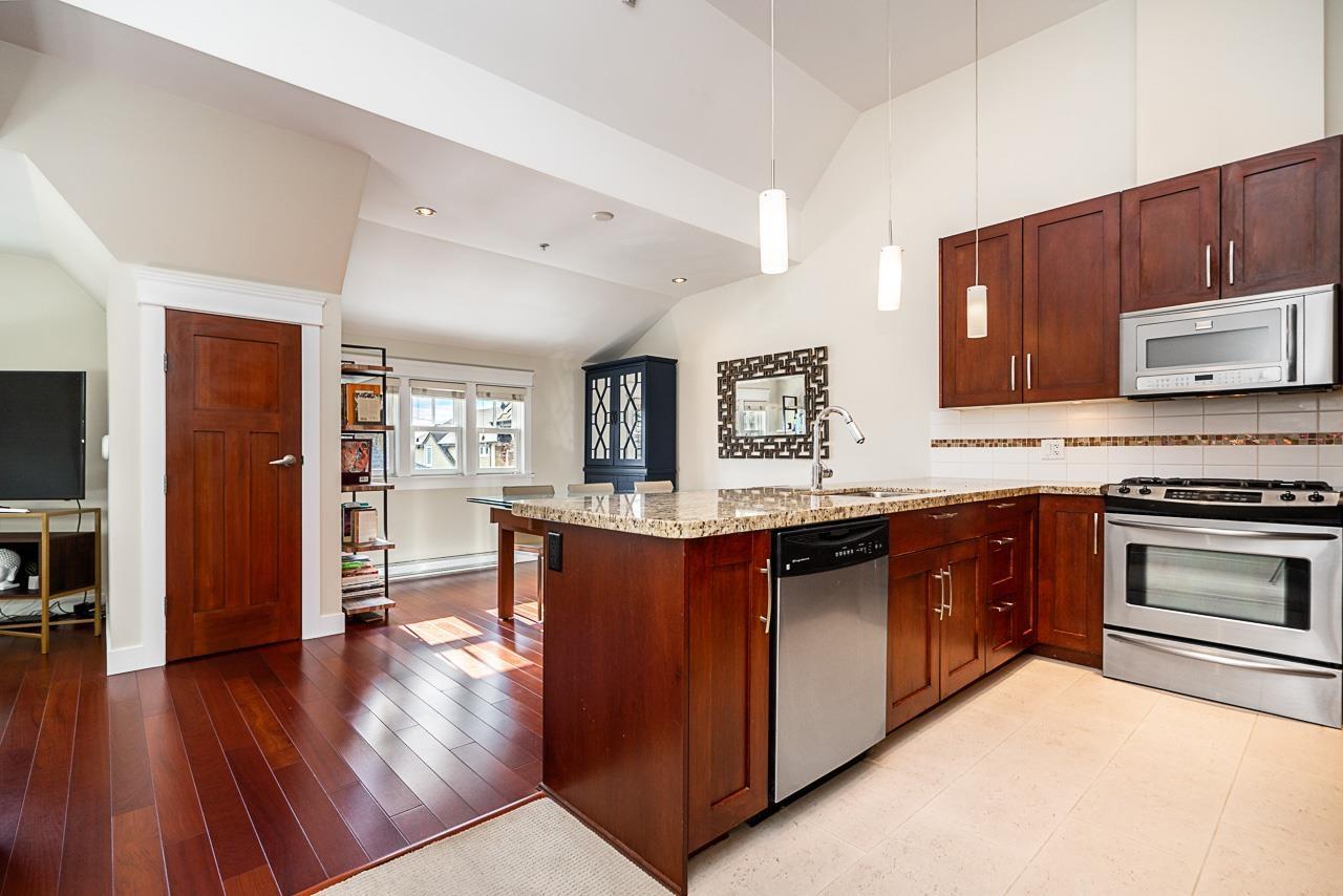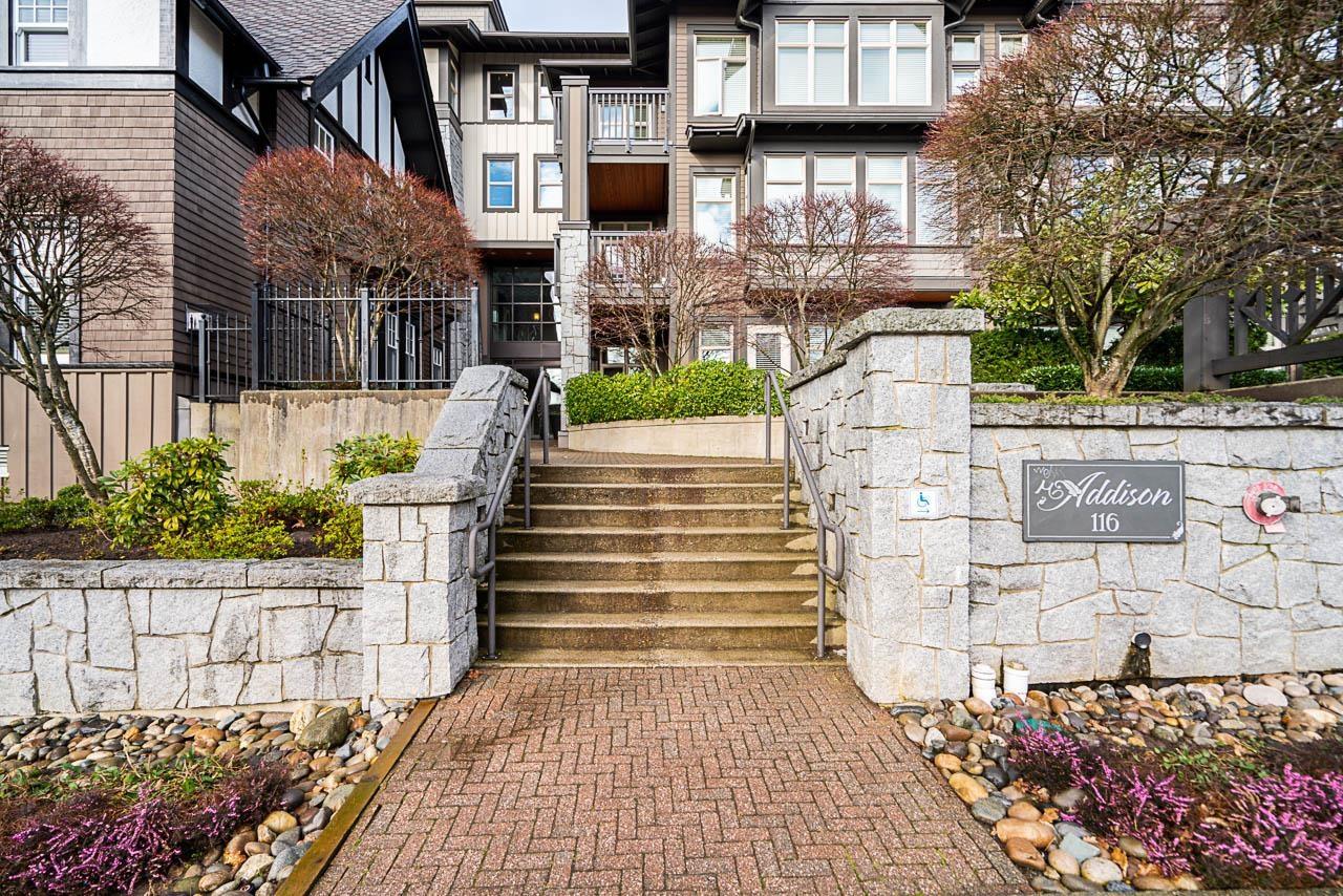 The Addison is a premier 29-unit complex in Central Lonsdale, with a stunning heritage exterior and a welcoming interior. It's conveniently located near central Lonsdale just a few steps from Lonsdale Quay, recreation facilities, local shops, local restaurants, Whole Foods, Fitness World, Highway 1, and Grouse Mountain. The south-facing corner unit offers a spacious living space of 828 Sq. Ft. with vaulted 12 Ft. ceilings that give it a bigger feeling, fully secured underground parking, energy-efficient wood windows "energy star", and Engineered Hardwood Flooring. The kitchen features stainless steel appliances and beautiful hardwood finishes. Additional features include floor heating in the bathroom with double sinks, hardwood doors, and a new water tank installed in 2020. (id:22211)