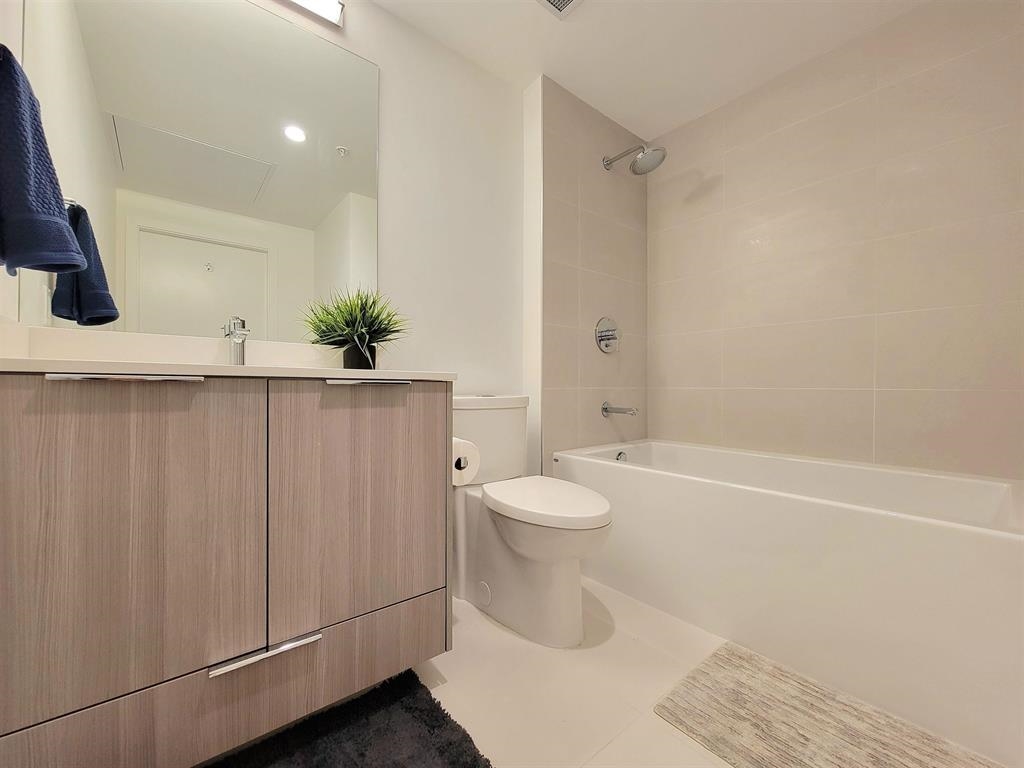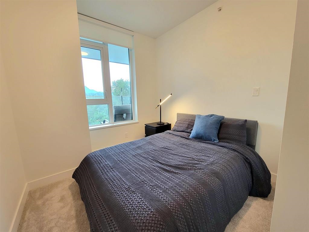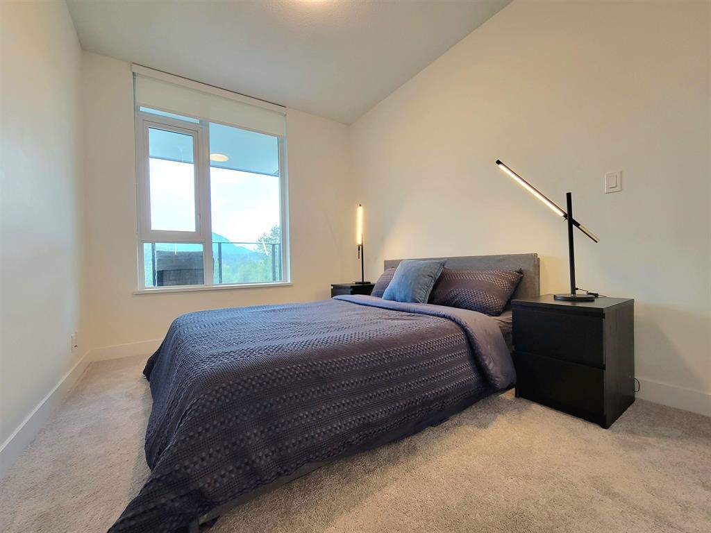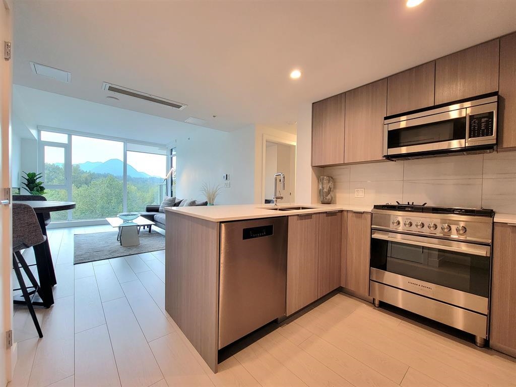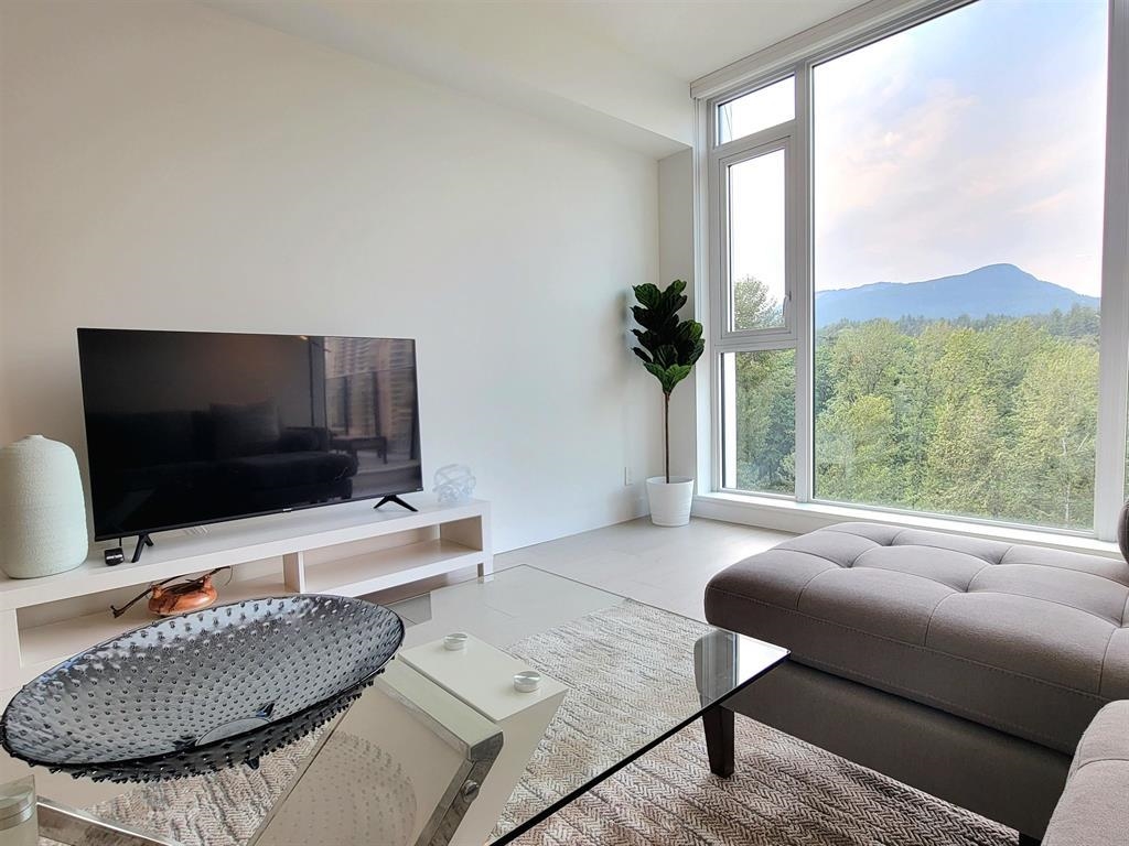 Welcome to Hunter at Lynn Creek! Step into luxury living with this captivating 2 beds, 2 baths upper unit condo where stunning design meets breathtaking natural beauty. It boasts panoramic view of the majestic North Shore mountains. Key features includes bright and spacious open floorplan bathed in natural light, high end stainless steel Fisher Paykel appliances, quartz countertops, wide plank flooring, European-inspired cabinetry, automated lighting and air conditioning, massive balcony facing the mountainscape. Primary bedroom features walk-in closet and spa-like ensuite. Premier amenities includes club house, exercise center, playground, sauna/steam room, social lounge, and wellness center. Centrally located! Newly constructed home comes with a 2-5-10 warranty, 1 parking, 1 storage!