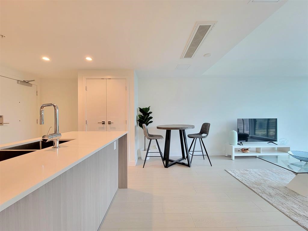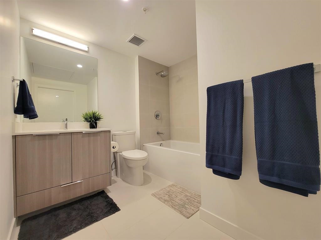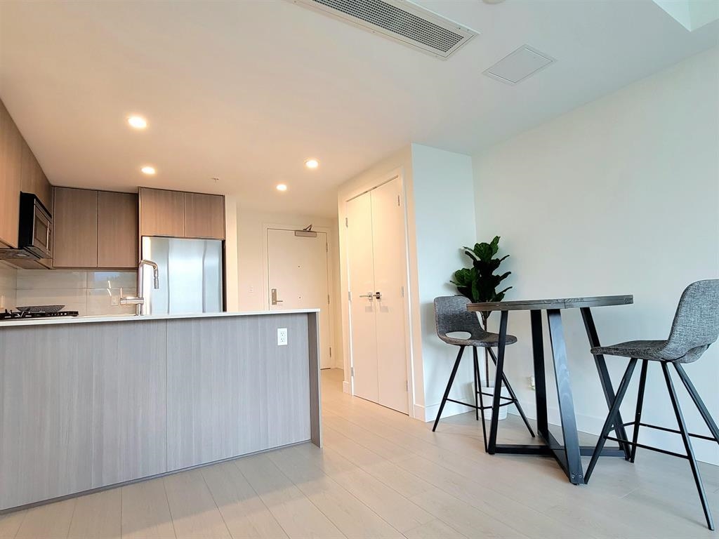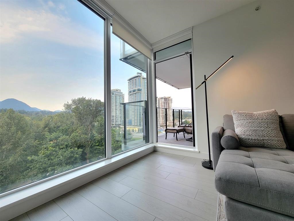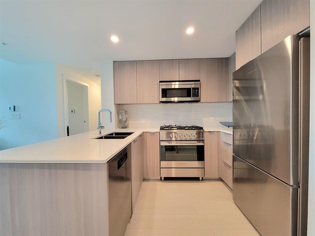 Welcome to Hunter at Lynn Creek! Step into luxury living with this captivating 2 beds, 2 baths upper unit condo where stunning design meets breathtaking natural beauty. It boasts panoramic view of the majestic North Shore mountains. Key features includes bright and spacious open floorplan bathed in natural light, high end stainless steel Fisher Paykel appliances, quartz countertops, wide plank flooring, European-inspired cabinetry, automated lighting and air conditioning, massive balcony facing the mountainscape. Primary bedroom features walk-in closet and spa-like ensuite. Premier amenities includes club house, exercise center, playground, sauna/steam room, social lounge, and wellness center. Centrally located! Newly constructed home comes with a 2-5-10 warranty, 1 parking, 1 storage!