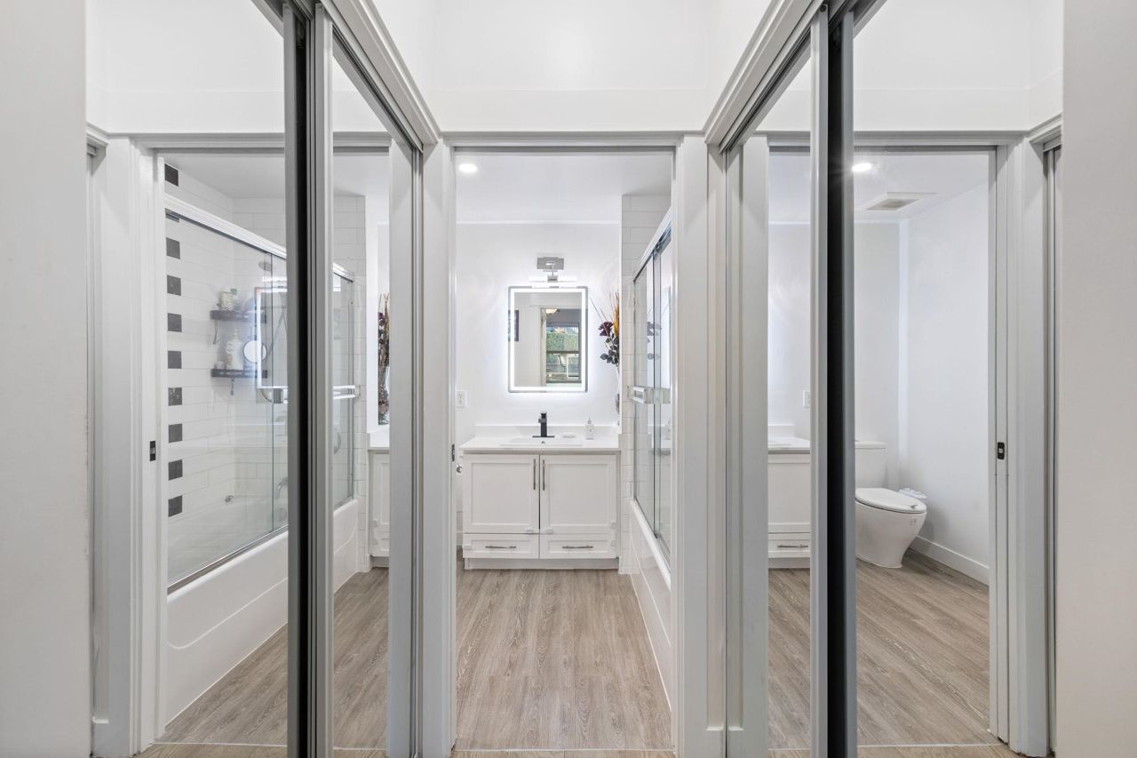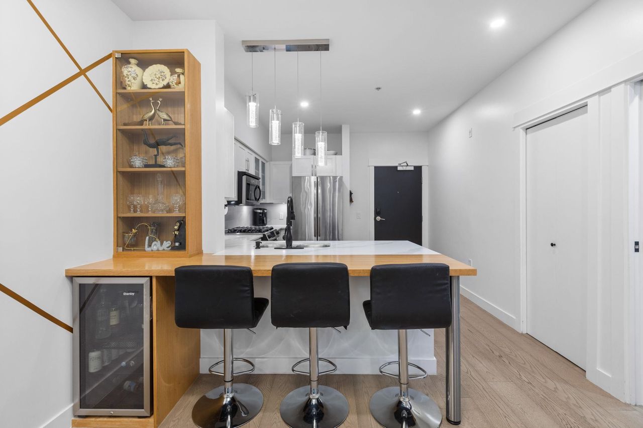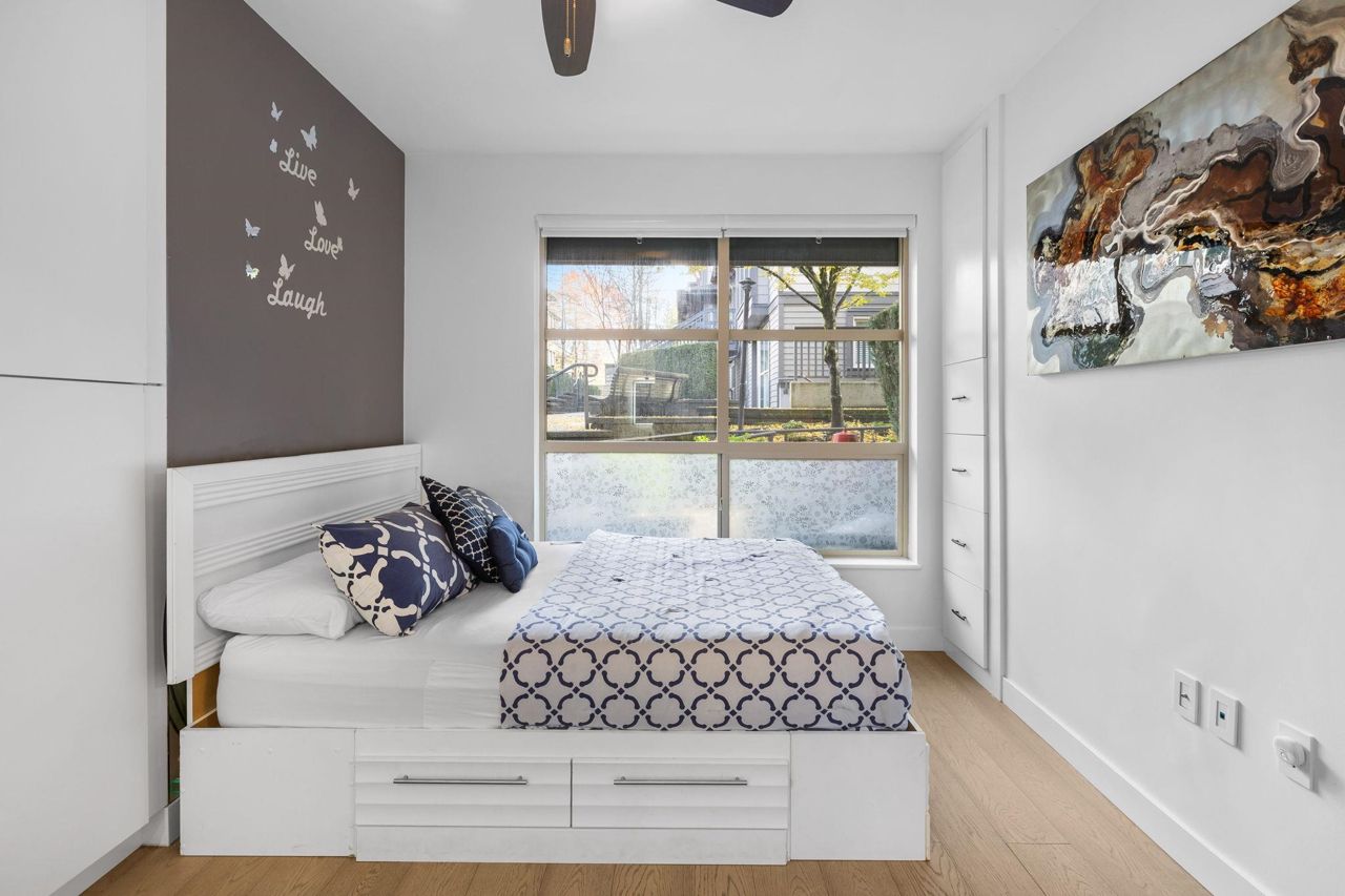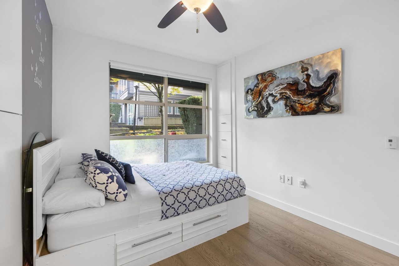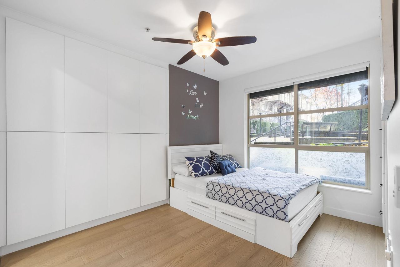 Spacious 660 sqft. open-concept design, exquisitely remodeled ground-floor 1 bedroom apartment situated in the Avondale Complex. The chef's kitchen boasts ample cabinet room, stainless steel appliances, a convenient bar fridge, en-suite washer and dryer setup, along with added closet space for increased storage capacity. Additional features include a cozy fireplace, radiant floor heating throughout the unit, an independent storage area, a bicycle room and secure underground parking. A brief stroll takes you to Lonsdale for an array of splendid shopping and dining options. Numerous parks are in close proximity as well as Harry Jerome Community Recreation Centre, and the Lions Gate hospital. Playground is located on the property.