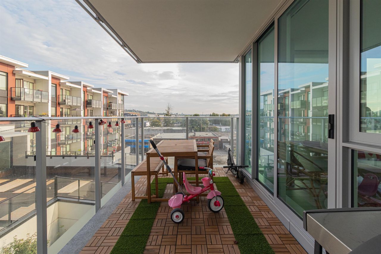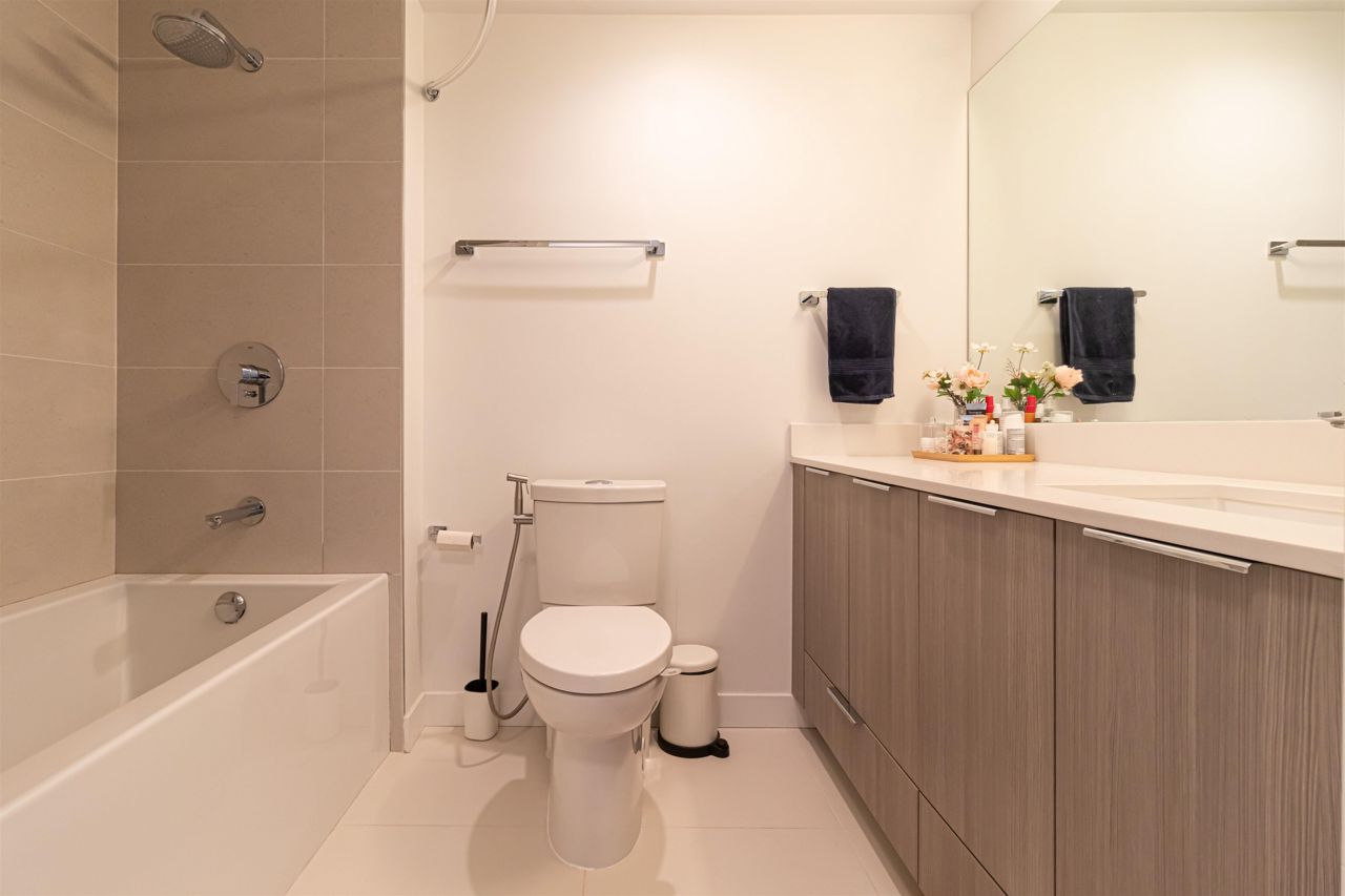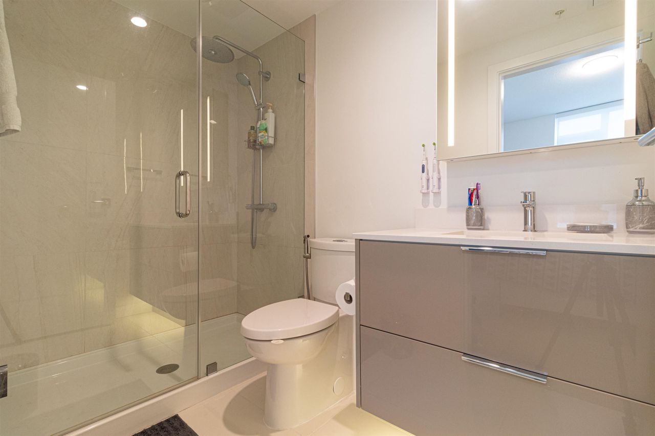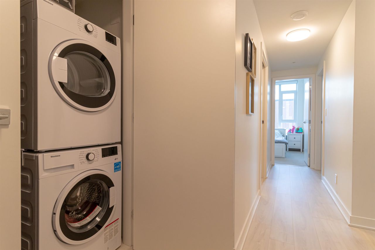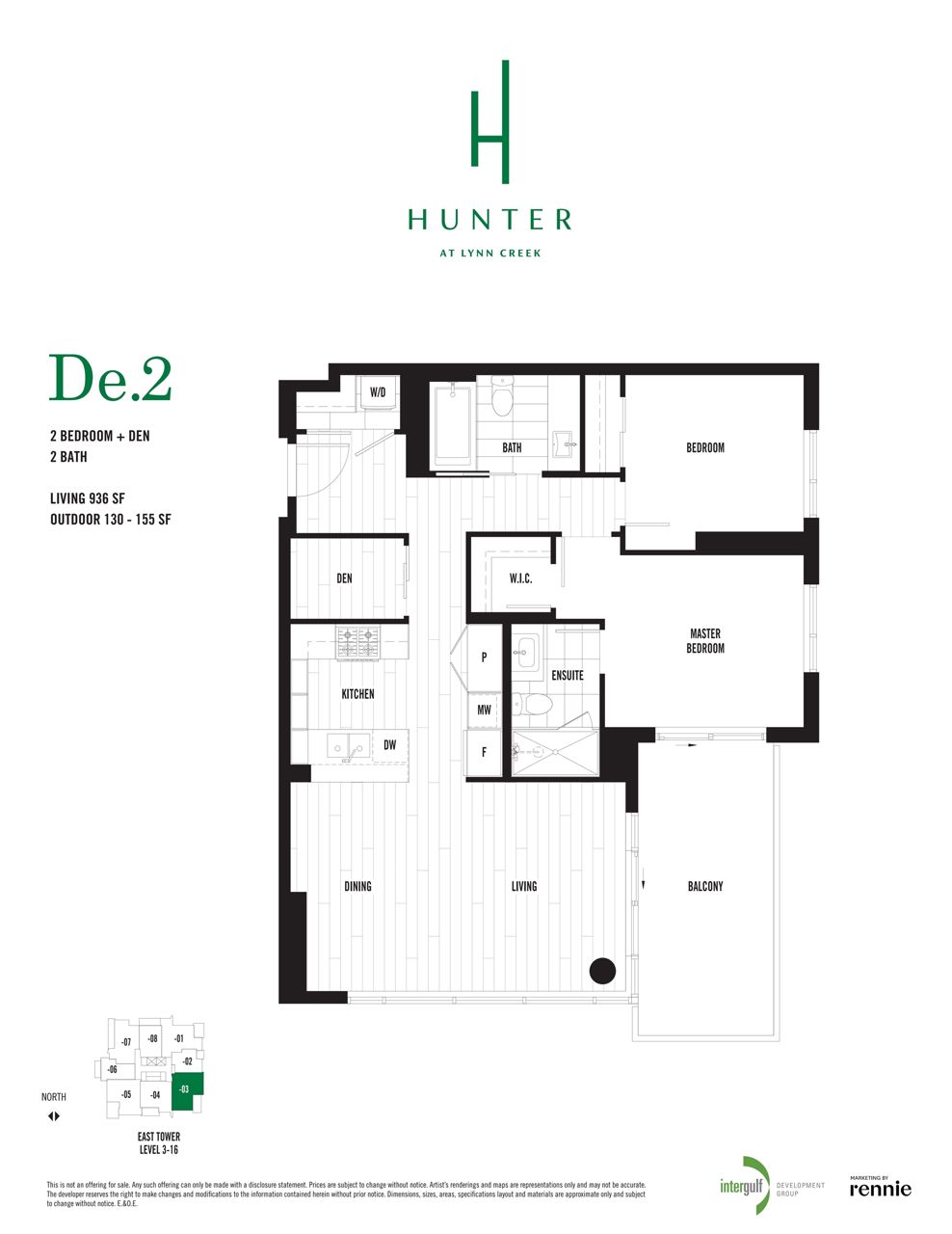 Welcome to Hunter at Lynn Creek by award-winning Intergulf, This bright, southeast corner unit with beautiful views of the water, city, and downtown, offers a spacious 936 sq ft 2 bed + den home. The primary bedroom has its own walk-in closet & ensuite bath.Open concept space includes modern wide plank flooring, quartz countertops, porcelain tile, and gourmet kitchen with stainless steel appliances & European-inspired cabinetry. Enjoy the courtyard, gym, sauna/steam room & lounge. Pedestrian bridge to connect to Bridgman Park, Spirit Trail & shops. New Community Centre next door. Short walk to Phibbs Exchange transit