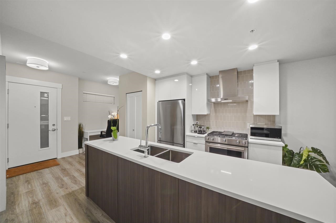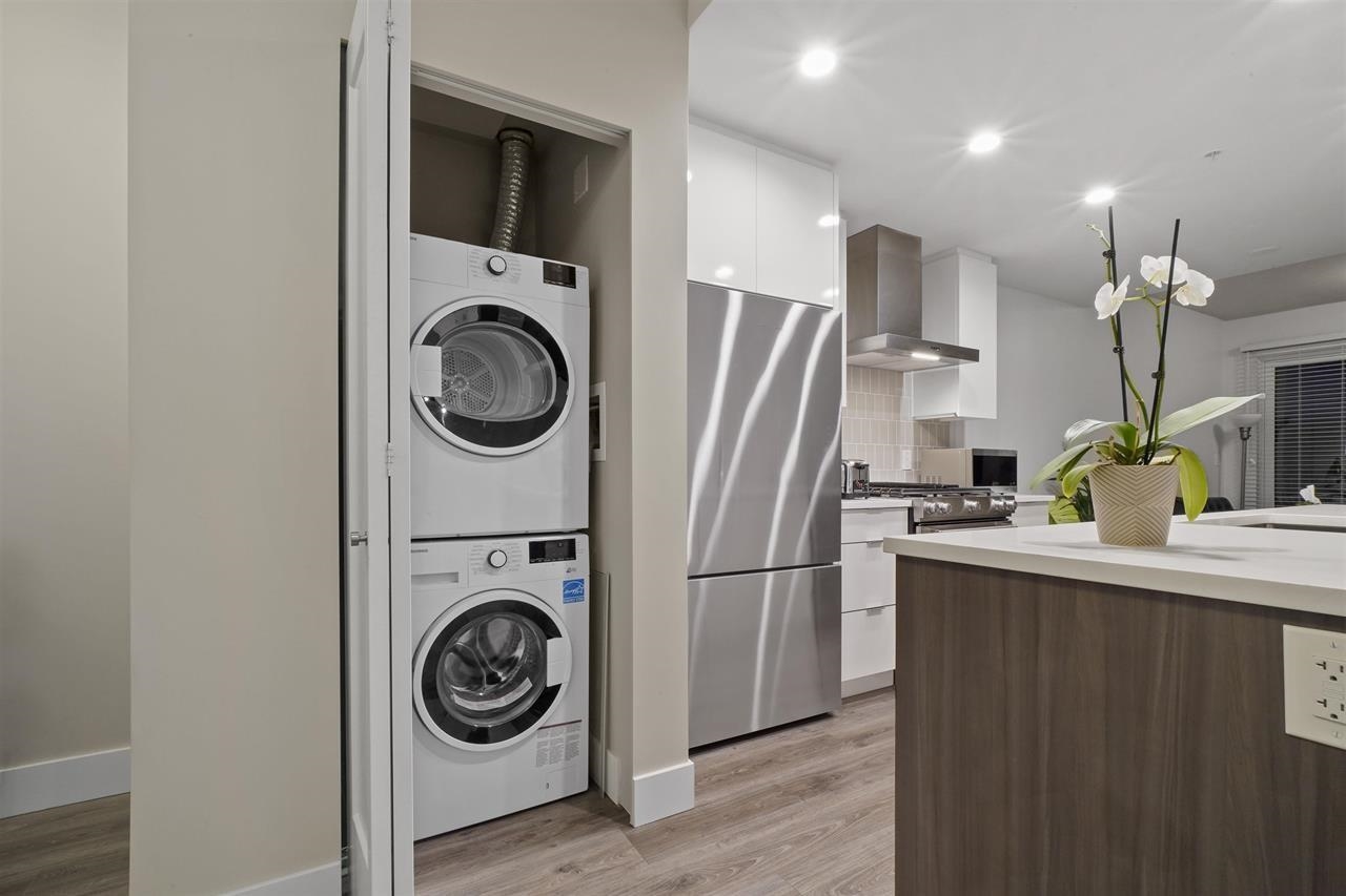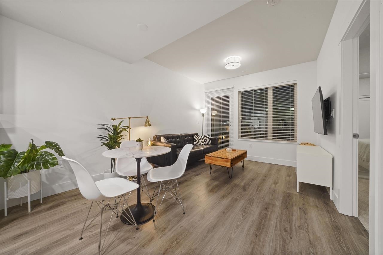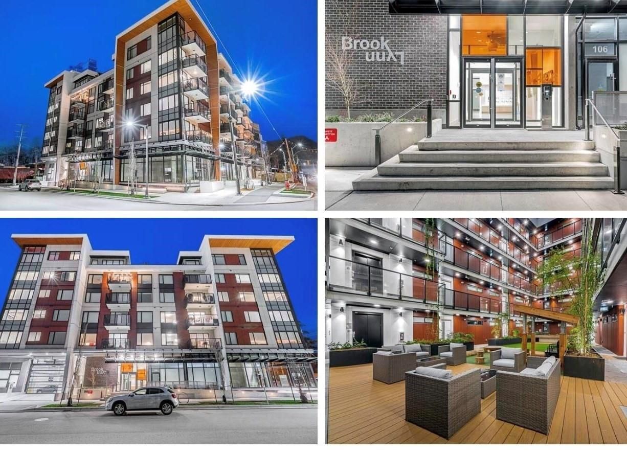 Welcome to Brooklynn, a boutique development of 63 homes that pair contemporary style with comfort and functionality. This one bed/one bath 570sf home features high ceilings, generous outdoor living space, open-concept kitchen w/gas stove, living and dining area. The oak-grain laminate floors, sleek quart countertops, and premium stainless steel appliance package combine elegance and performance for daily use. The front entrance opens into the central courtyard/ atrium, allowing continuous sunlight and fresh air into the unit. Ideal for first-time buyers or investors as Lower-Lynn is the hot new area with close access to shopping, transit, breweries and Rec Centre. The unit comes with 1 Parking & Storage. 2/5/10 warranty. Pets & Rentals welcome.