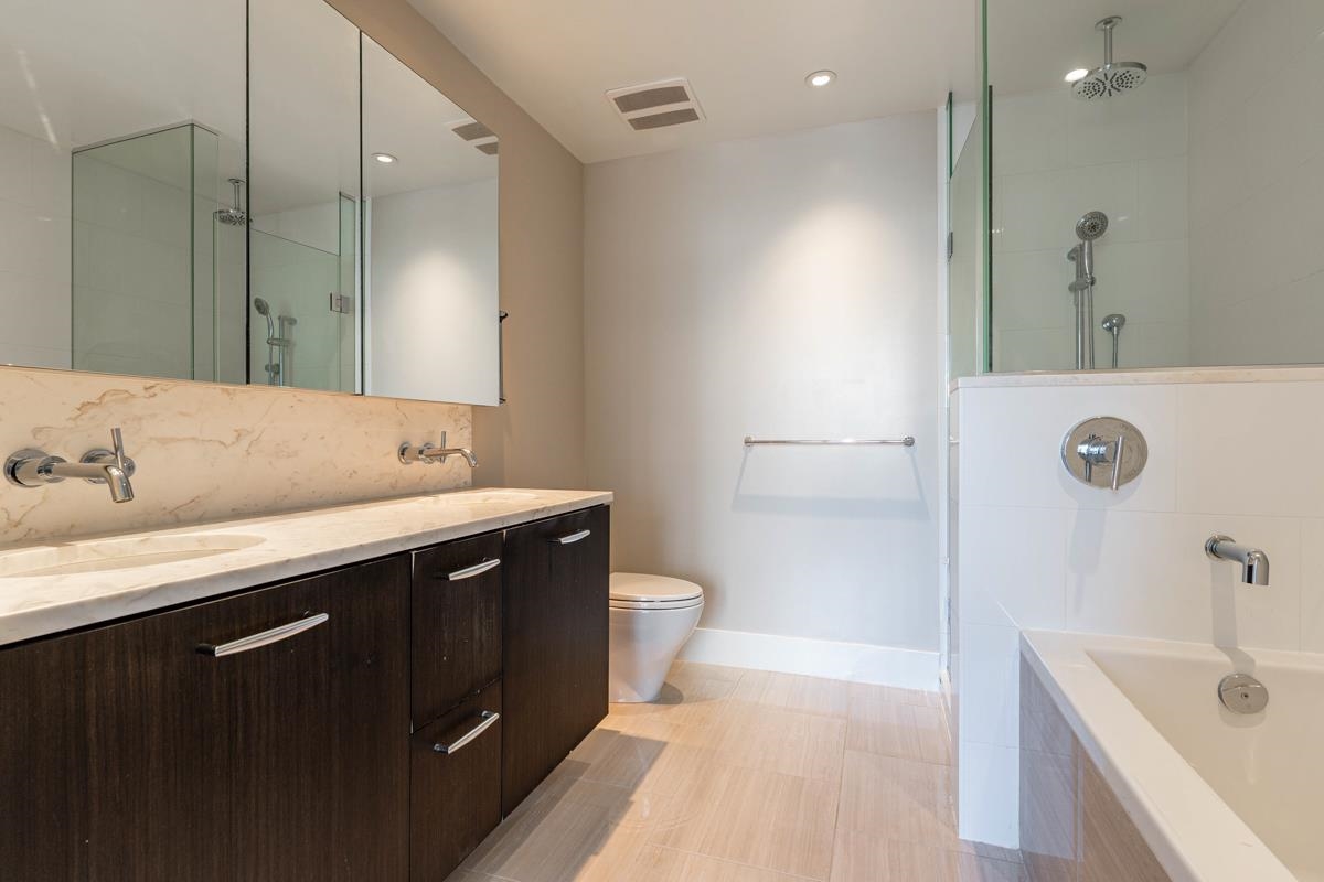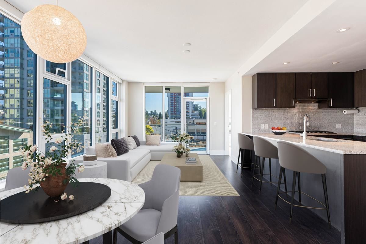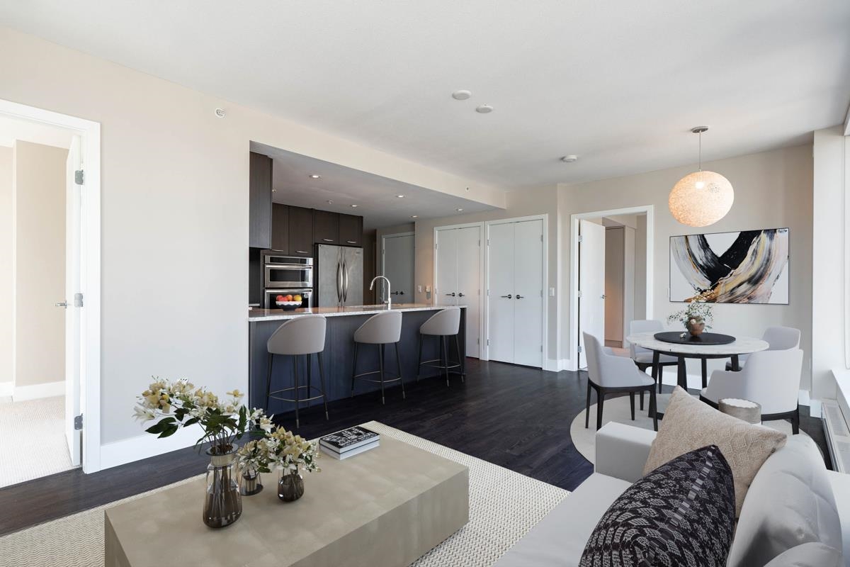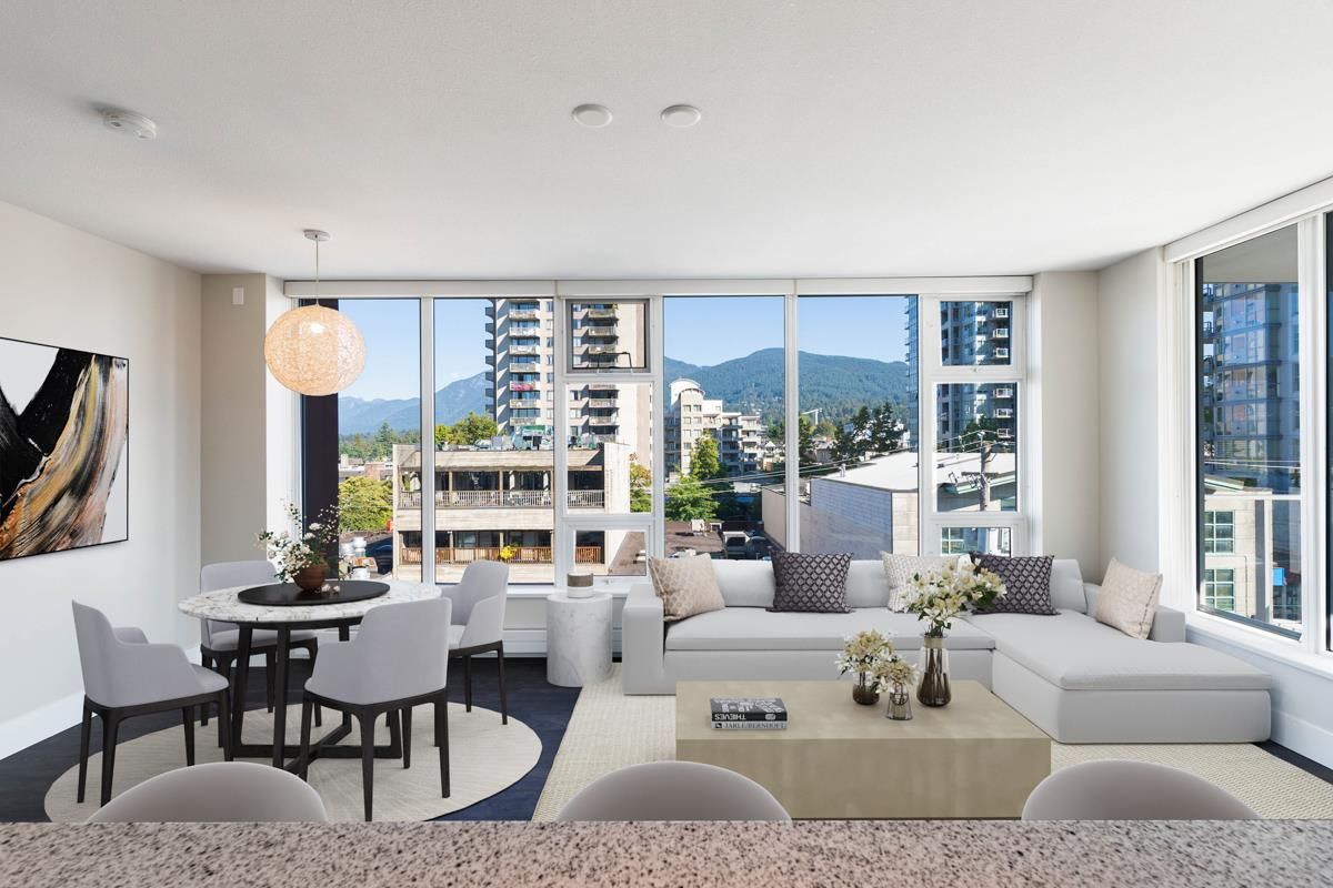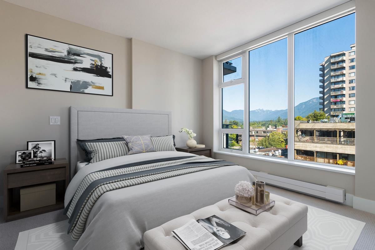 Discover luxury living in the heart of North Vancouver. This exquisite corner residence is developed by Grosvenor, a hallmark of exceptional quality. Impeccably designed, the interior features an open concept layout, a chef's kitchen with top-of-the-line appliances, and a spacious living area bathed in natural light. The primary bedroom boasts a lavish ensuite bathroom and generous closet space, while the second bedroom provides versatility for guests or a home office. Step outside to the private balcony, perfect for savoring morning coffee or tranquil roof top garden. Residents will relish the convenience of being steps away from an array of amenities, including boutique shops, delectable dining options, an vibrant entertainment. private appointment available.