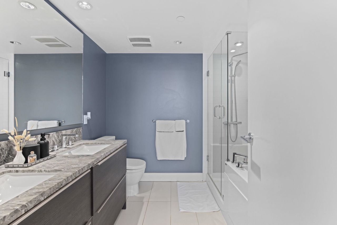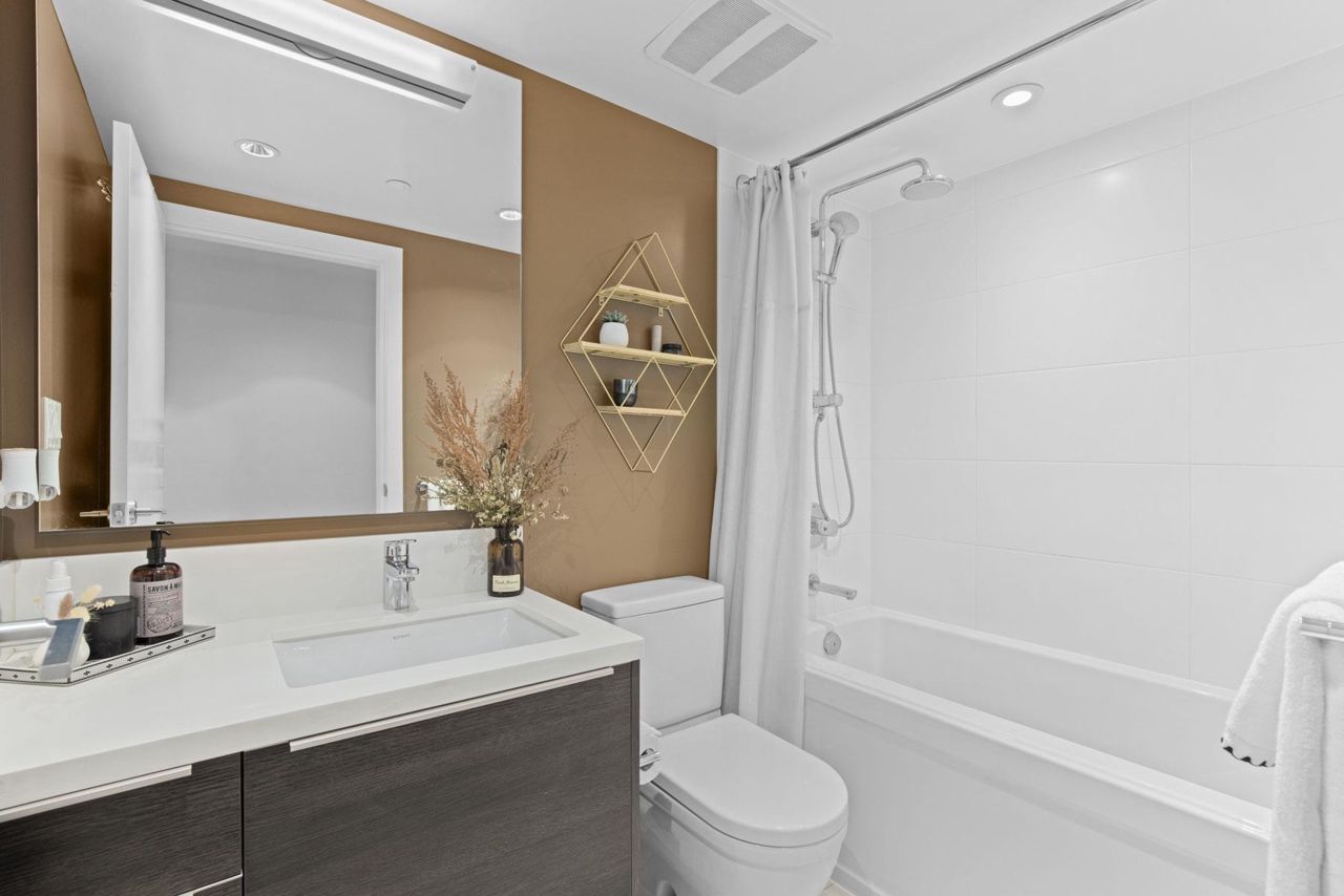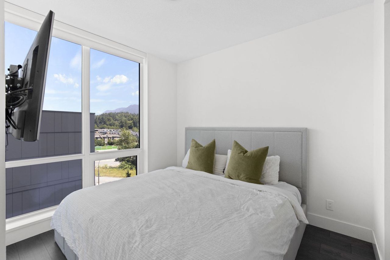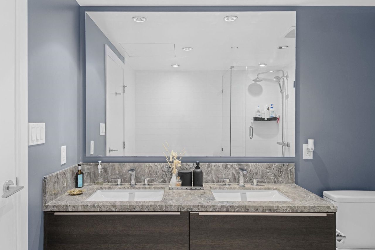 Gorgeous and bright 2 bedroom, 2 bathroom 1,041sqft corner unit with breathtaking mountain views! Take pleasure in the expansive living/dining/kitchen area that includes a large breakfast bar perfect for early mornings while taking in the beautiful views. High end finishes including stainless steel kitchen appliances, quartz countertops and floor to ceiling triple ply windows. Amazing 13,000sqft amenities centre that includes: health and fitness facility, 25M lap pool, lounge with a kitchen, spa, yoga, dance studio, sauna, steam room and guest suite.