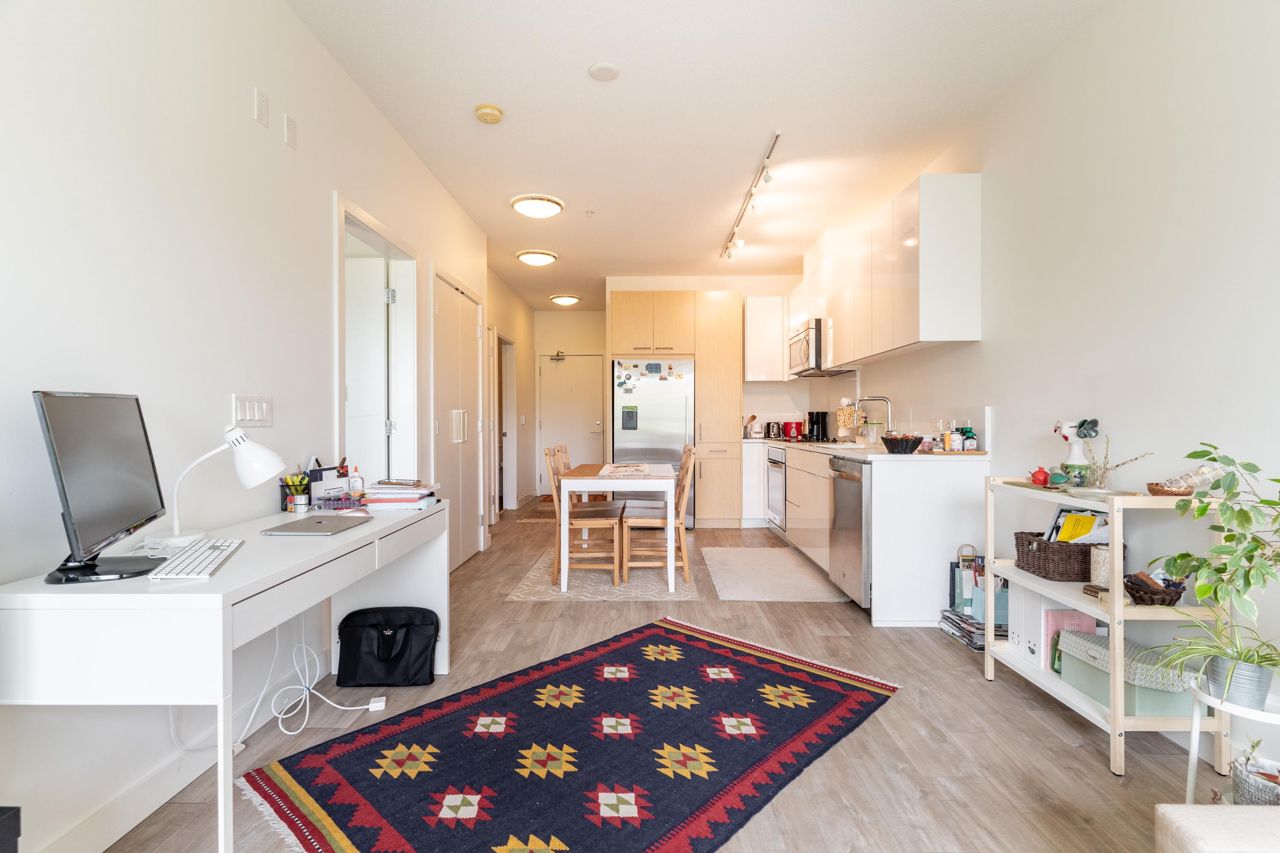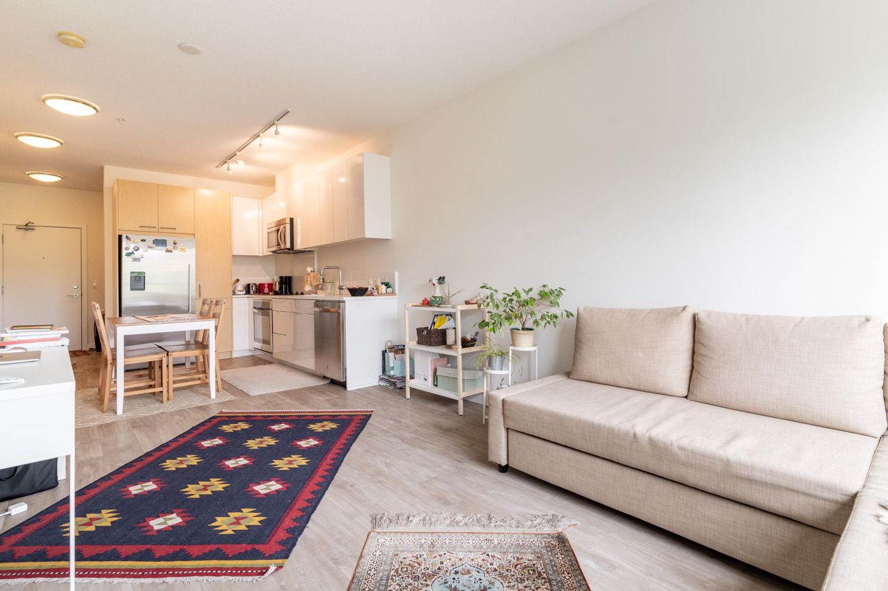 This modern Marcon built 1 Bed+ DEN unit showcases superior fixtures & finishes throughout. This spotless residence flaunts 9-foot ceilings, an expansive open living area, floor-to-ceiling windows laminate flooring, & a spacious den perfect for an office & additional storage. The luminous living room grants access to a private balcony. The charming kitchen boasts Whirlpool & fisher & Paykel S/S appliances, quartz countertops, & ample cupboard space. 1 Parking & 1 storage. Pet & rent friendly. Situated in an excellent building with the remainder of a 2-5-10-year warranty. Heat & HW included. Located in the sought-after Hamilton neighborhood, adjacent to Heywood Park, transit, shops, cafes, & all amenities along Marine Drive. Friday May 31 4:30-6:30pm, Sat June 1st + Sun June 2nd 2:00-4:00pm