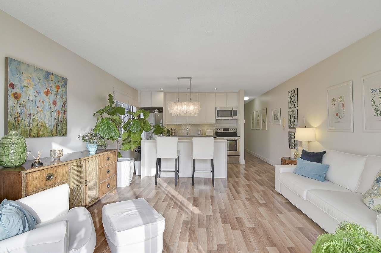 This move in ready 1 bedroom condo is located on a quiet street in one of the most liveable areas of the lower mainland. Enjoy everything that the North Shore has to offer, the Shipyards, Lonsdale Quay, Mosquito Creek Marina, great restaurants and all your shopping needs within walking distance. Close proximity to the local ski and hiking trails and a short walk or ride takes you to the Seabus and downtown Vancouver. This bright, south facing unit has been extensively updated! It boasts quartz counters, stainless appliances, pullout drawers and a large island for entertaining guests. Other features include a covered balcony, in suite laundry, secured parking spot and storage. Pets are allowed with restrictions.