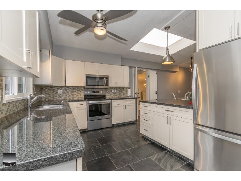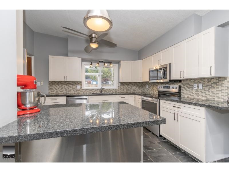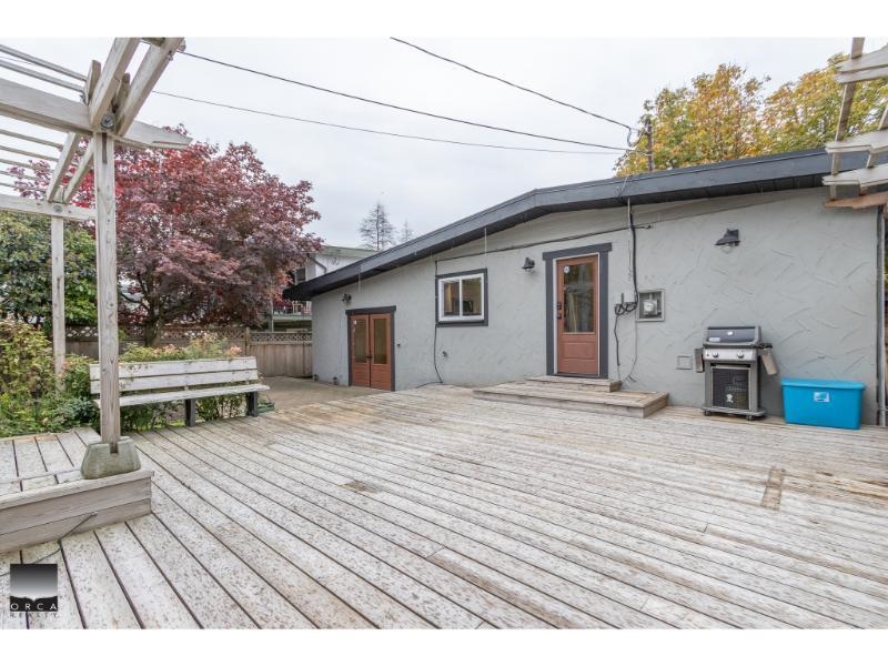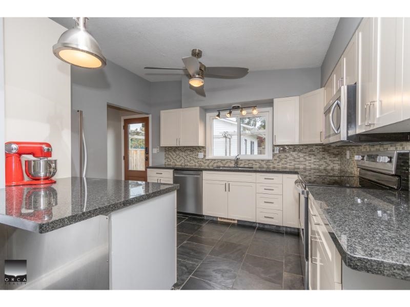 Welcome home to this desirable 3 bdrm rancher in the heart of it all! This open concept kitchen and living features S/S appliances, granite counters, hardwood floors and beautiful light filled windows. The vaulted ceilings provide a spacious and airy feel, with an inviting fireplace and large dining area to gather w/ friends + family. 2 beautiful bathrooms w/ heated floors and contemporary finishings. Bright private fenced backyard and large sundeck is perfect for summer bbqs and entertaining, with a large, detached workshop/garage and lane access. Ideal for young families, downsizers and investors, come see all this space has to offer! Excellent proximity to trails, parks and on the Green Necklace. Meticulously maintained - Roof, furnace, tank, windows all updated – simply move in + enjoy