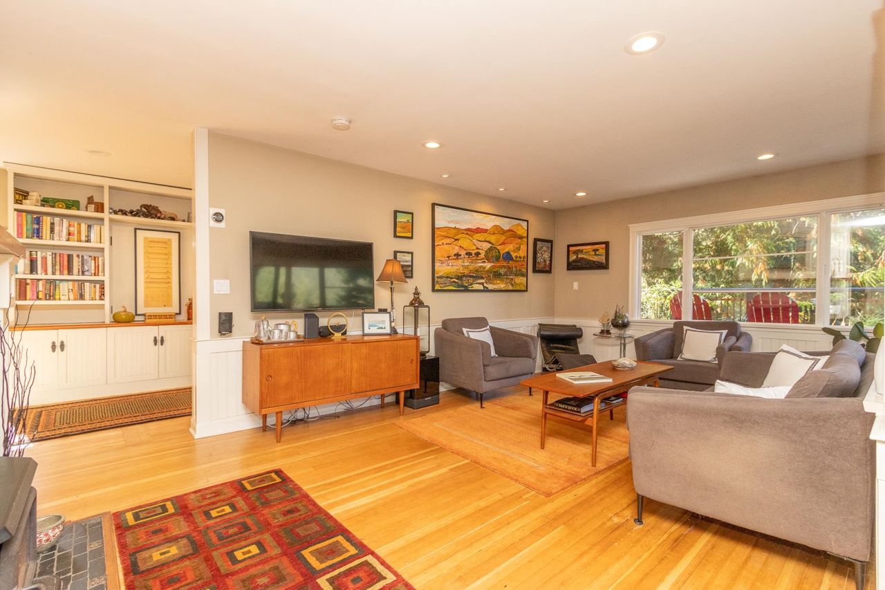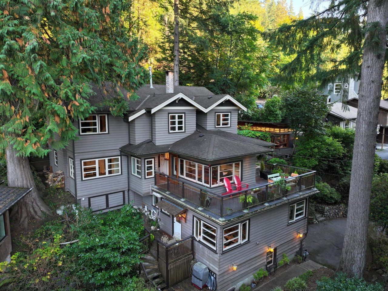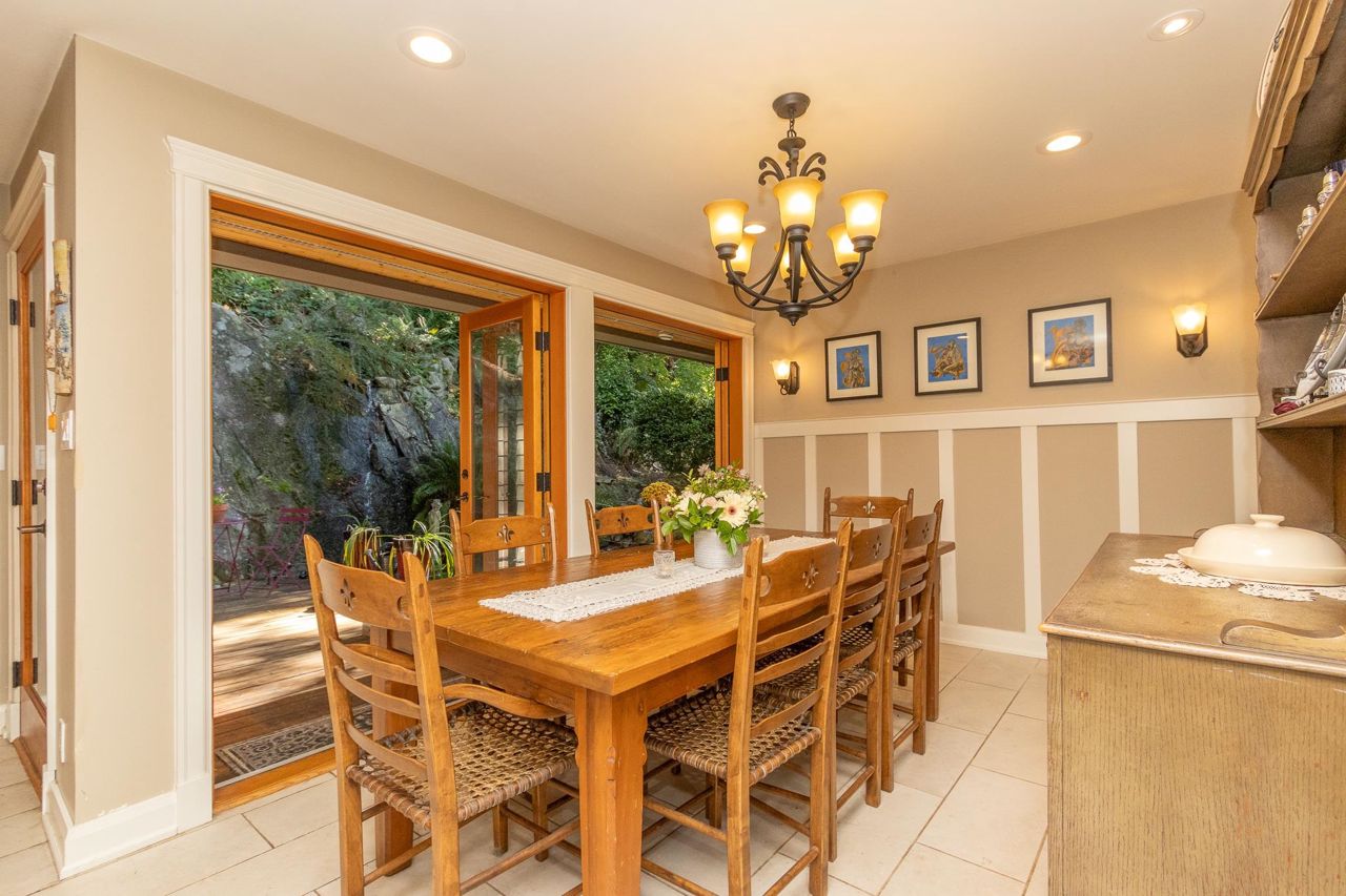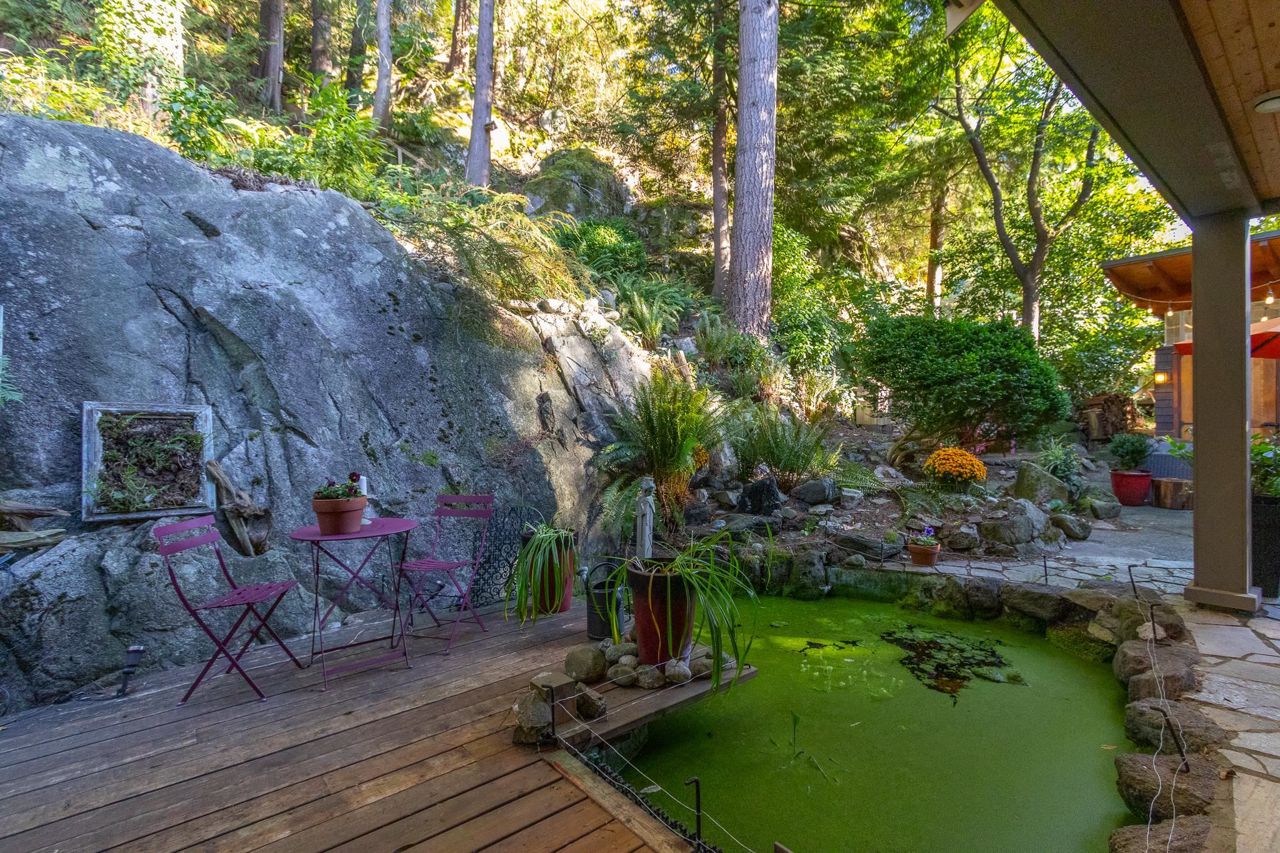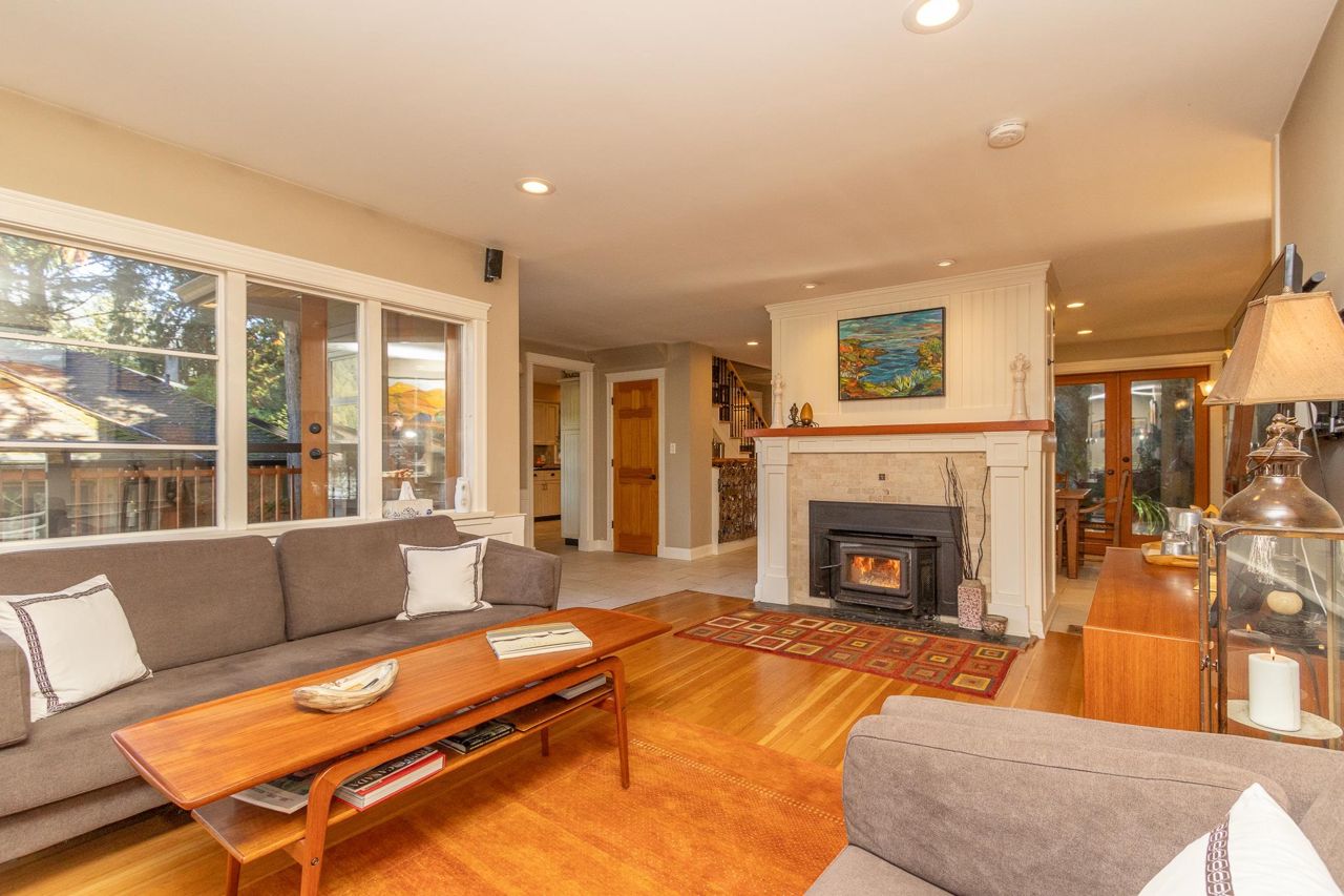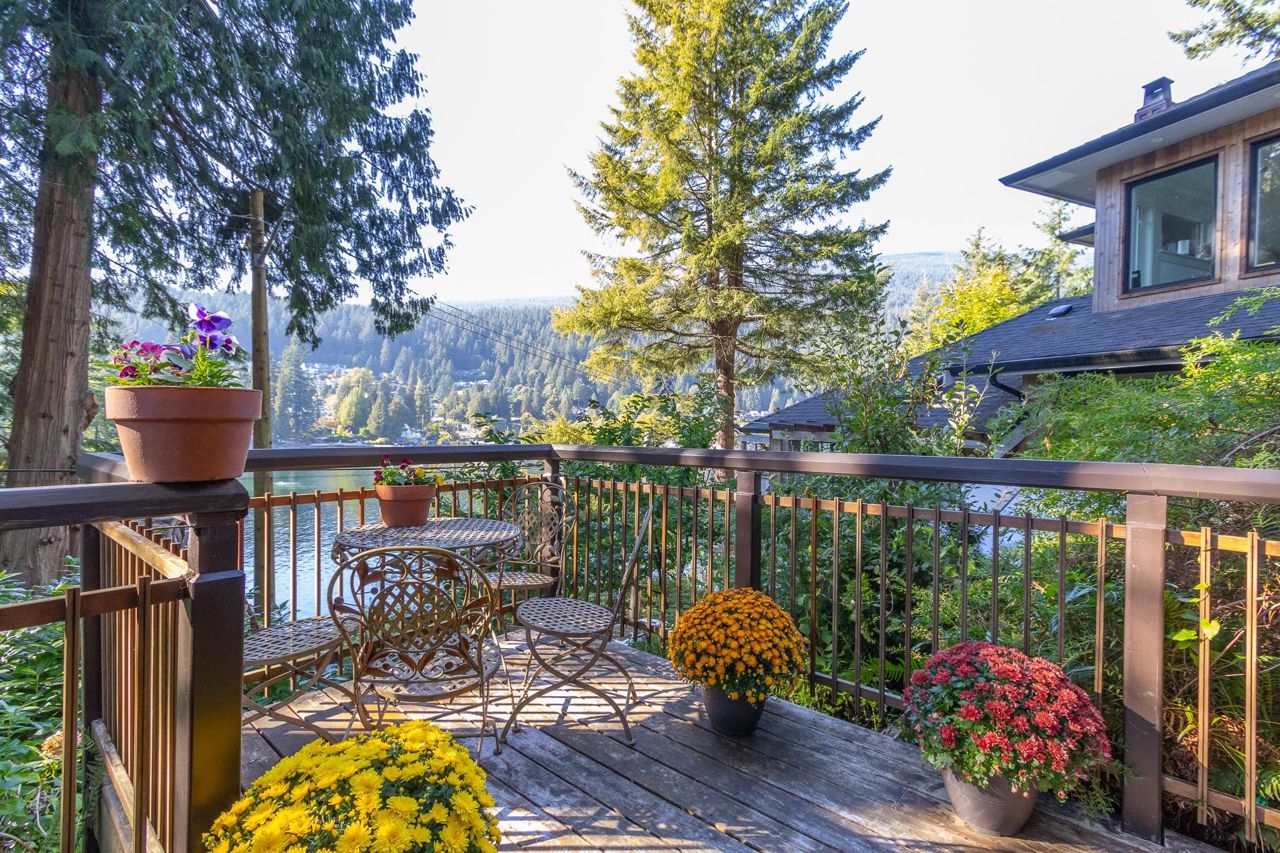 Semi-waterfront custom home perched on a 10,800 sqft. lush private forested lot across from swimmable beach access. This magical home emulates our Deep Cove community & has to be seen! Stunning water views from nearly every room. Architecturally redesigned and rebuilt in 2005 including the addition of a third level with 4 bedrooms. The spacious kitchen is chef ready with a restaurant grade gas range & loads of counter space. The deck space capitalizes the view allowing you to hear the sound of the stream running into the ocean. For a more serene experience, the backyard offers an oasis with separate lounge area, koi ponds, + heated/powered outbuilding studio. Garage + more parking. 1bed legal suite $2400/mo. Mechanically updated + low maintenance yard. CALL TO VIEW TODAY!