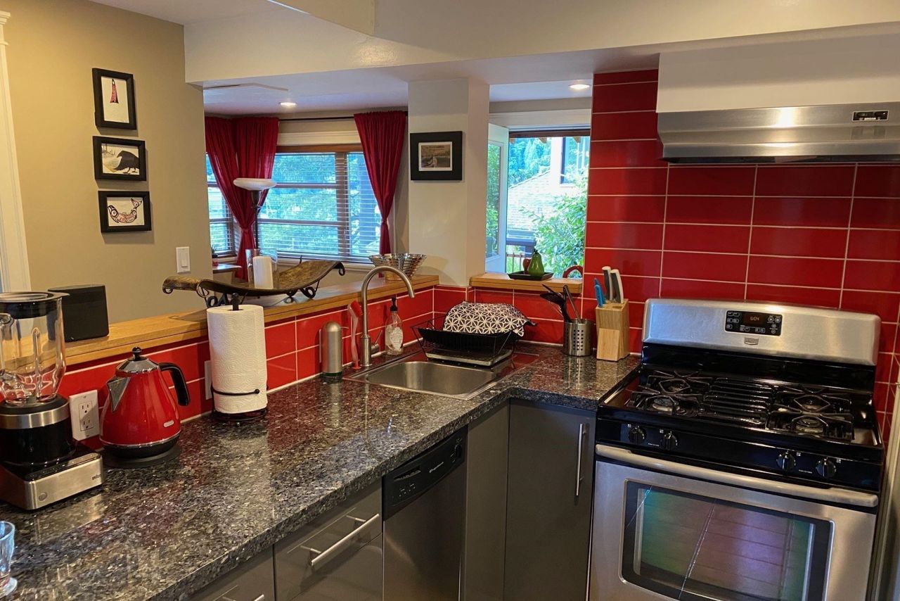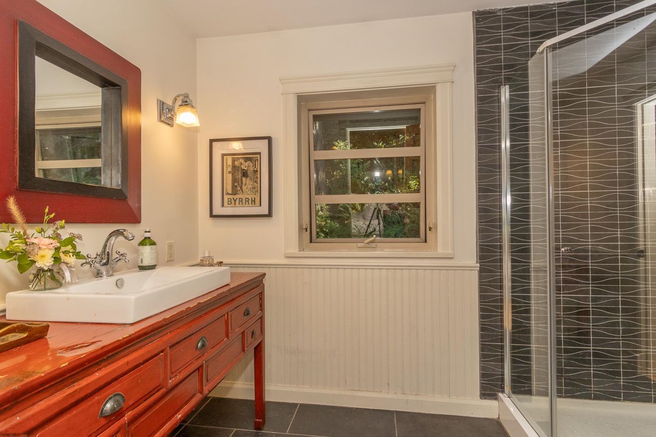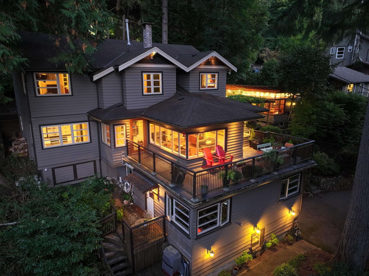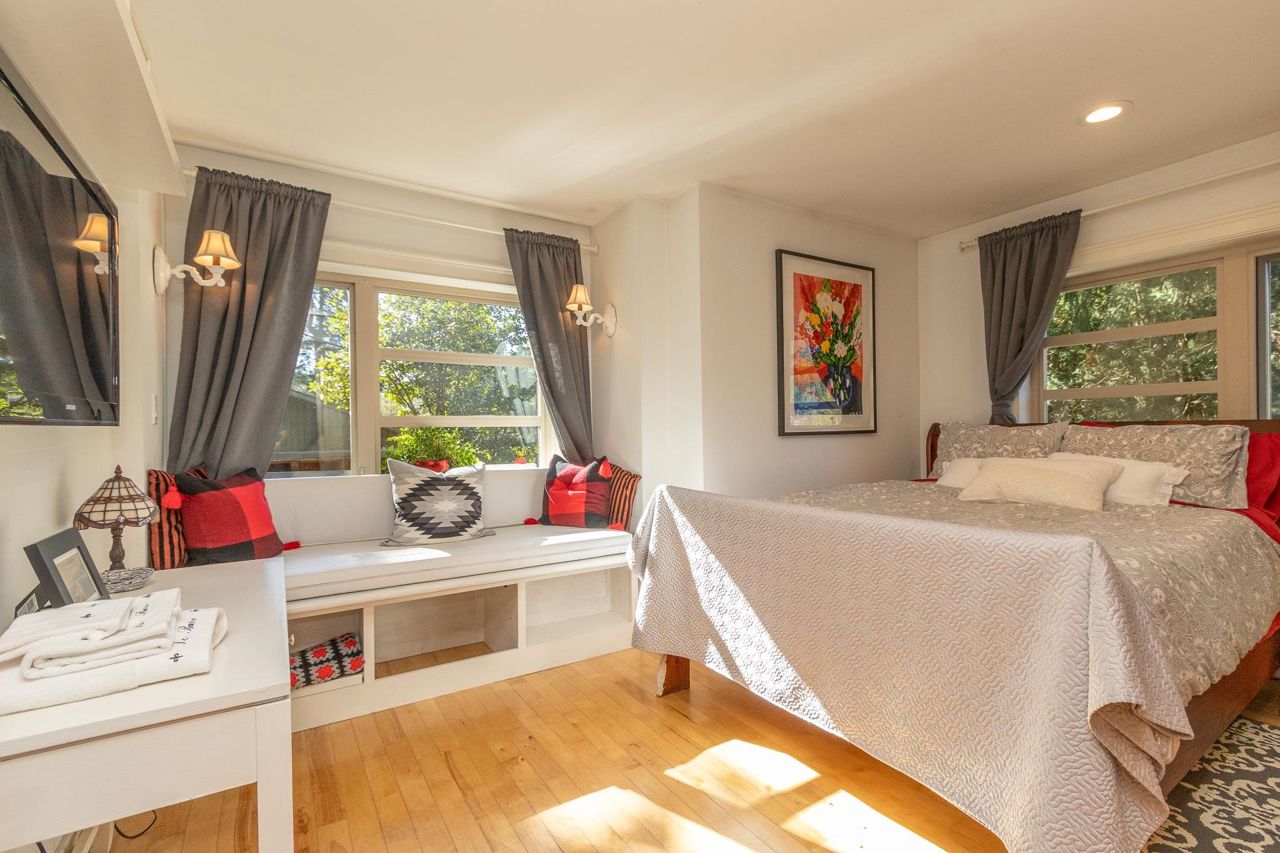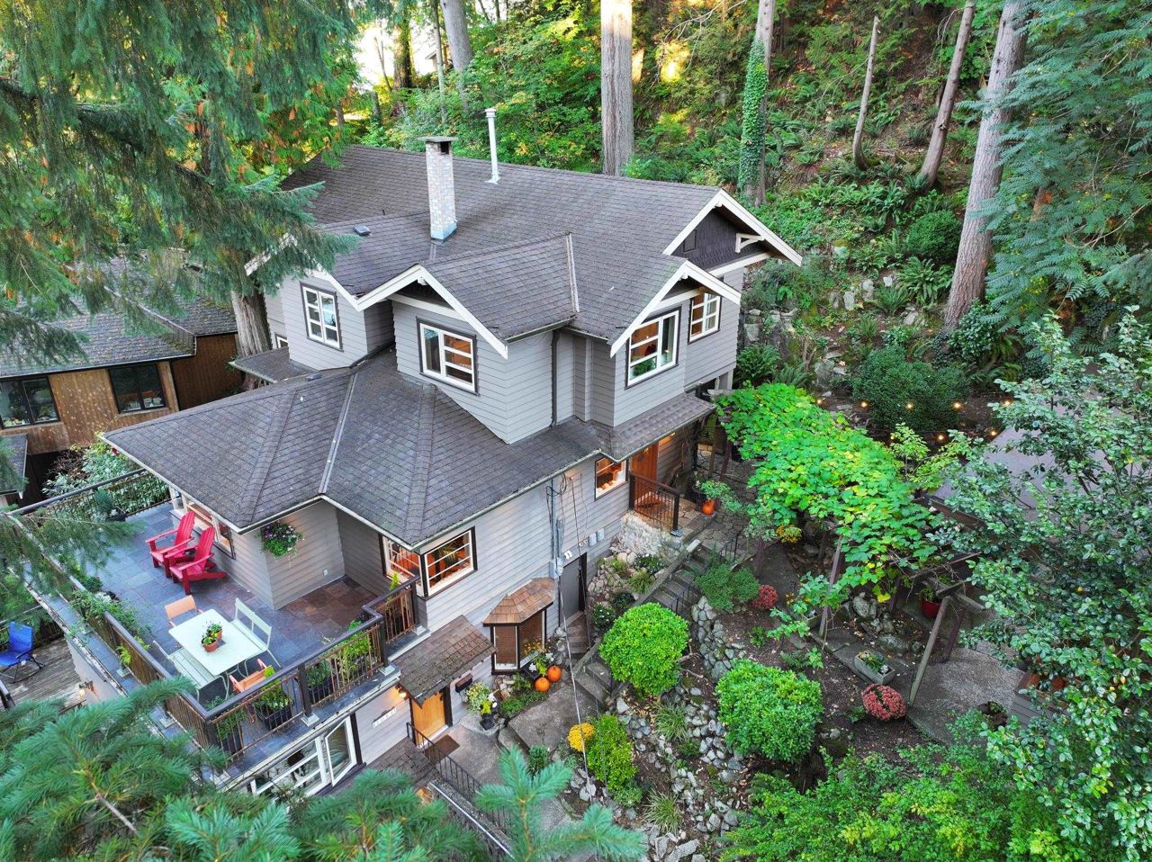 Semi-waterfront custom home perched on a 10,800 sqft. lush private forested lot across from swimmable beach access. This magical home emulates our Deep Cove community & has to be seen! Stunning water views from nearly every room. Architecturally redesigned and rebuilt in 2005 including the addition of a third level with 4 bedrooms. The spacious kitchen is chef ready with a restaurant grade gas range & loads of counter space. The deck space capitalizes the view allowing you to hear the sound of the stream running into the ocean. For a more serene experience, the backyard offers an oasis with separate lounge area, koi ponds, + heated/powered outbuilding studio. Garage + more parking. 1bed legal suite $2400/mo. Mechanically updated + low maintenance yard. CALL TO VIEW TODAY!