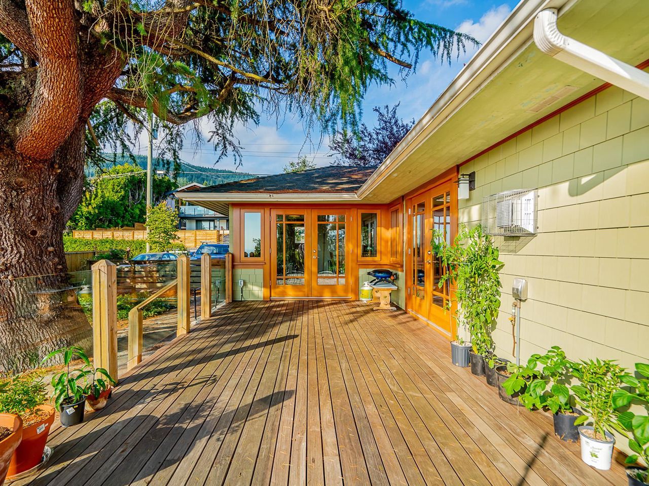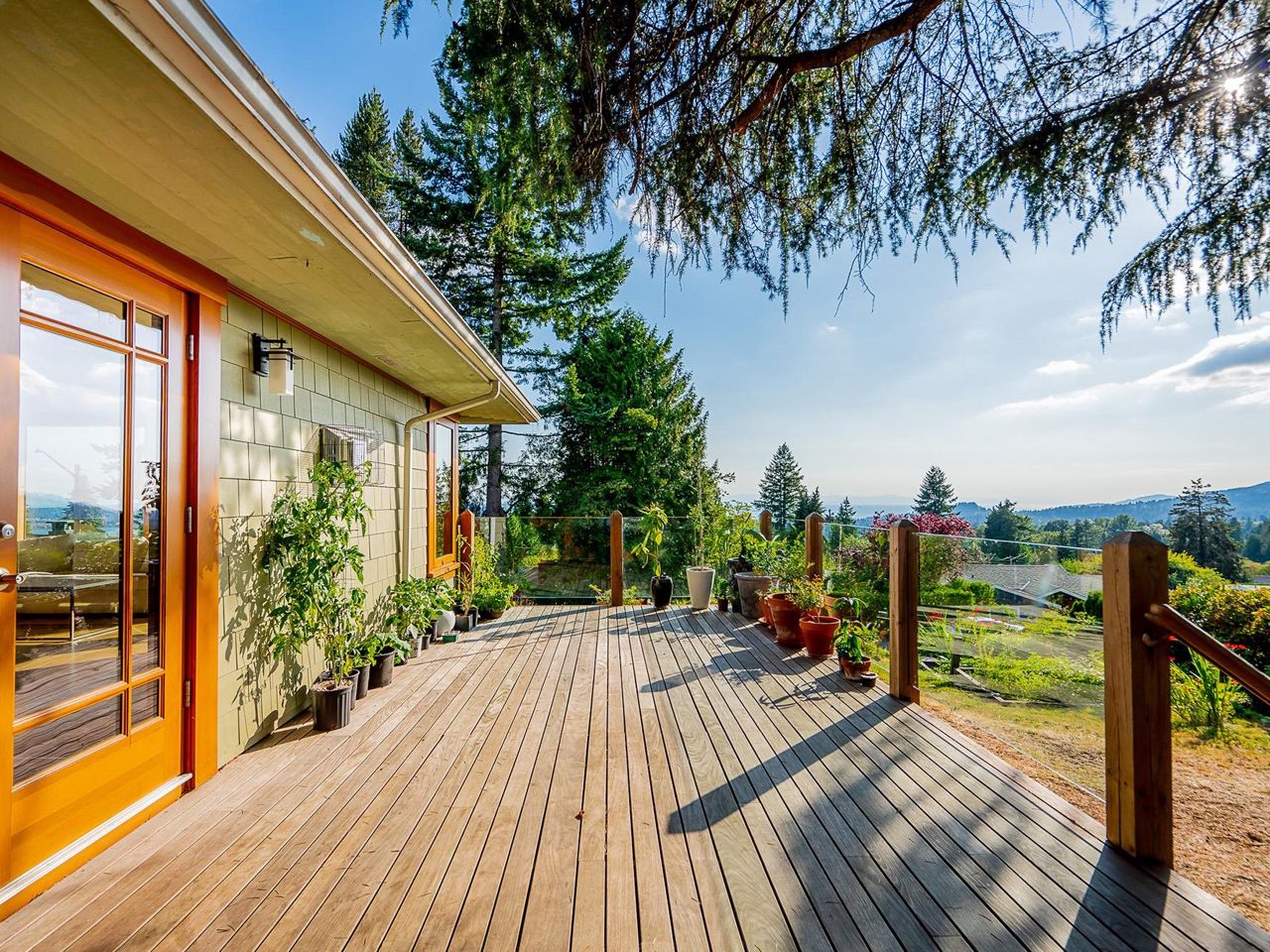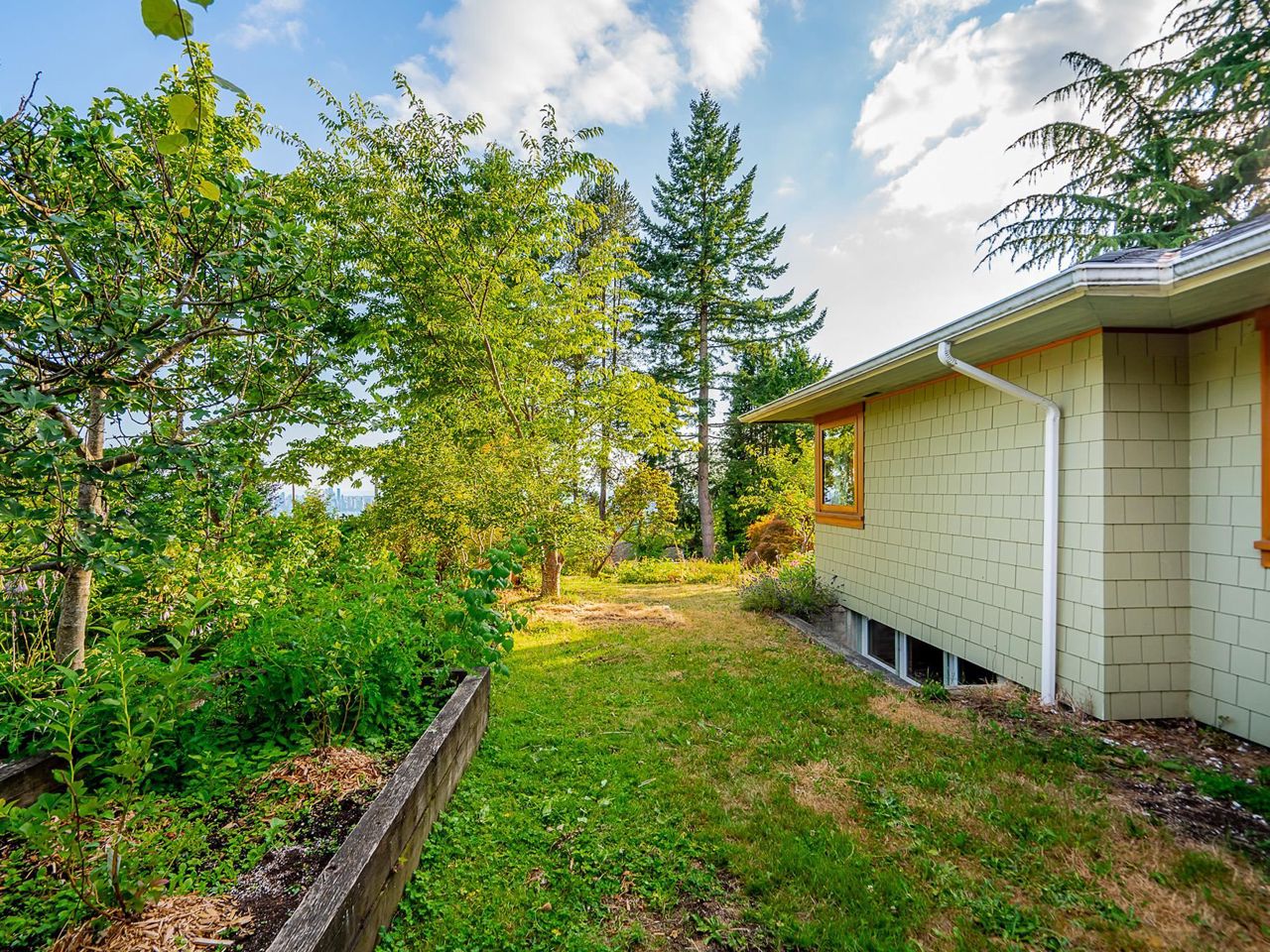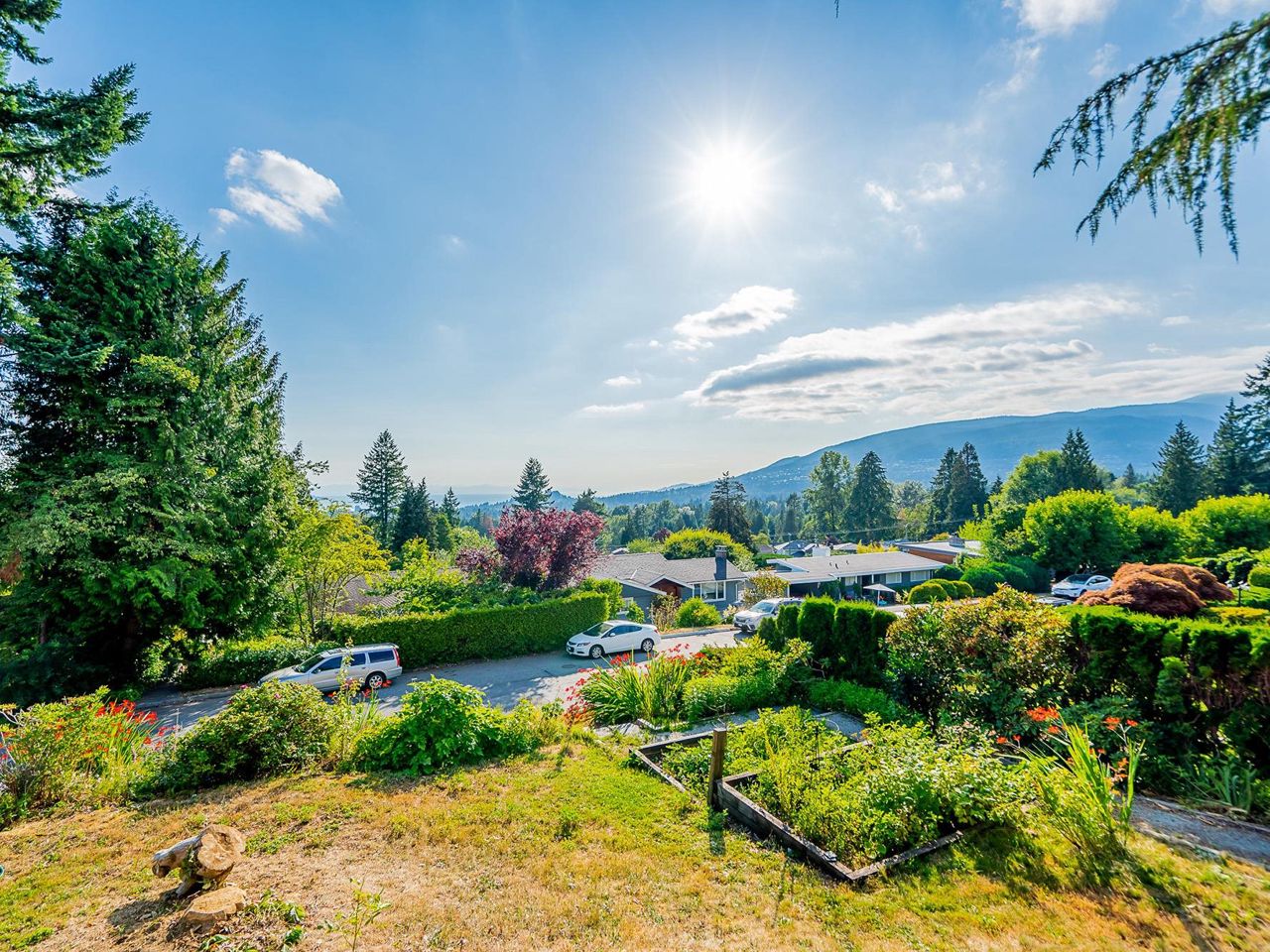 Stunning southwest panoramic views on a 13,224 sf, gently sloping lot in Upper Lonsdale! This 3BR / 3BA home includes a nanny/inlaw suite and has been substantially updated in 2010/2011 including roof, hardieboard siding, insulation, plumbing, electrical, windows and heat pump with A/C. An entertainers dream, this open floorplan and generous windows showcase views of the city and ocean from the living, dining and kitchen areas. French doors open to a gorgeous Brazilian walnut deck to enjoy a glass of wine while watching the sun set over Vancouver Island. Arbutus wood flooring, end grain wood trim, custom kitchen cabinetry with stainless island. Primary BR features French doors to garden and marble floors in ensuite. Garden has fruit trees, raised garden beds, shed w/ lane access.