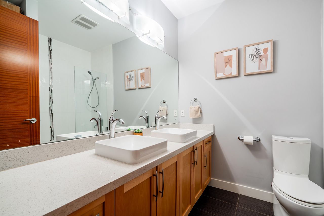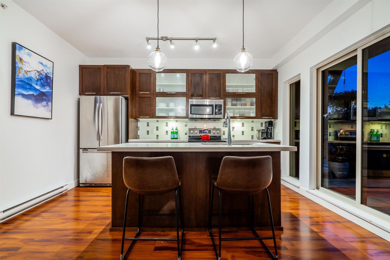 PENTHOUSE LIVING doesn't get much better than this wonderful 2 Bed + Den/2 Bath bright and spacious apartment. Offering 2 XL outdoor patios, sweeping Mtn views off a gourmet open concept kitchen, featuring solid stone countertops stainless appliances, wine cooler, hard wood kitchen cabinetry. An incredible attention to detail and craftsmanship abounds. Large enough to be considered a 3 bedroom this apartment is an absolute MUST SEE and is a very RARE opportunity. Offering pricing, function and an incredible location steps to amenities, schools and second narrows bridge. Contact listing agent for floor plans, details and private viewings.