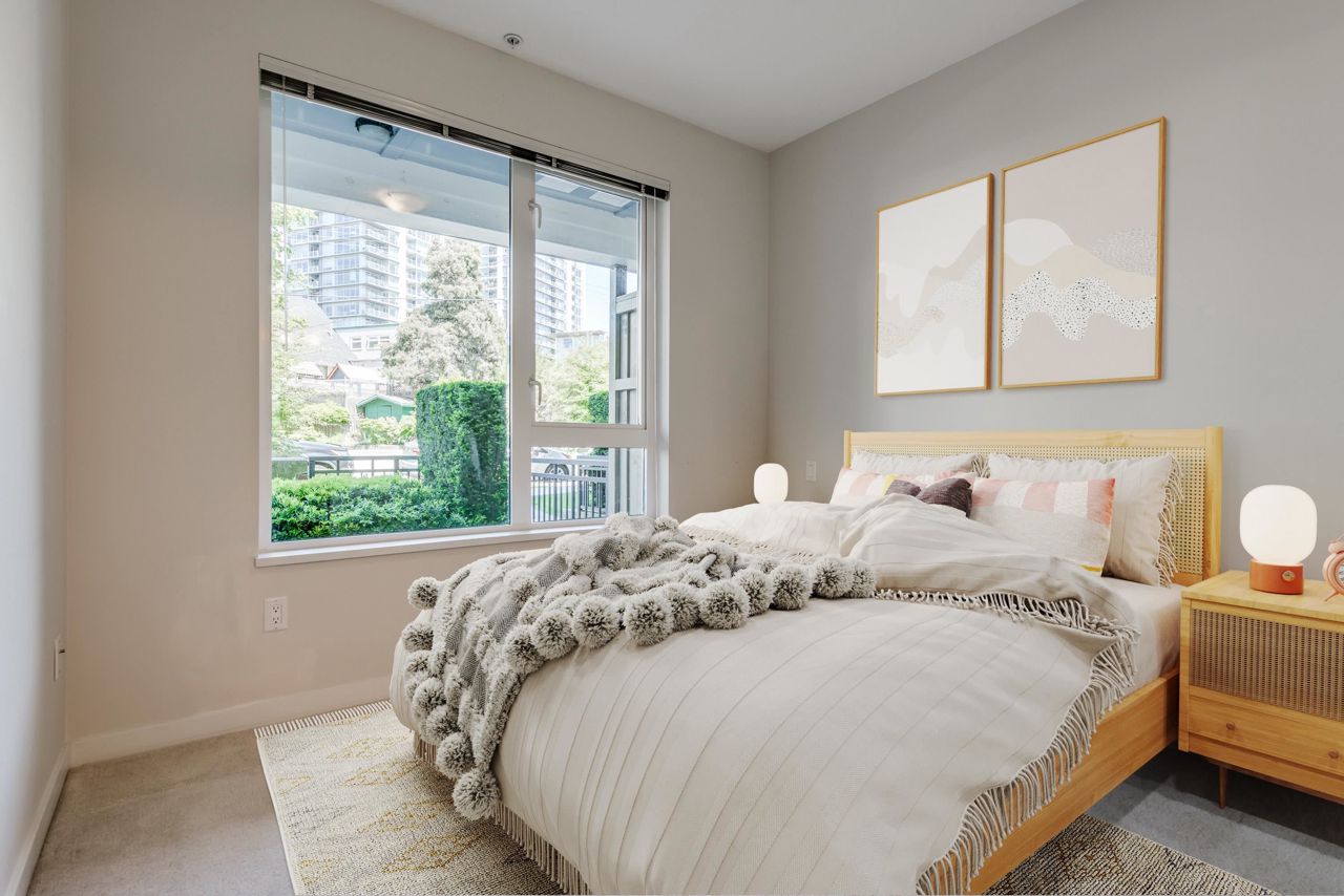 Discover this rare, ground-level condo in the Queen Mary by Polygon which boasts an oversized patio & private entrance, perfect for pet owners, garden enthusiasts, & summer BBQ gatherings. The stunning open-concept living and dining area flows elegantly into a contemporary kitchen, showcasing smooth stone countertops, a gas cooktop, & sleek stainless-steel appliances. The inviting bedroom features a walk-in closet & a luxurious 5-piece ensuite bathroom. Additional amenities include a cozy fireplace, in-floor radiant heating, & soaring 9 ft ceilings. Ideally situated in the heart of Lonsdale, you’re mere moments away from the vibrant Shipyards district, bustling breweries, convenient grocery stores, diverse restaurants, West Victoria Park, Queen Mary Elementary School & more.