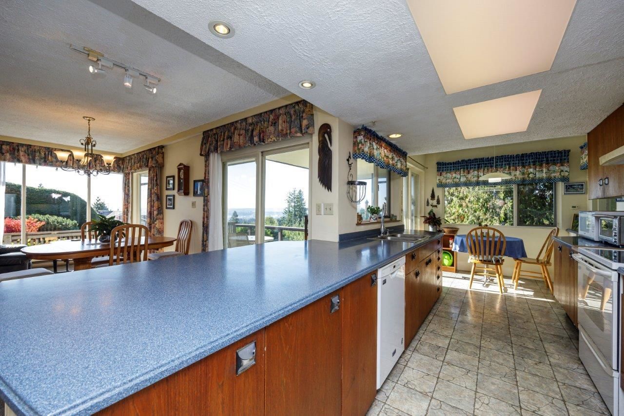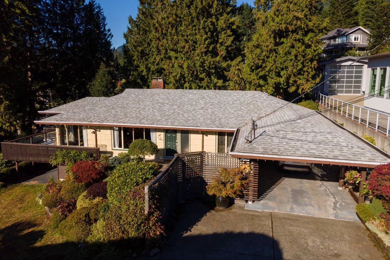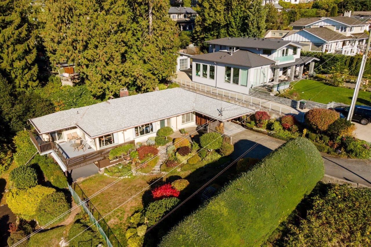 Marlborough Heights estate view property. A rare offering in one of N. Vancouver's most exclusive areas. This solid 2,827 sq ft bungalow sits proudly on a 135.5 X 100 ft, 13,400 sq ft estate-size view lot. The 2-level plan offers bright open spaces with large living room, stone fireplace, adjoining dining and large kitchen with eating area leading out to the view deck. There are 2 bedrooms on the main, a modern bathroom, and a 2-piece ensuite and walk-in closet in the primary bedroom. The walkout basement offers large rec room, 2 bedrooms, laundry and workshop and could be suited. The lot is maturely landscaped and very private with amazing views of the city, harbour and out to Vancouver island. Move in, renovate or build your dream home!