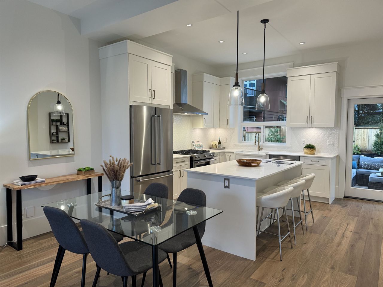 BRAND NEW luxury home in Upper Lonsdale. Least expensive New Home in North Van. This gorgeous Craftsman Style Single Family Home is built by Noort Homes and offers the highest standards and quality throughout. Great 3 level design with 4 bedrooms, 3-1/2 bathrooms, 1862 sq ft of living space with Air Conditioning. The main floor boasts 10ft high ceilings with a nice sized Living Room , large Office and good sized Island Kitchen with Kitchen Aid Appliances and sliding doors opening to a large covered heated patio and yard space ideal for entertaining. Enjoy the views of the ocean, Stanley Park and Lionsgate Bridge. This is a fantastic quiet neighborhood , do not miss this opportunity to own a Brand New home. 2-5-10 New Home Warranty