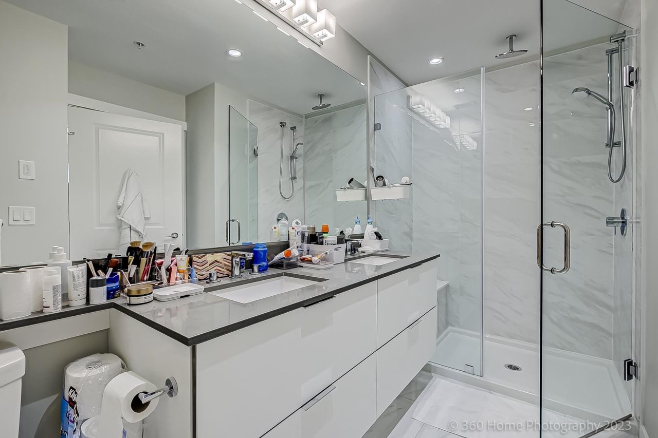 Fantastic Lynn Valley life style in Taluswood by Polygon building with remaining 5-10 warranty. If you would interested in enjoying the convenience of a nearby mall and beautiful serenity of what North Vancouver can offer, this beautiful, bright 2 bed/2 bath has all with radiant heat. Gourmet kitchen with quartz counters and marble backsplash flows into open concept dining and living room with 9' ceilings . Full-size front load washer and dryer. Spacious prime bedroom with spa-inspired ensuite w/walk-in shower & double sinks and large balcony is perfect for BBQing. Taluswood amenities incl; gym, party room, bike storage, pet & car washing stations. One parking & locker.