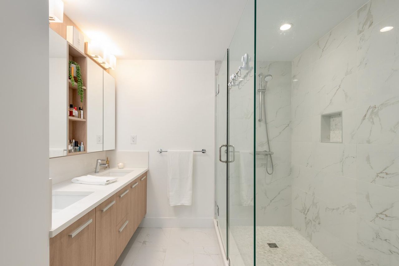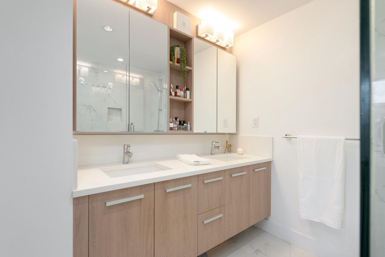 THE RESIDENCES AT LYNN VALLEY BY BOSA! This beautiful top floor 2 bed, 2 bath concrete corner suite offers vaulted ceilings & southern exposure. Premium finishes include A/C, hardwood floors, Italian cabinetry, marble backsplash, integrated appliances & spa inspired bathrms. The Bosa Residences go above & beyond with top-tier amenities including a fully equipped fitness rm, yoga rm, sauna/steam rm, large social rm, bike rm, playground, BBQ area, and a secure enclosed dog run & dog wash area. Step outside your door and you'll find yourself in the heart of Lynn Valley centre surrounded by restaurants, scenic trails, schools, and transit. As an added bonus, this beautiful suite comes with an EXTRA LARGE private storage room which must be seen.
