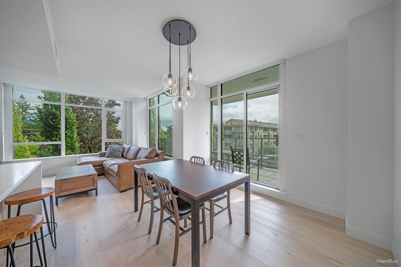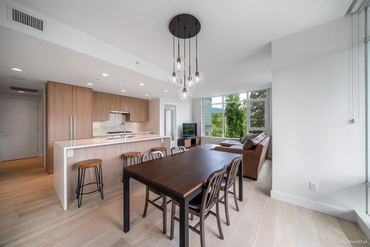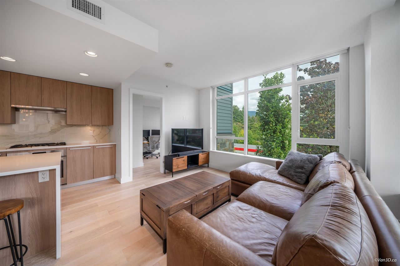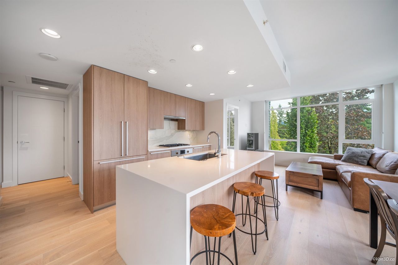 LOCATION LOCATION LOCATION. This 2 bedrm 2 bath suite in concrete low rise built by award winning Bosa Dev. It's close by scenic Lynn Valley for outdoor sports in biking & hiking and it embraces all convenience in urban living where grocery, restaurant, retail stores, clinics, banks are within a minute walk. This bright corner suite offers all elements of a modern comfort living with open and spacious layout, ample light from large S & E facing windows, high ceiling, central heat & A/C, top notch gourmet kitchen w/Inform Interior cabinetry, quartz counter top island, gas cooking and Bosch appliances; great privacy in bedrooms on separate sides. Build. amenities include gym, party room, pet wash station, bike storage. 2 side by side parking spots and 1 storage locker included.